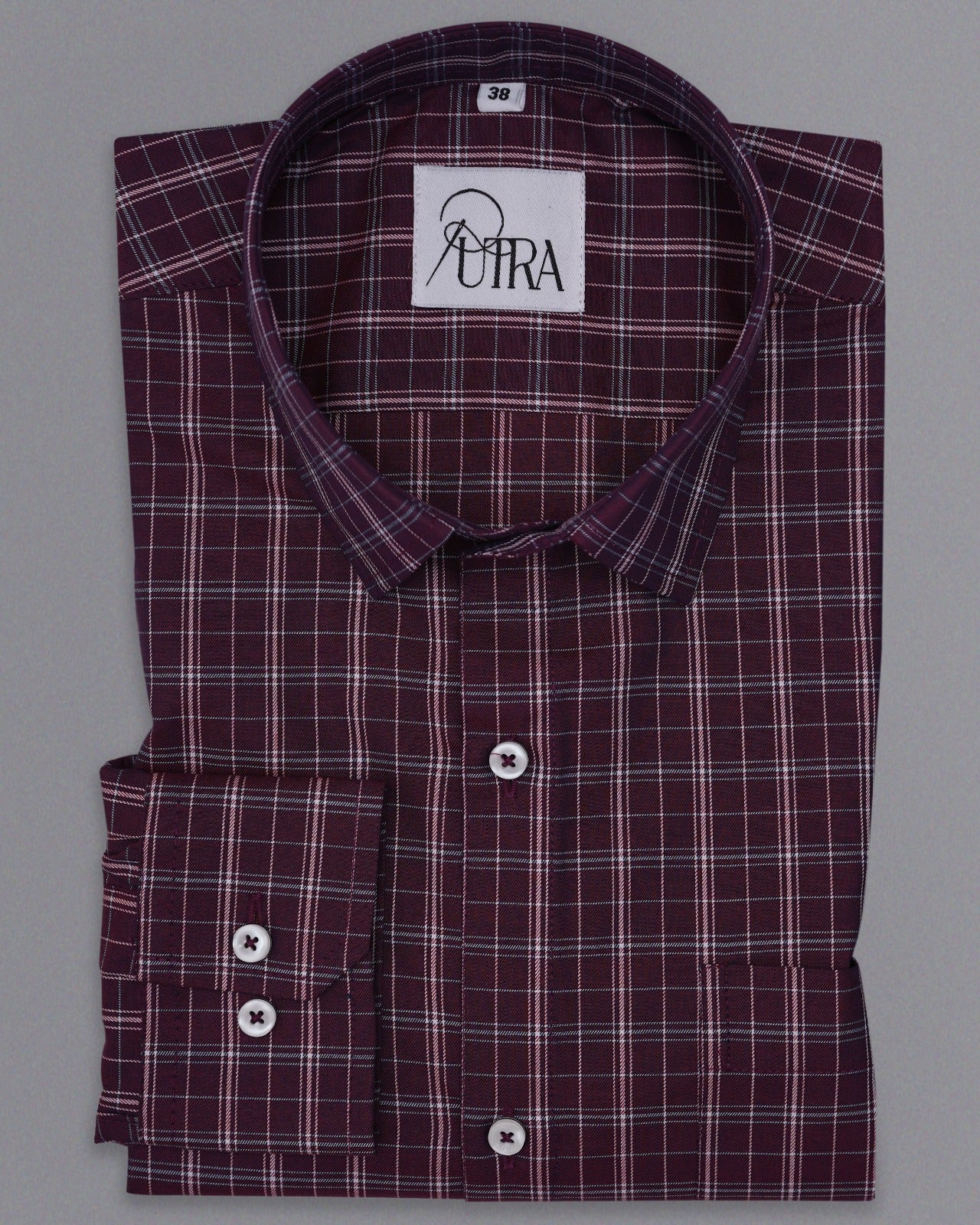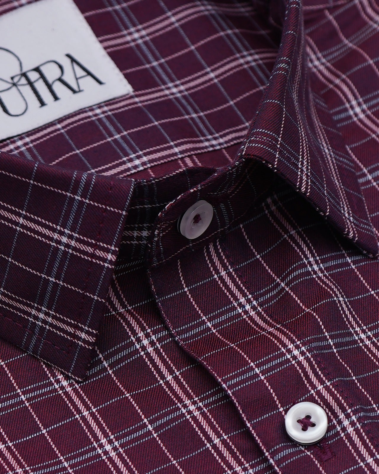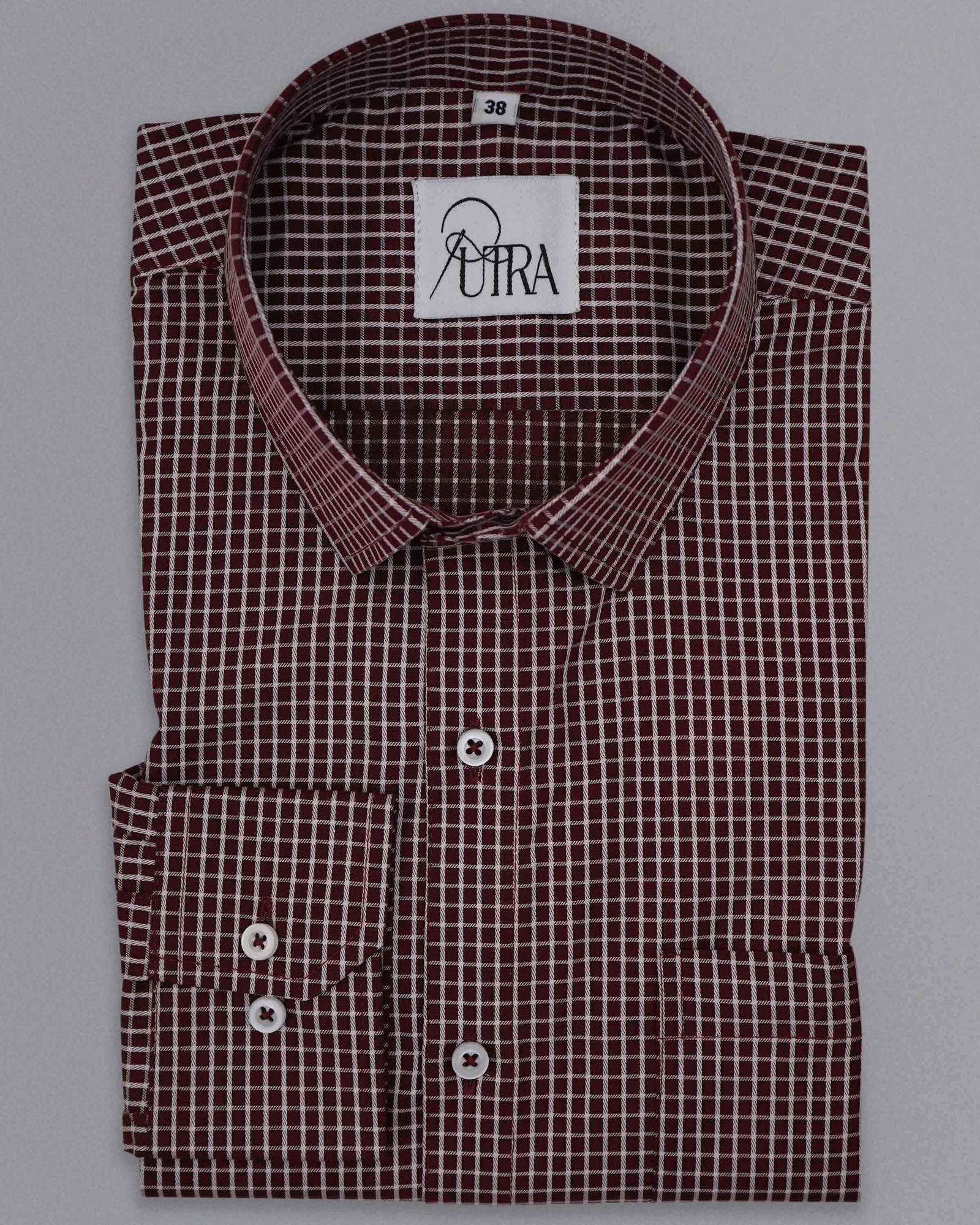 Classic 100% Cotton Yarn-Dyed Shirt – Maroon with Grid Checks