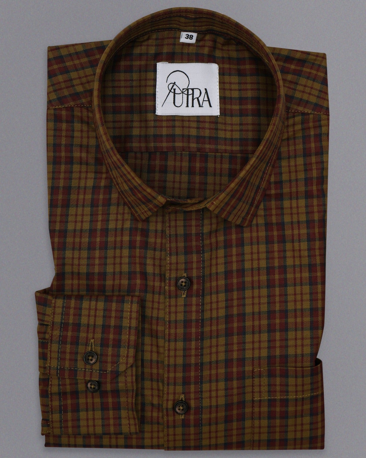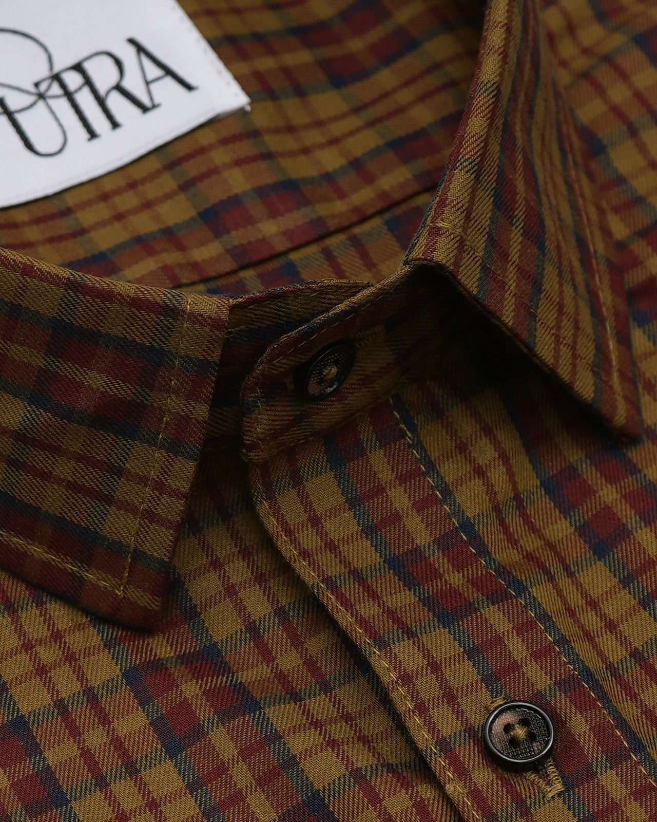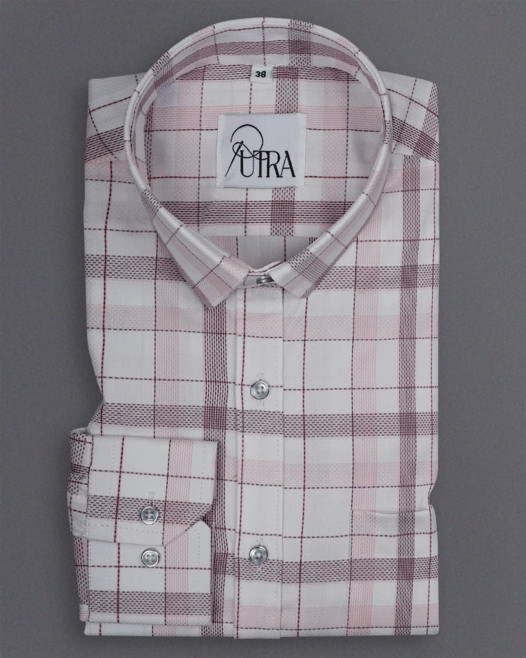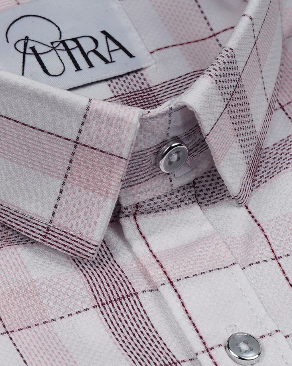 Classic 100% Cotton Yarn-Dyed Shirt – Maroon with Grid Checks