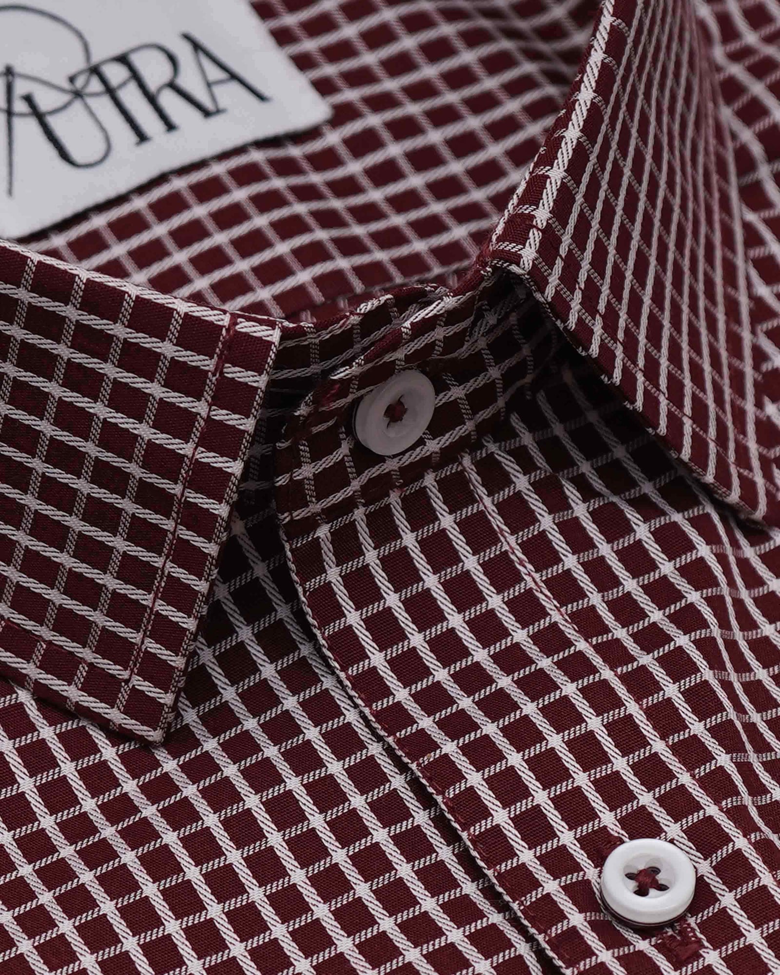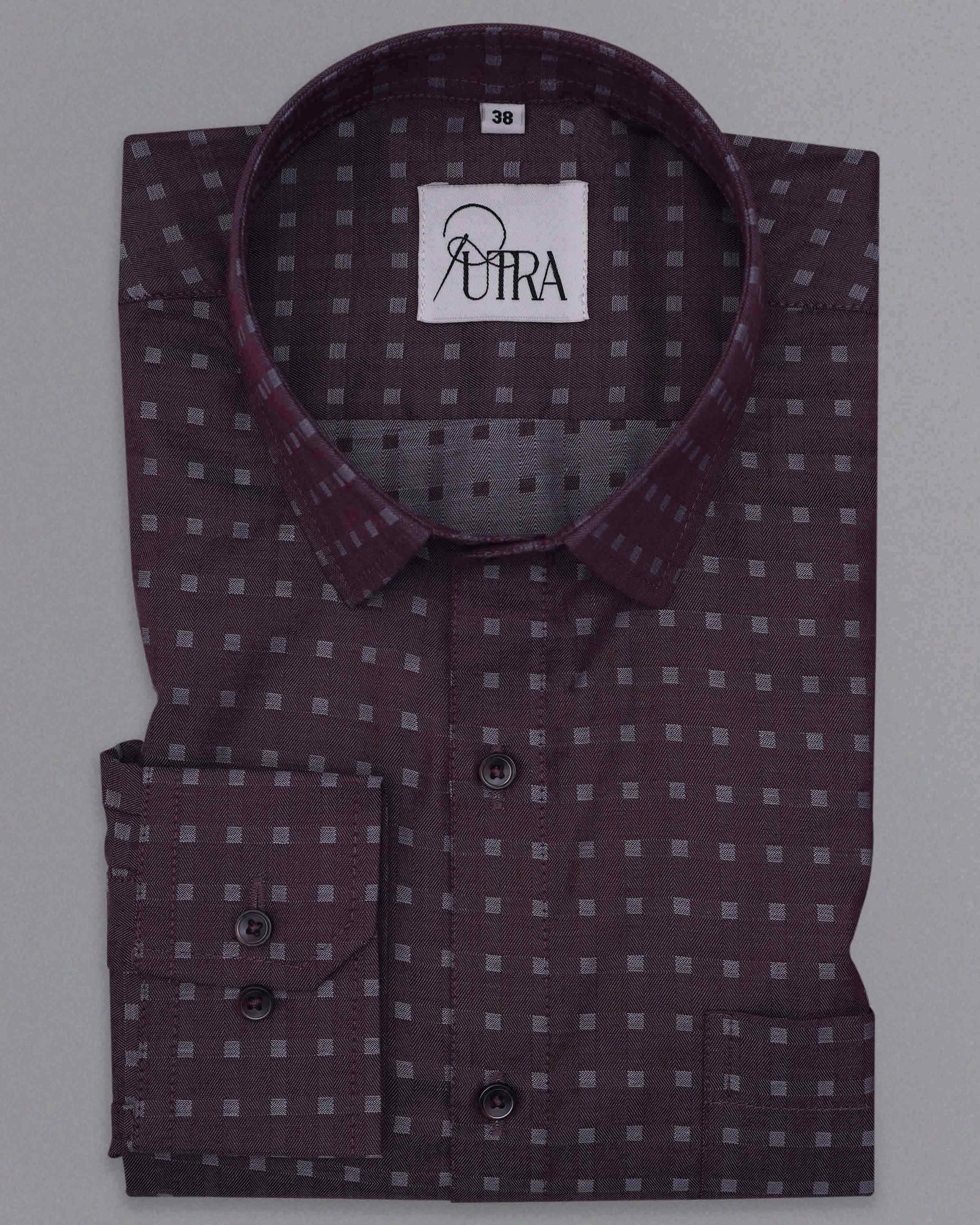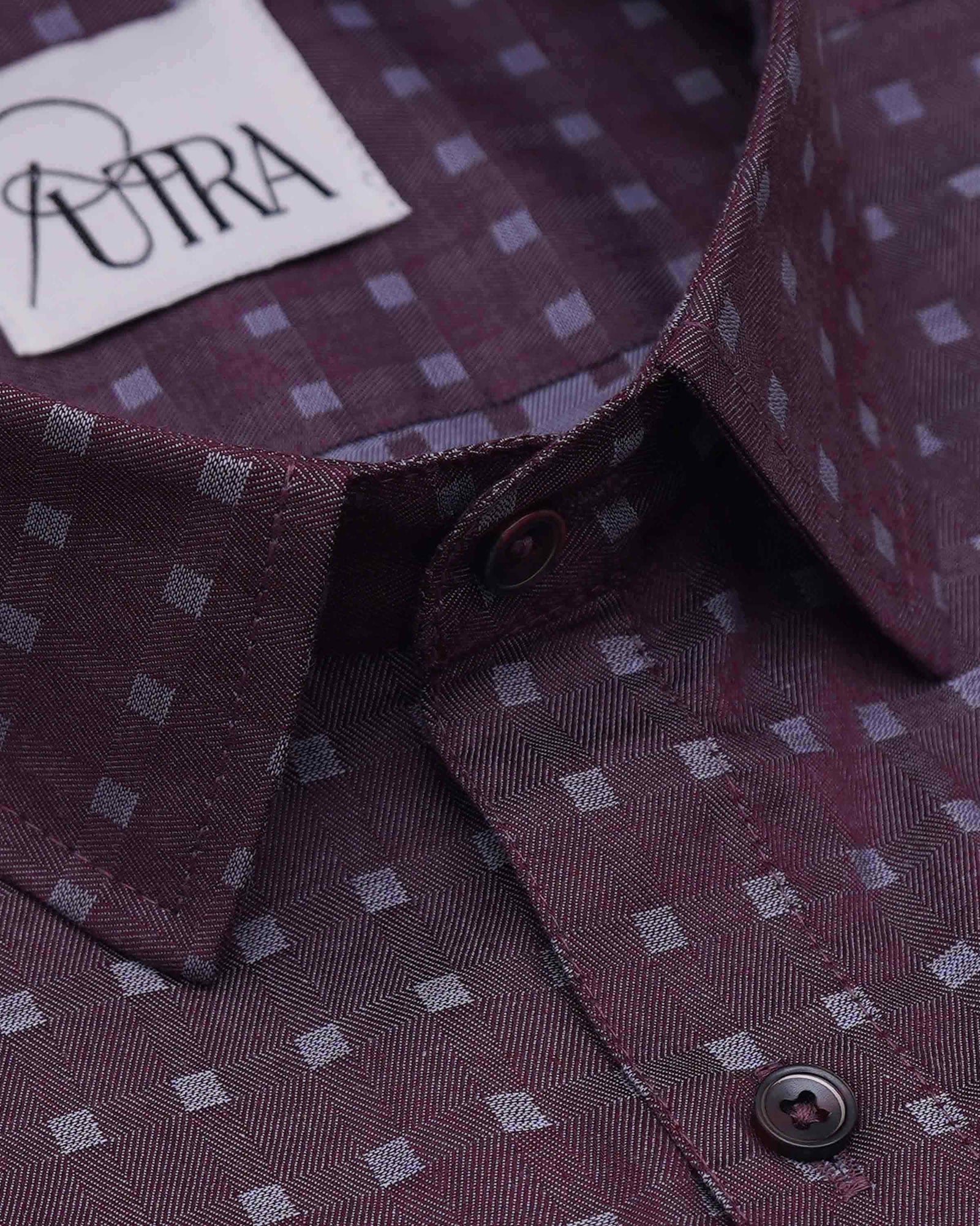 Elegant 100% Cotton Yarn-Dyed Shirt – Deep Maroon with Subtle Square Pattern