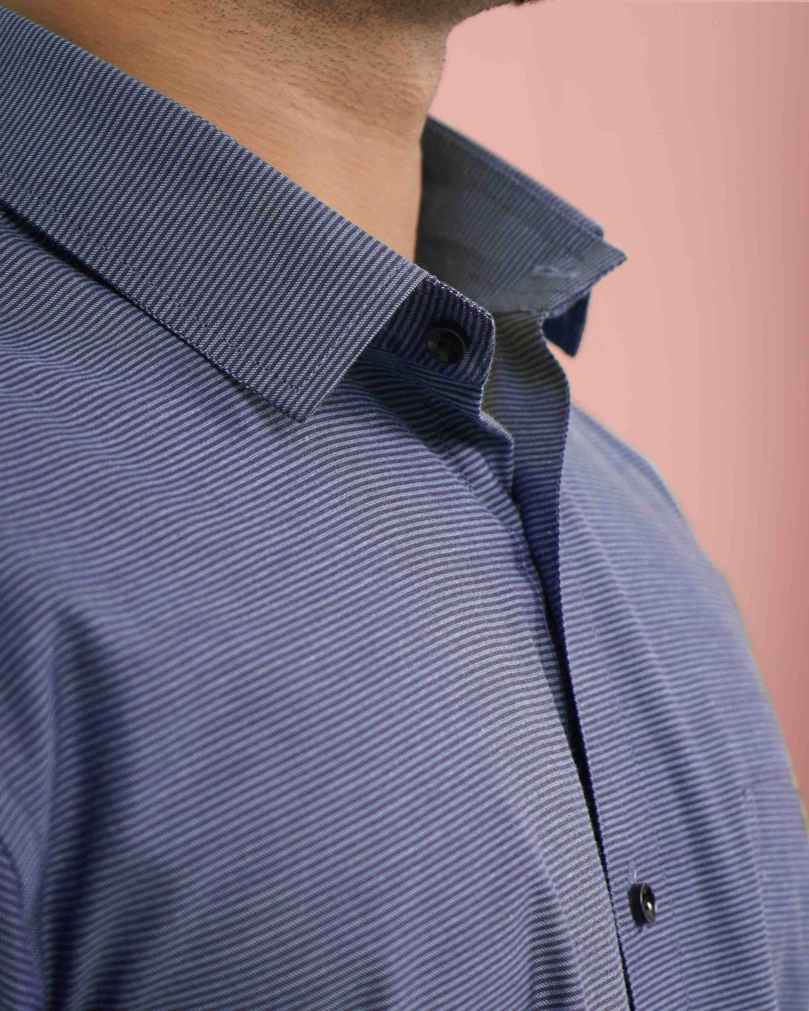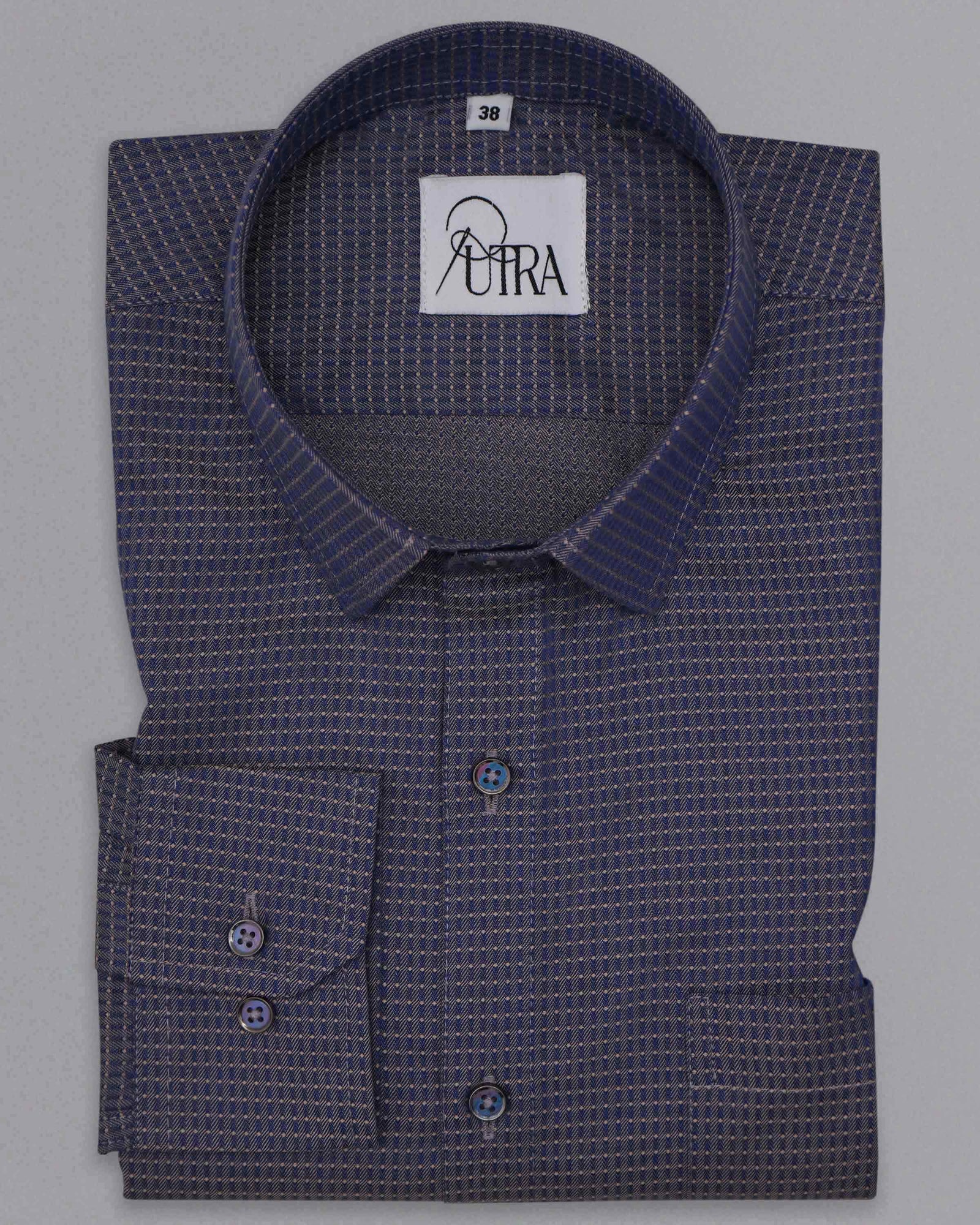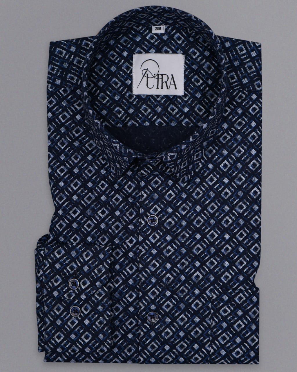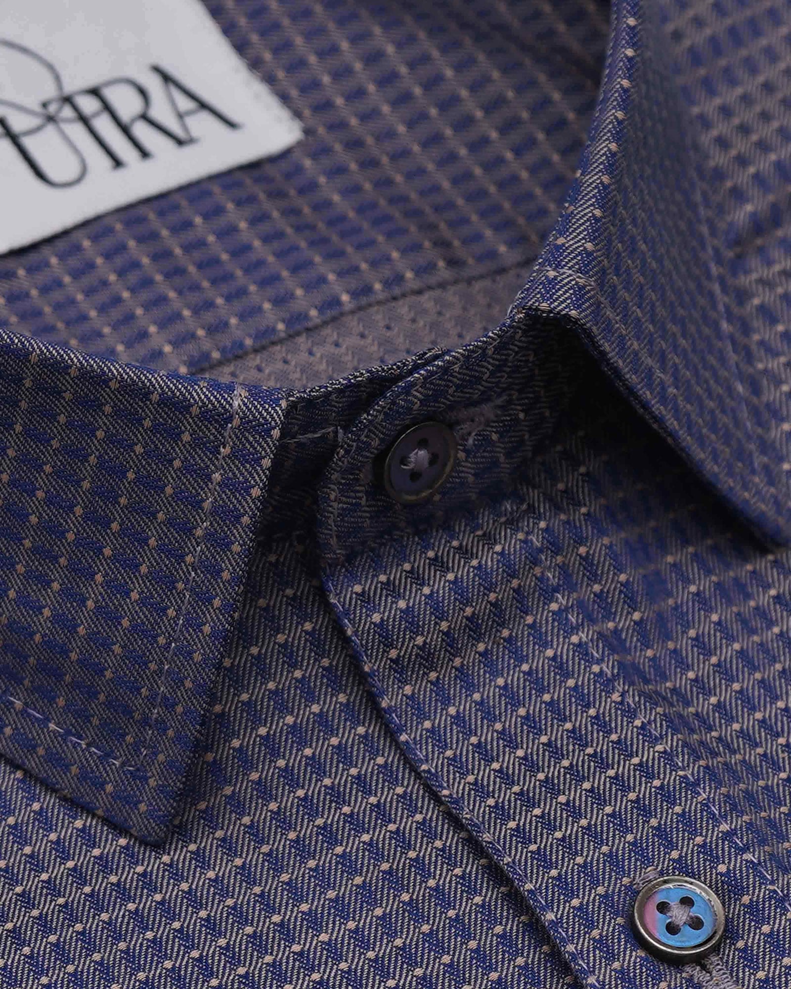 Elegant 100% Cotton Yarn-Dyed Shirt – Classic Navy with Subtle Micro Pattern