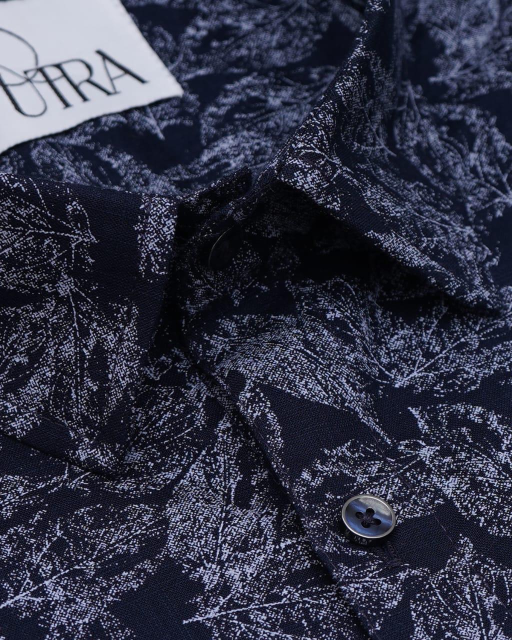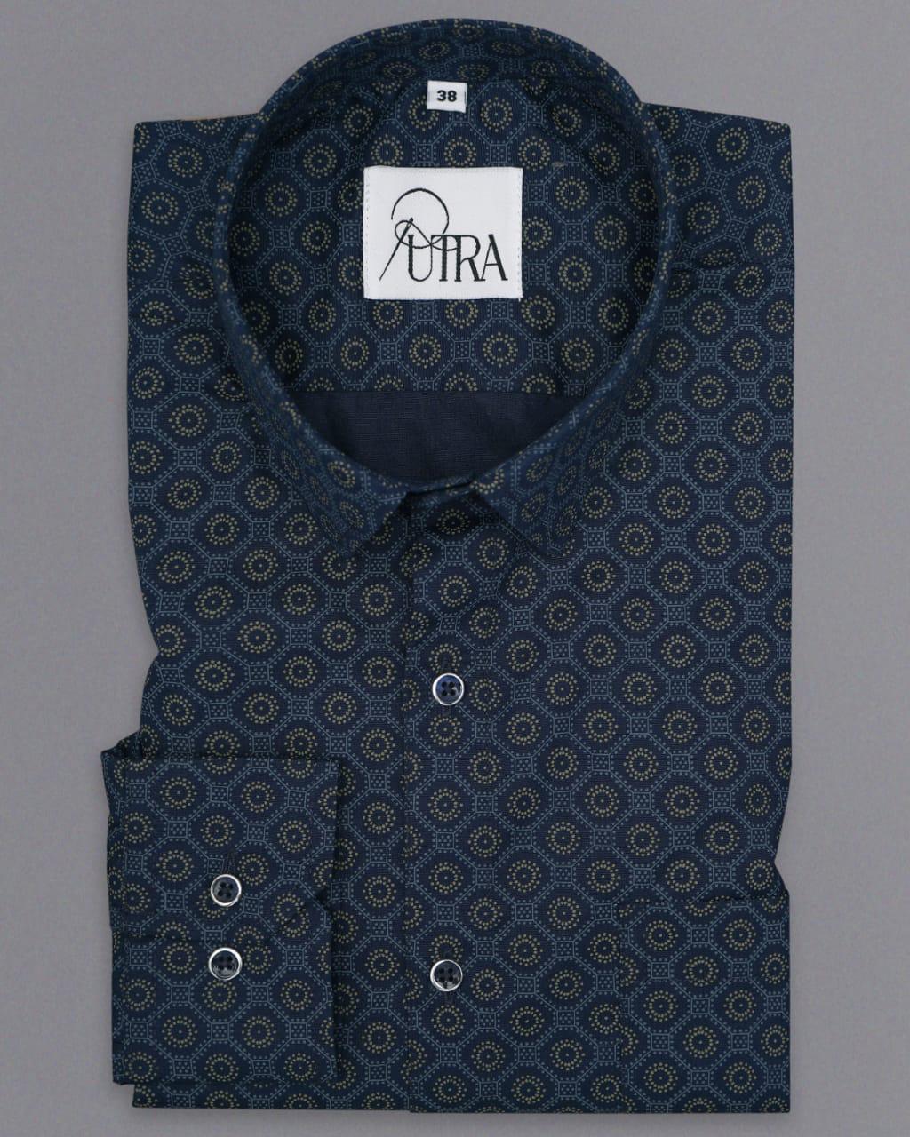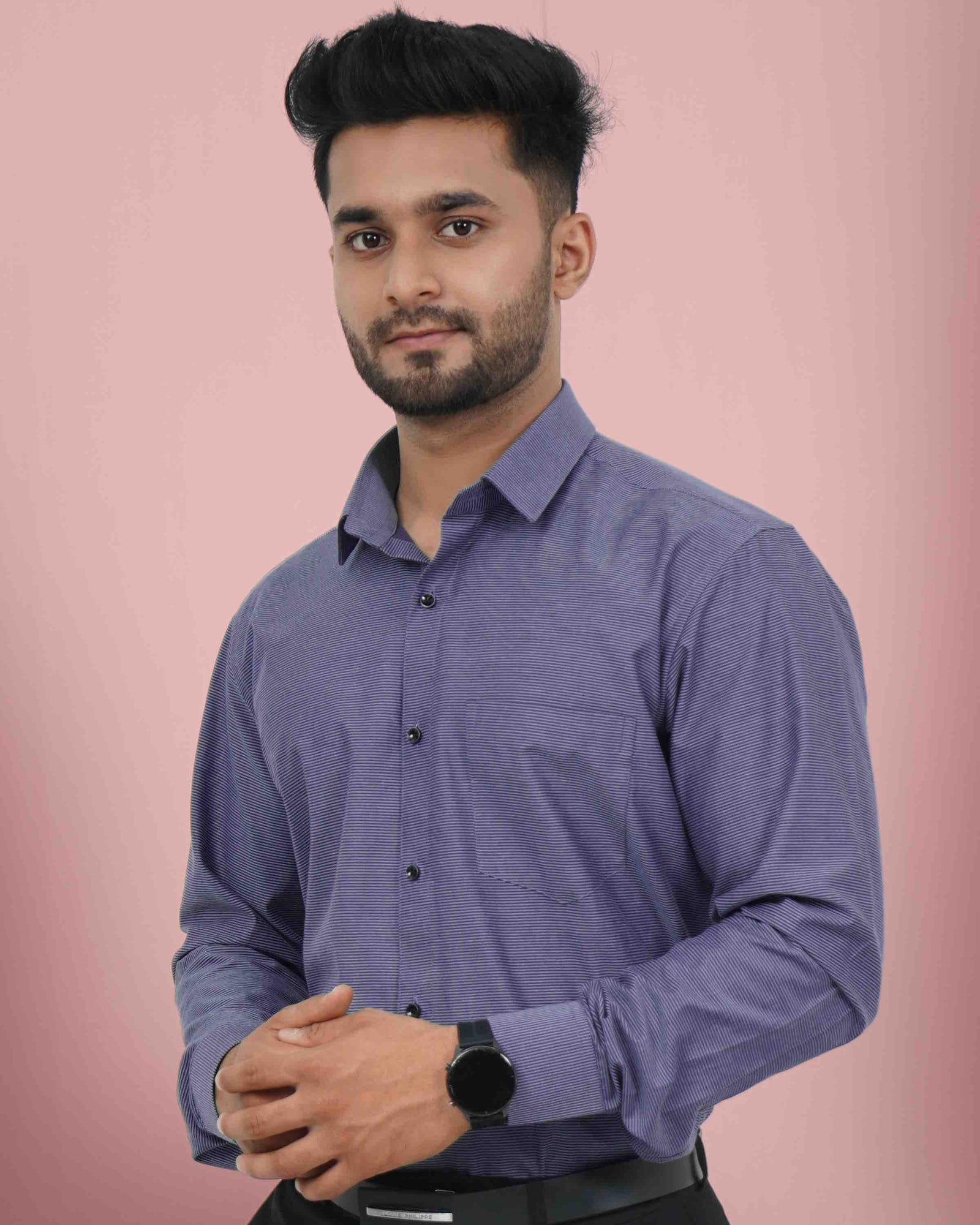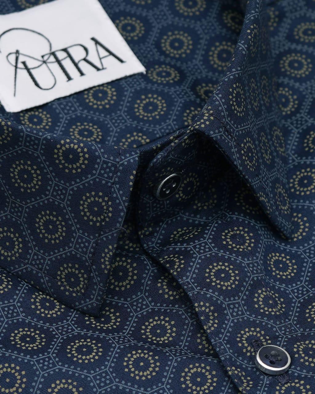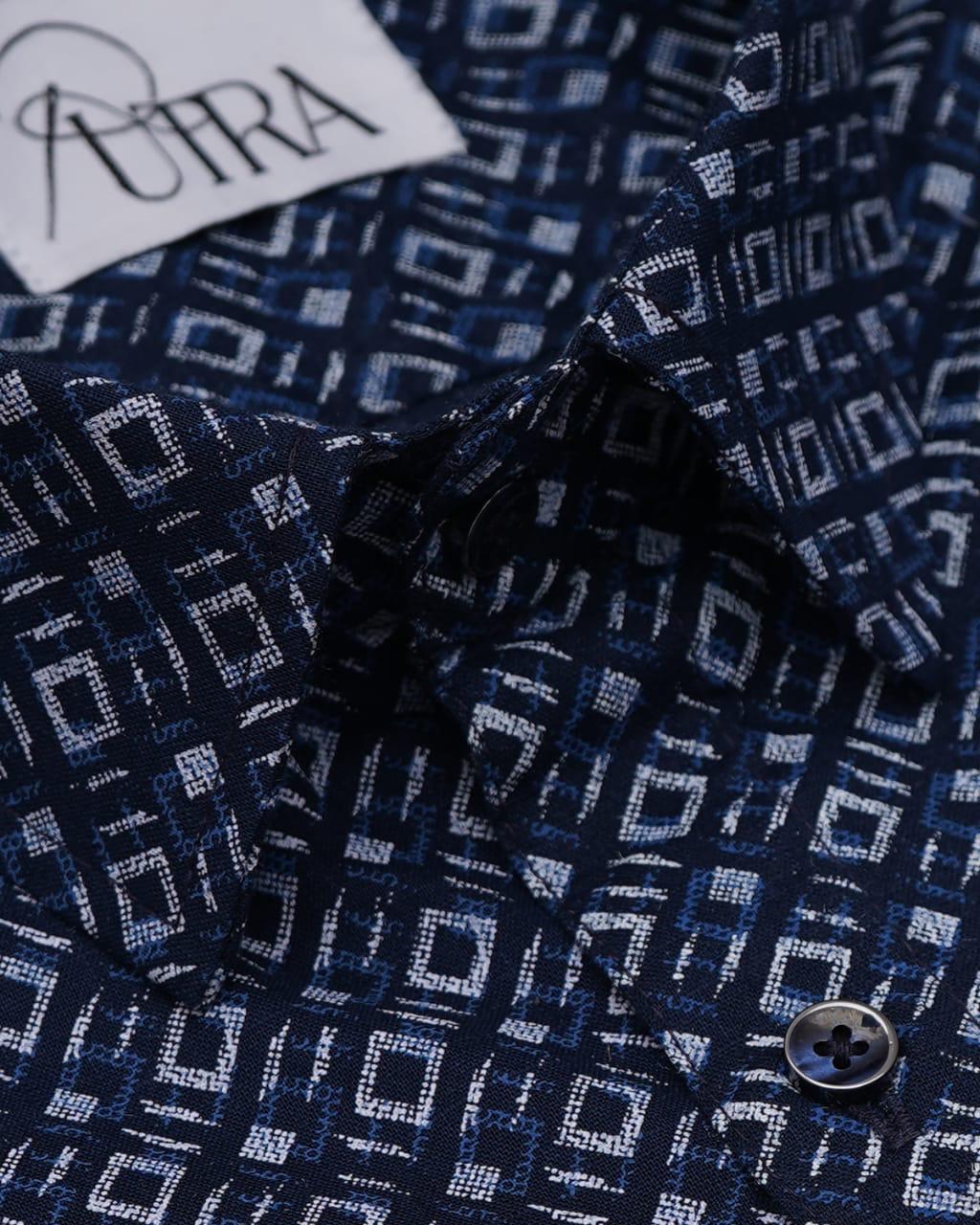 Elegant 100% Cotton Yarn-Dyed Shirt – Classic Navy with Subtle Micro Pattern