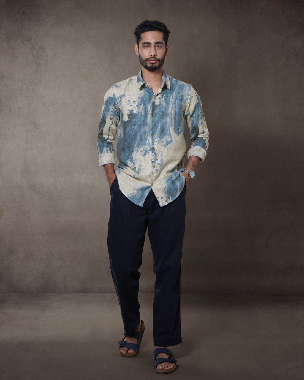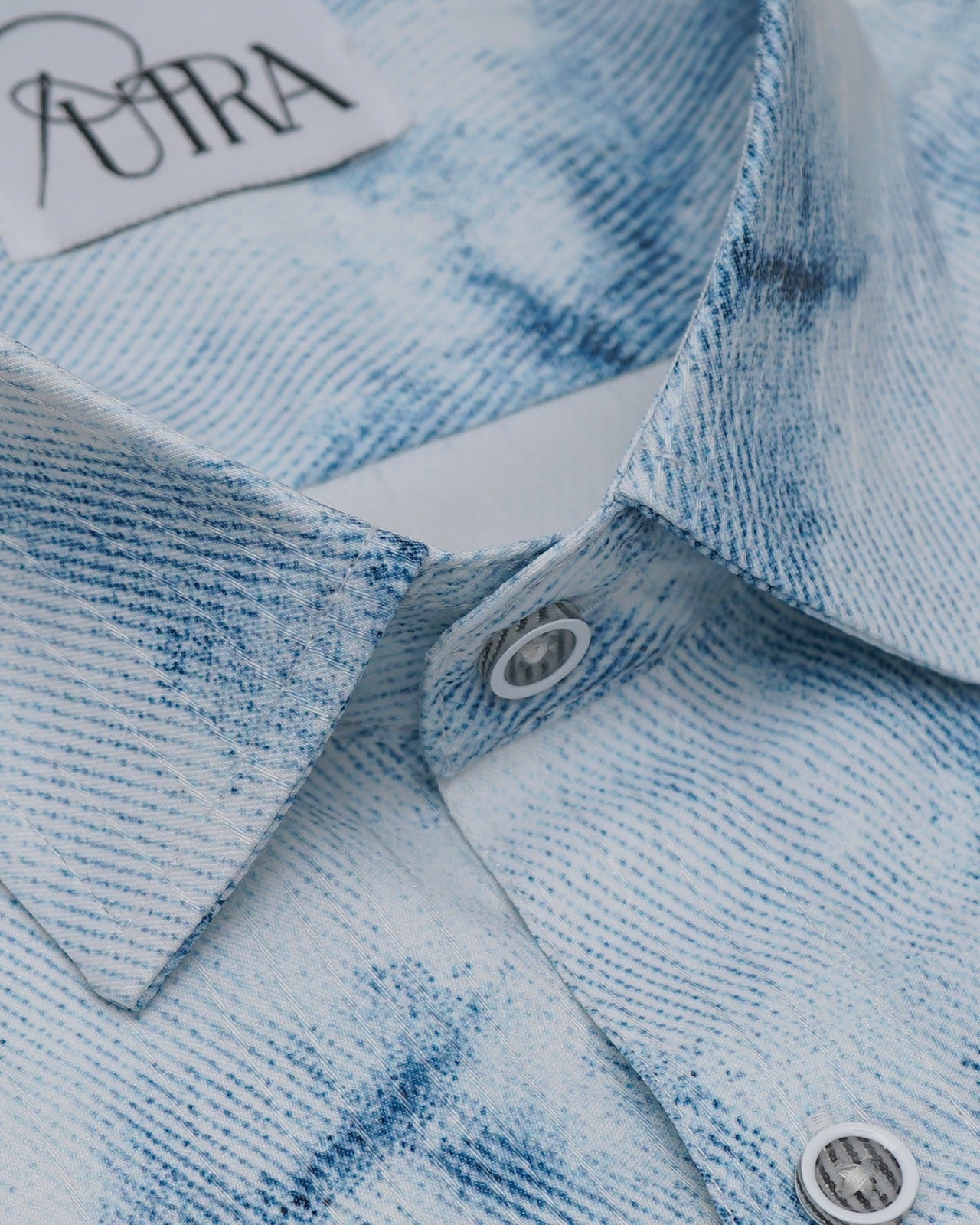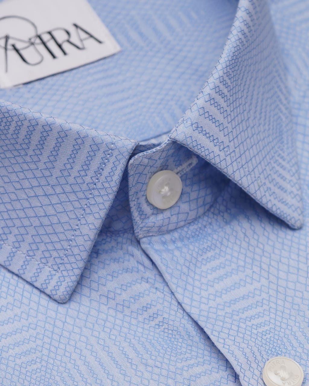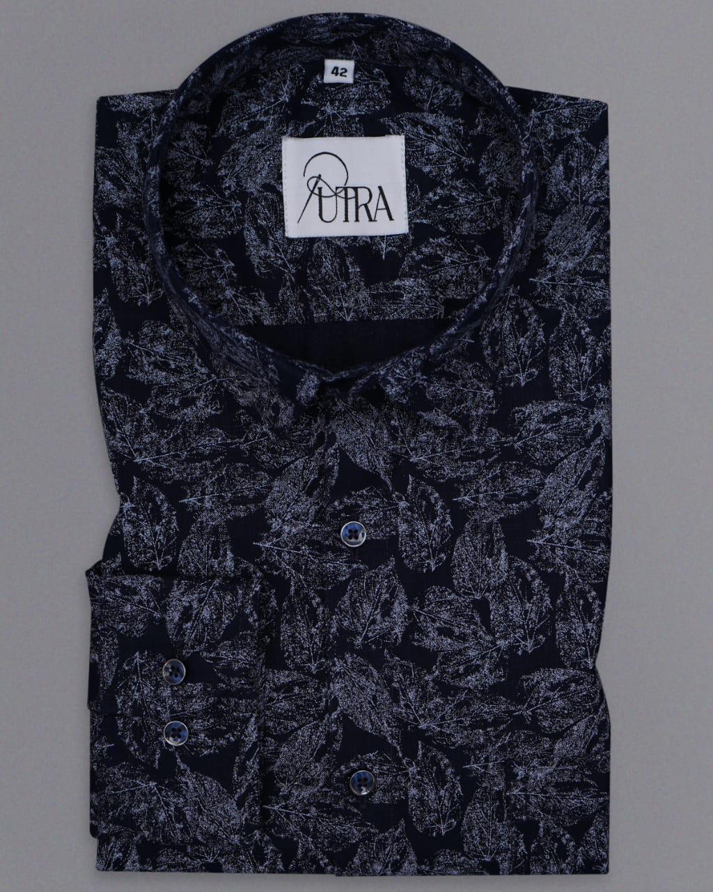 Elegant 100% Cotton Yarn-Dyed Shirt – Classic Navy with Subtle Micro Pattern