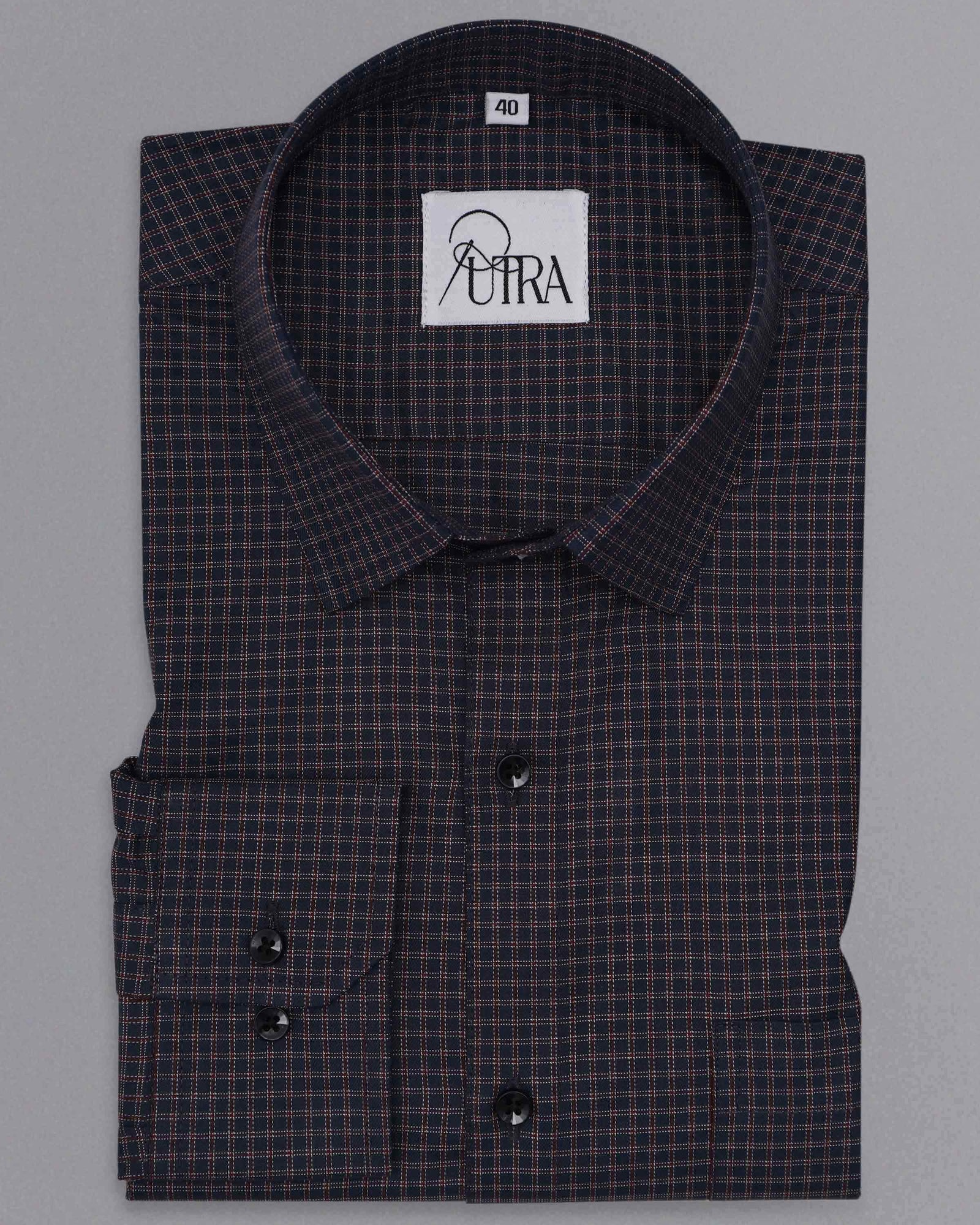 Black Base with Subtle Check Pattern 100% Cotton Yarn-Dyed Shirt
