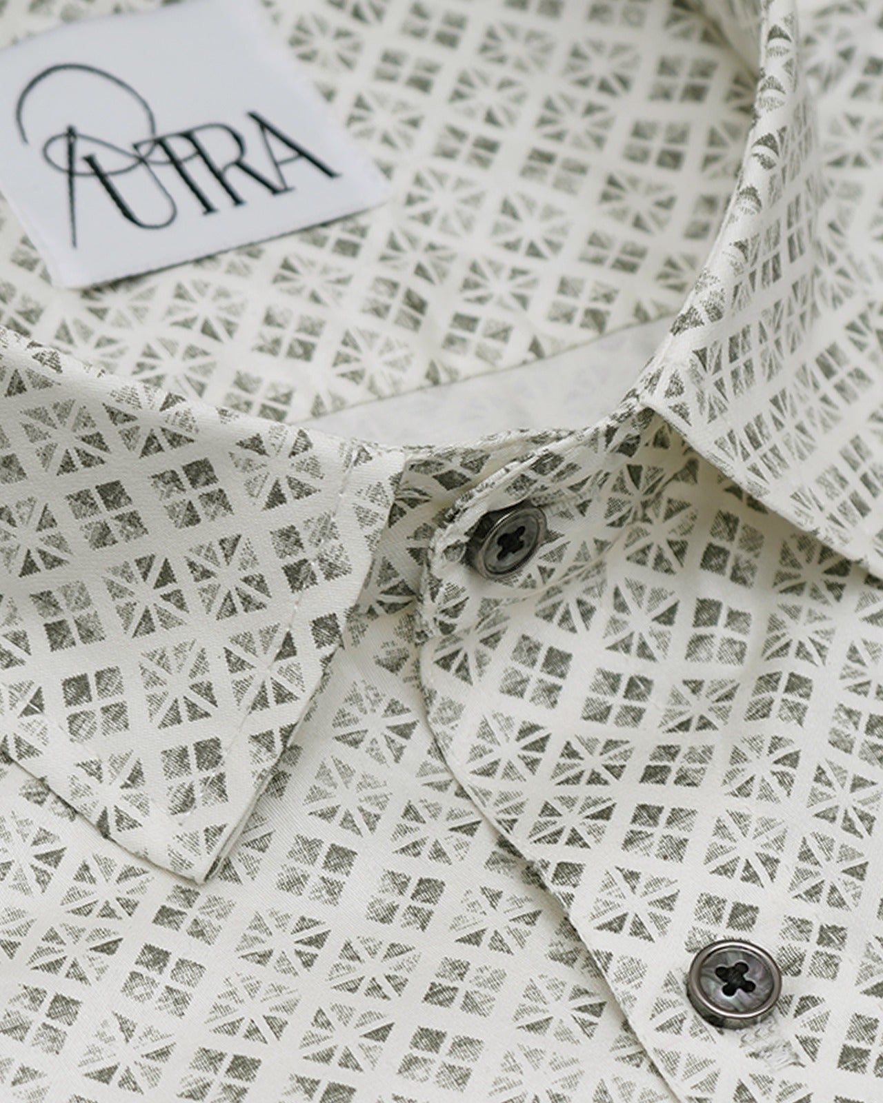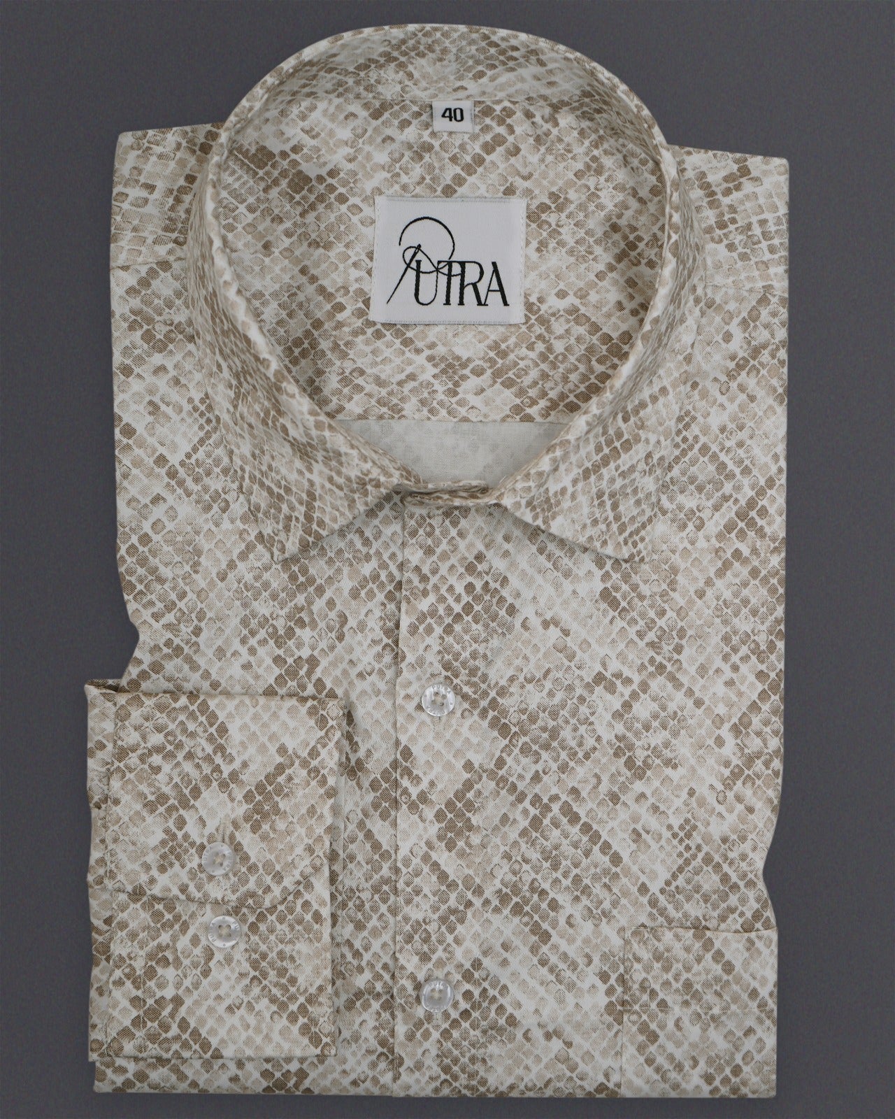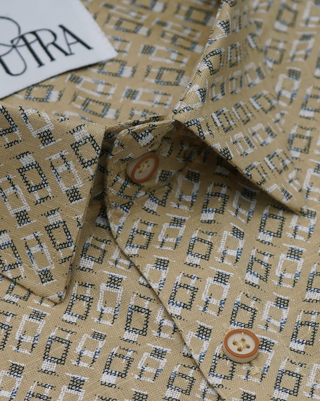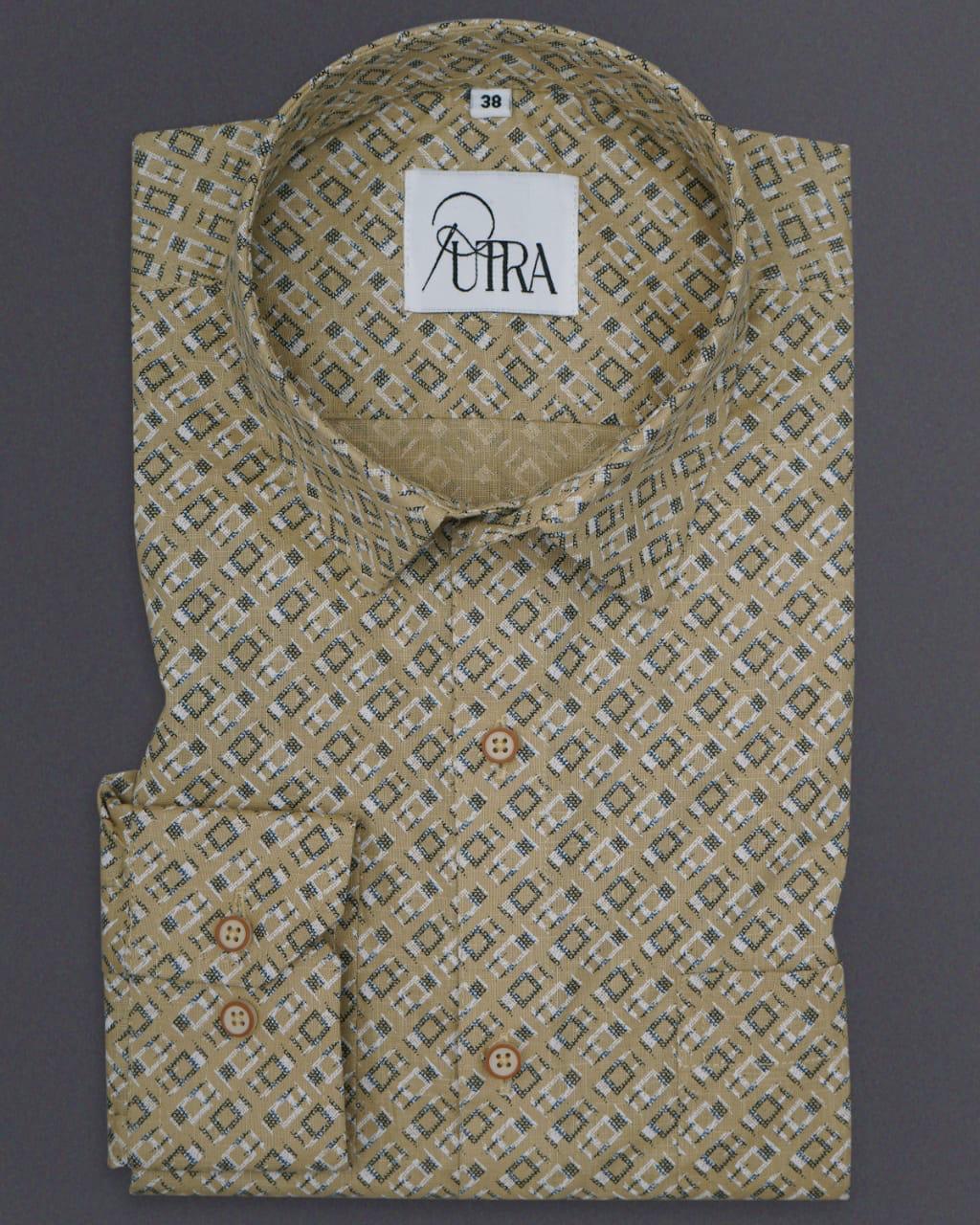 Dark Brown Cotton Shirt with Abstract Geometric Pattern