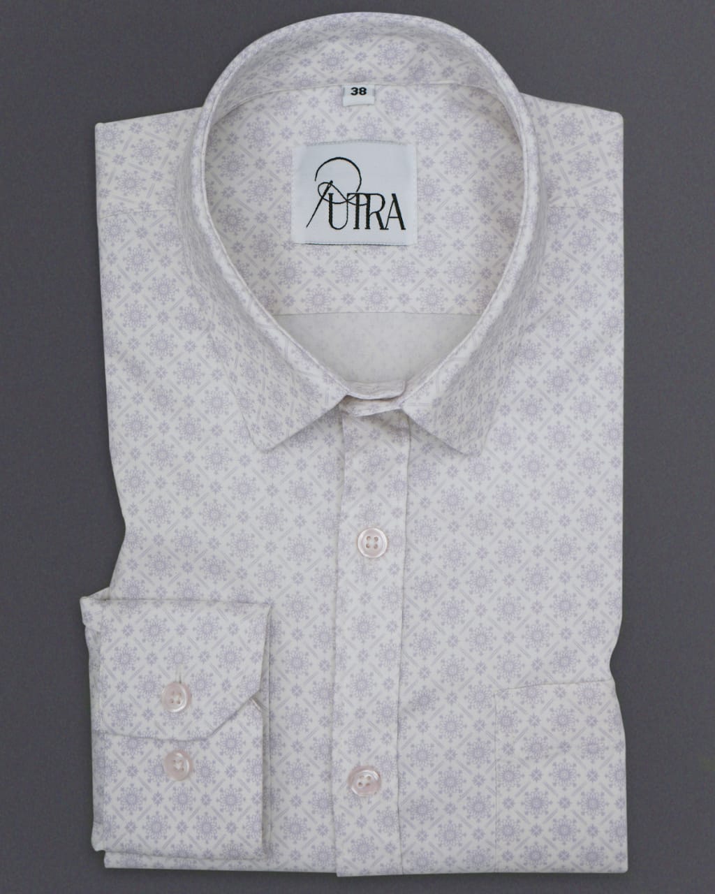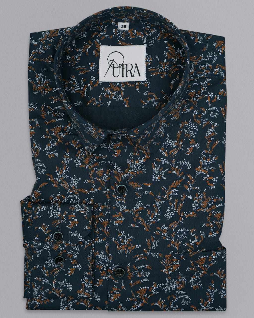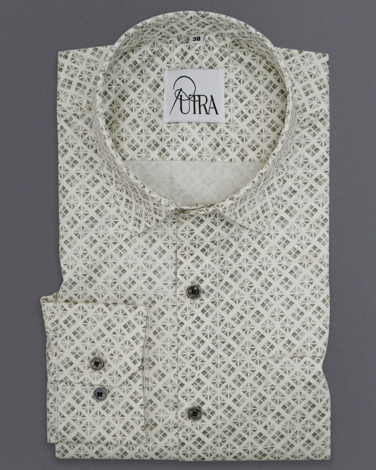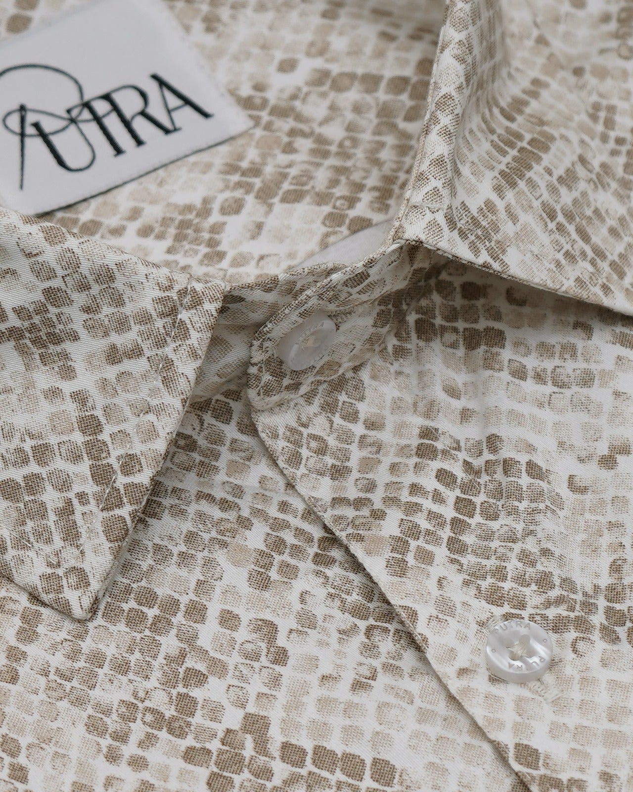 Dark Brown Cotton Shirt with Abstract Geometric Pattern