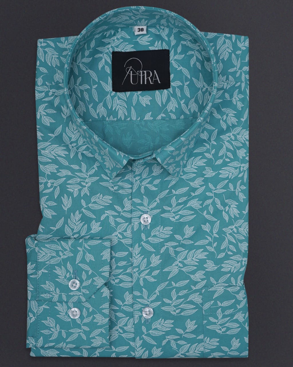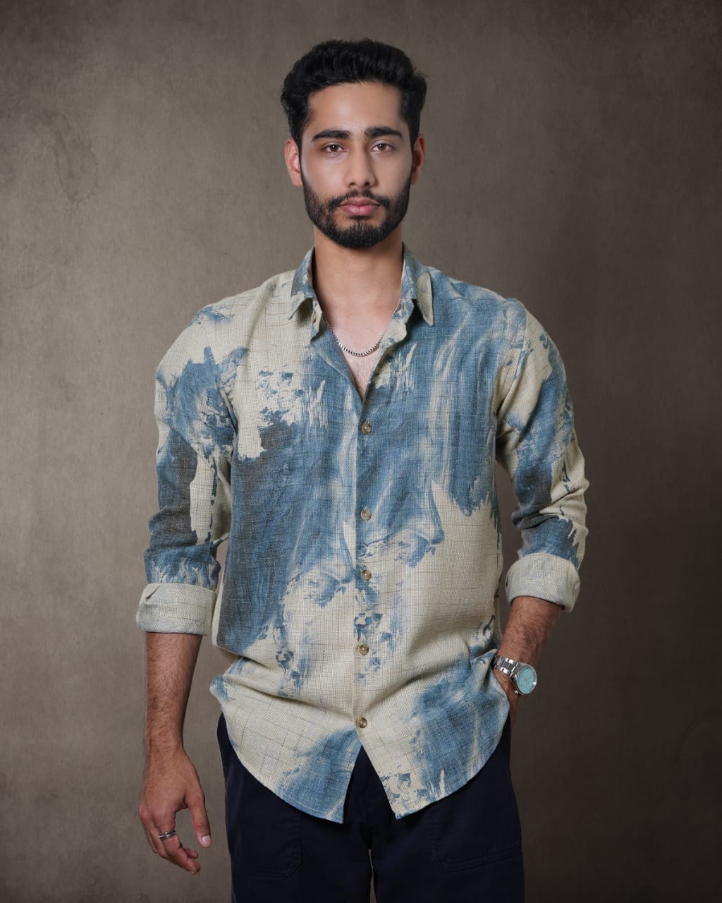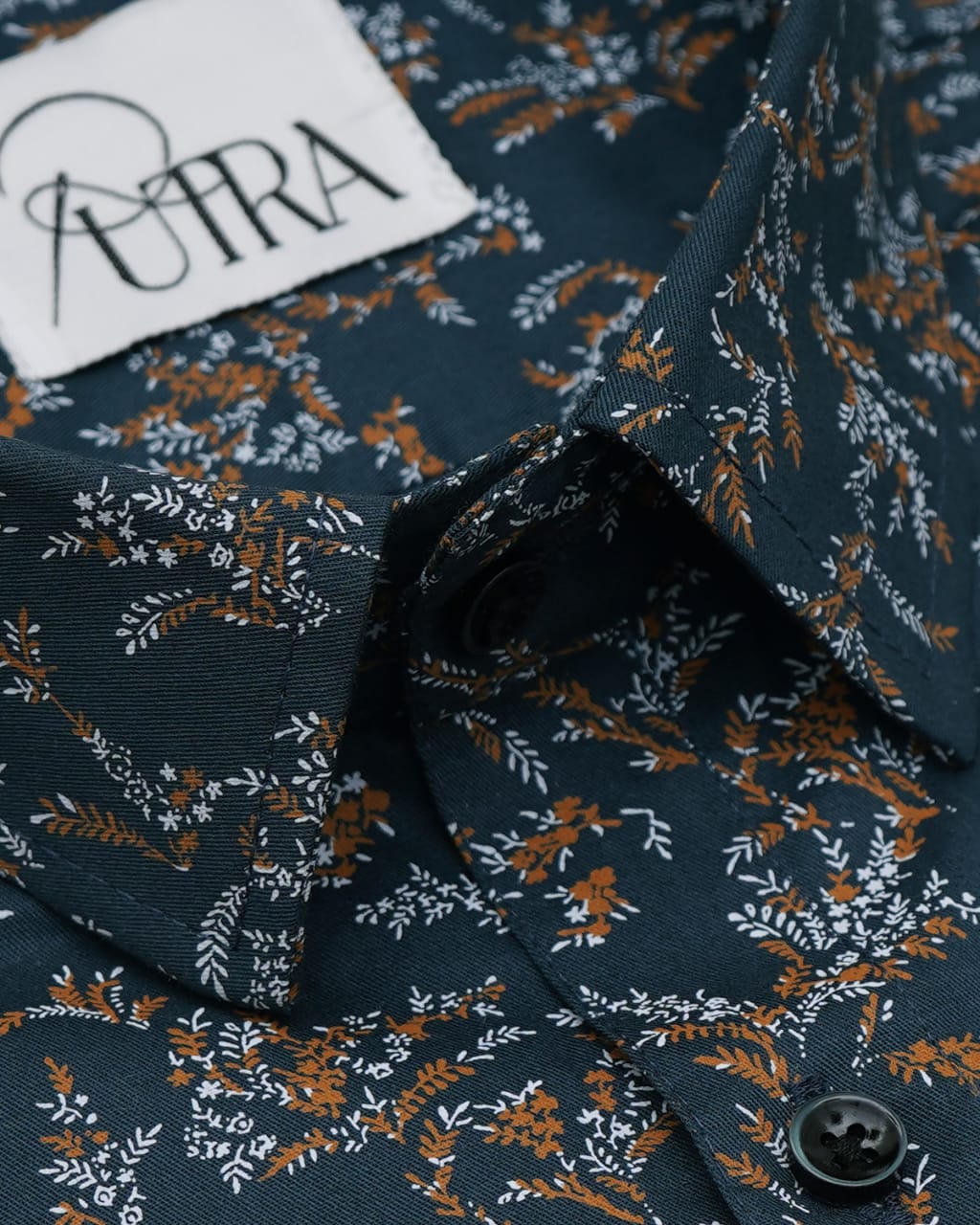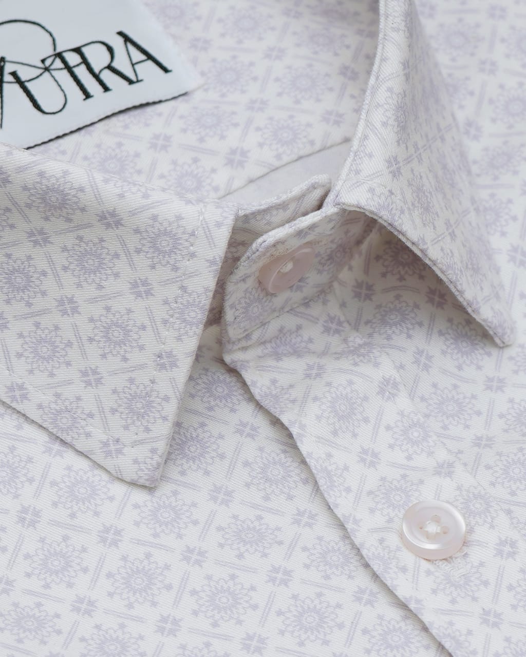 Dark Brown Cotton Shirt with Abstract Geometric Pattern