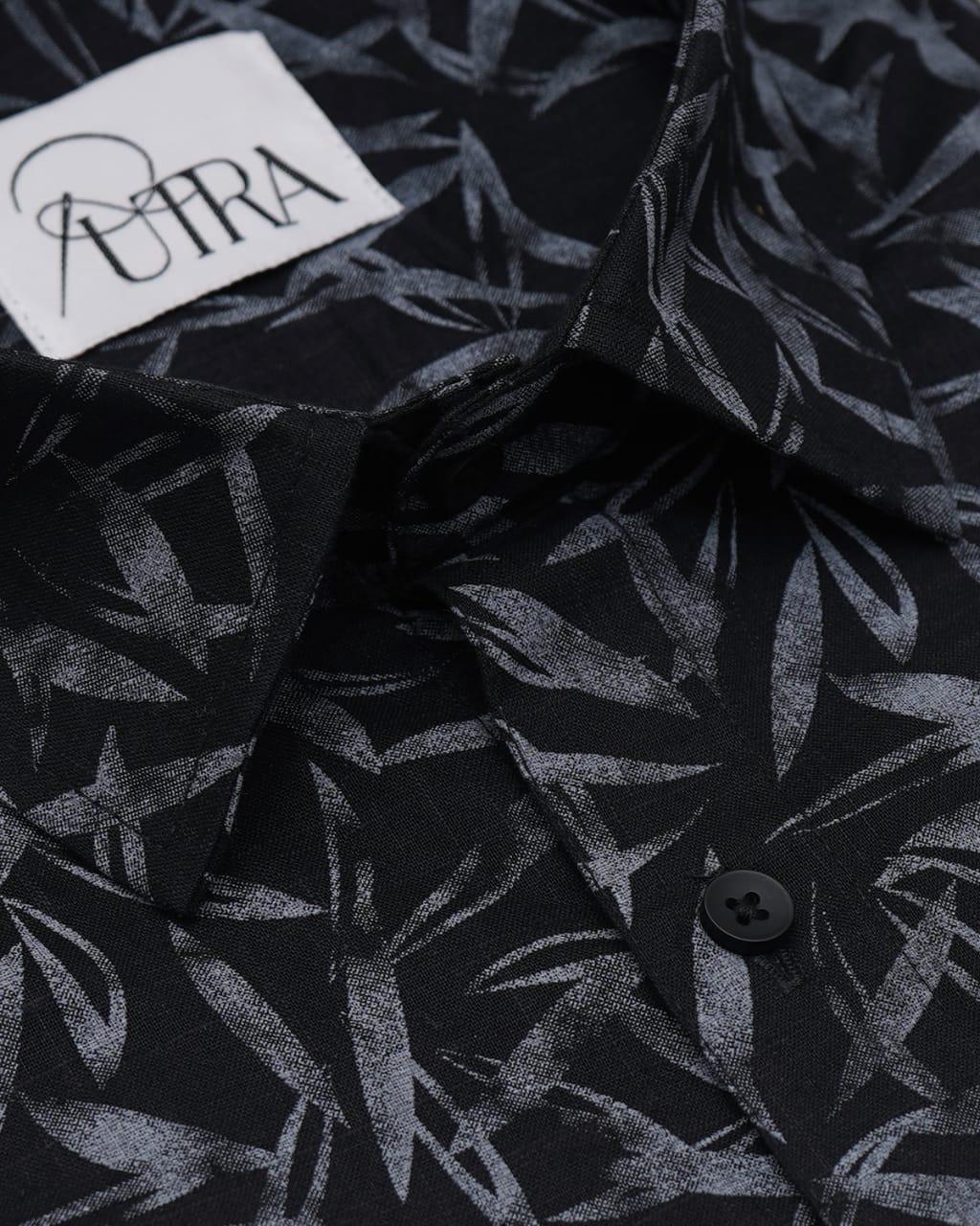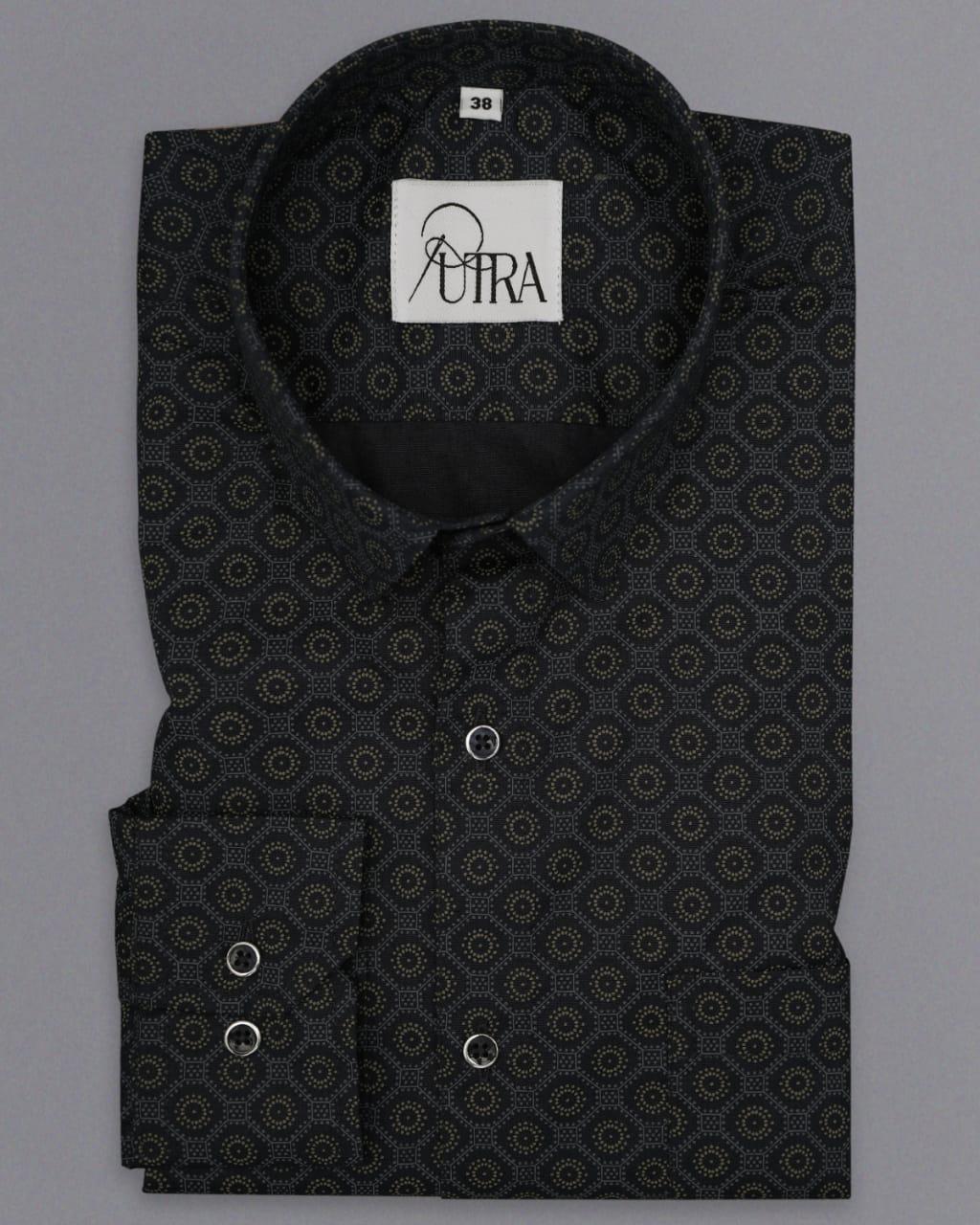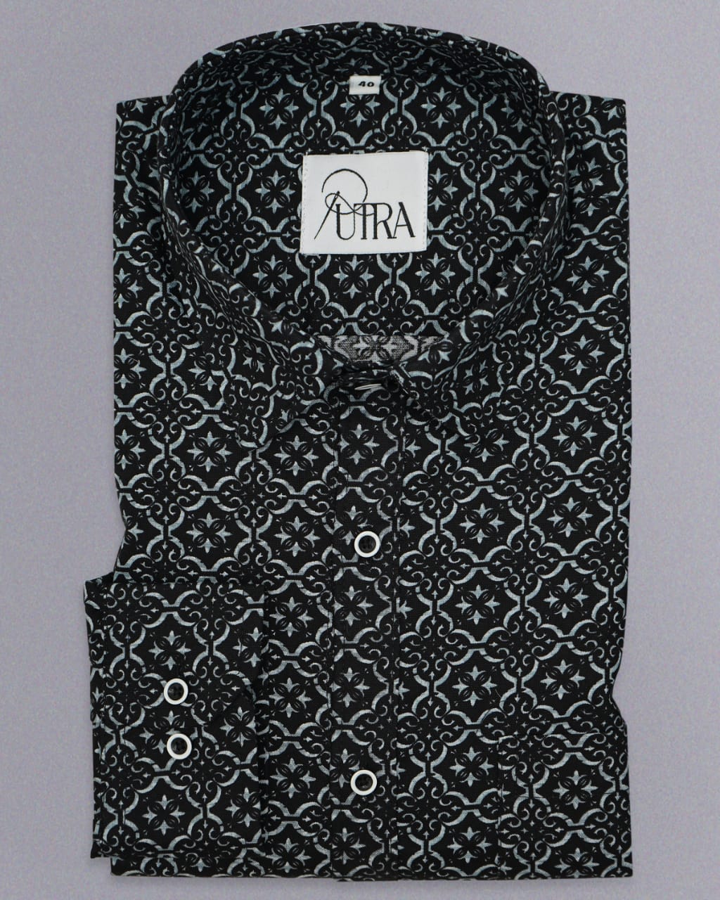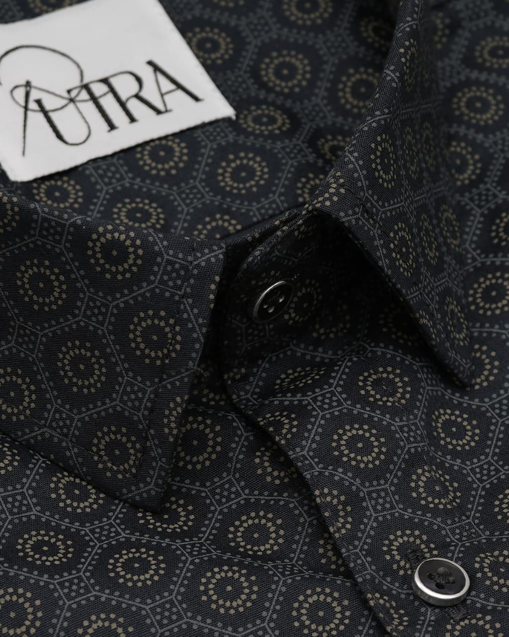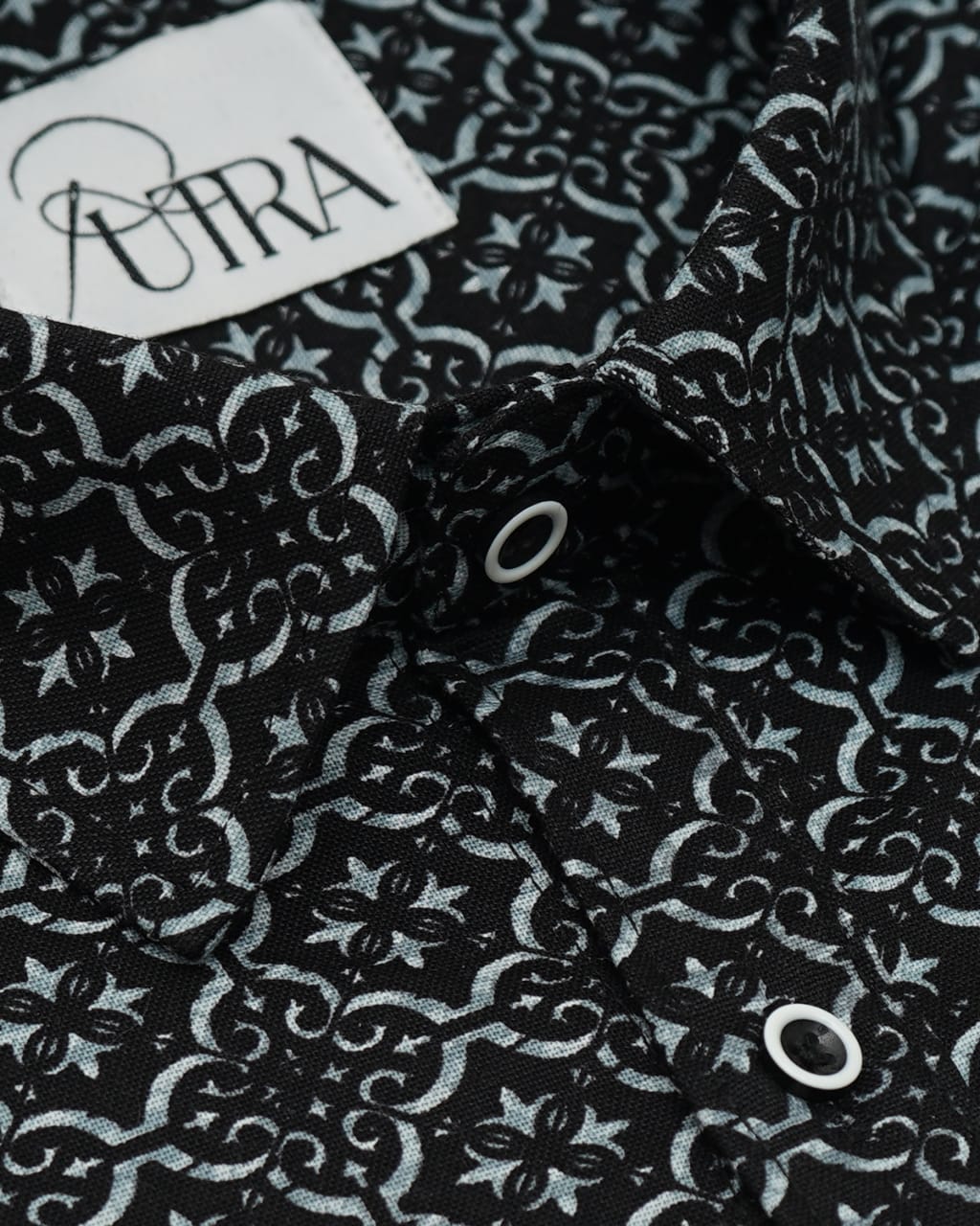 Black Printed 100% Cotton Shirt with Geometric Patterns