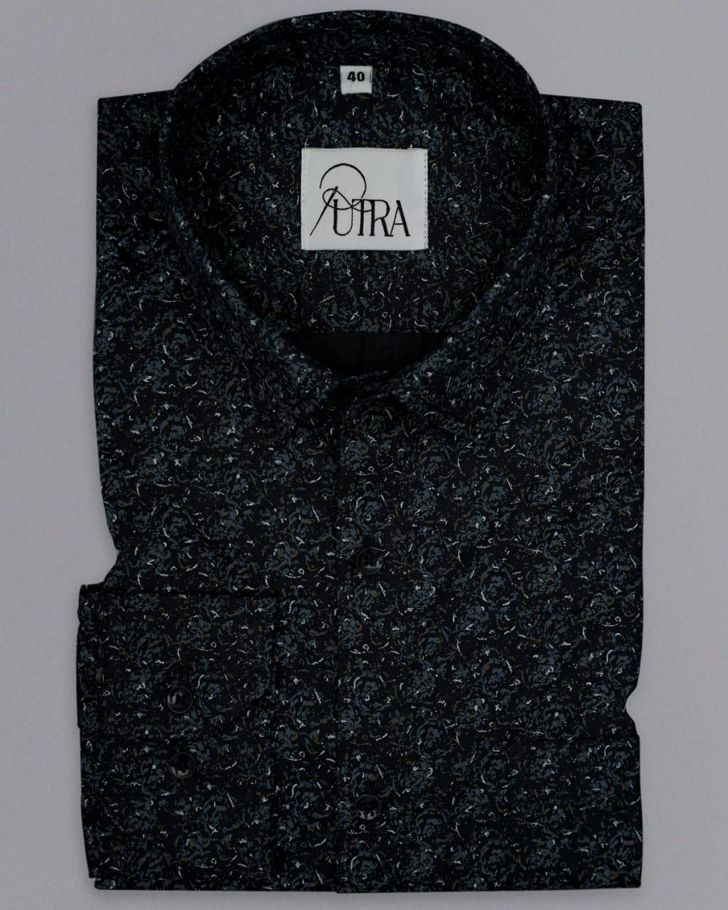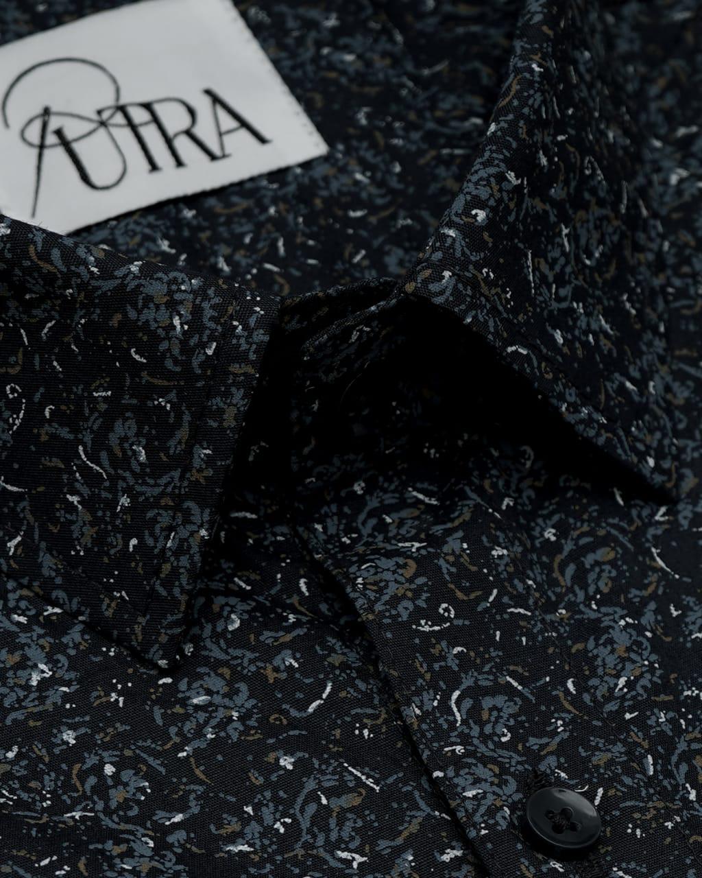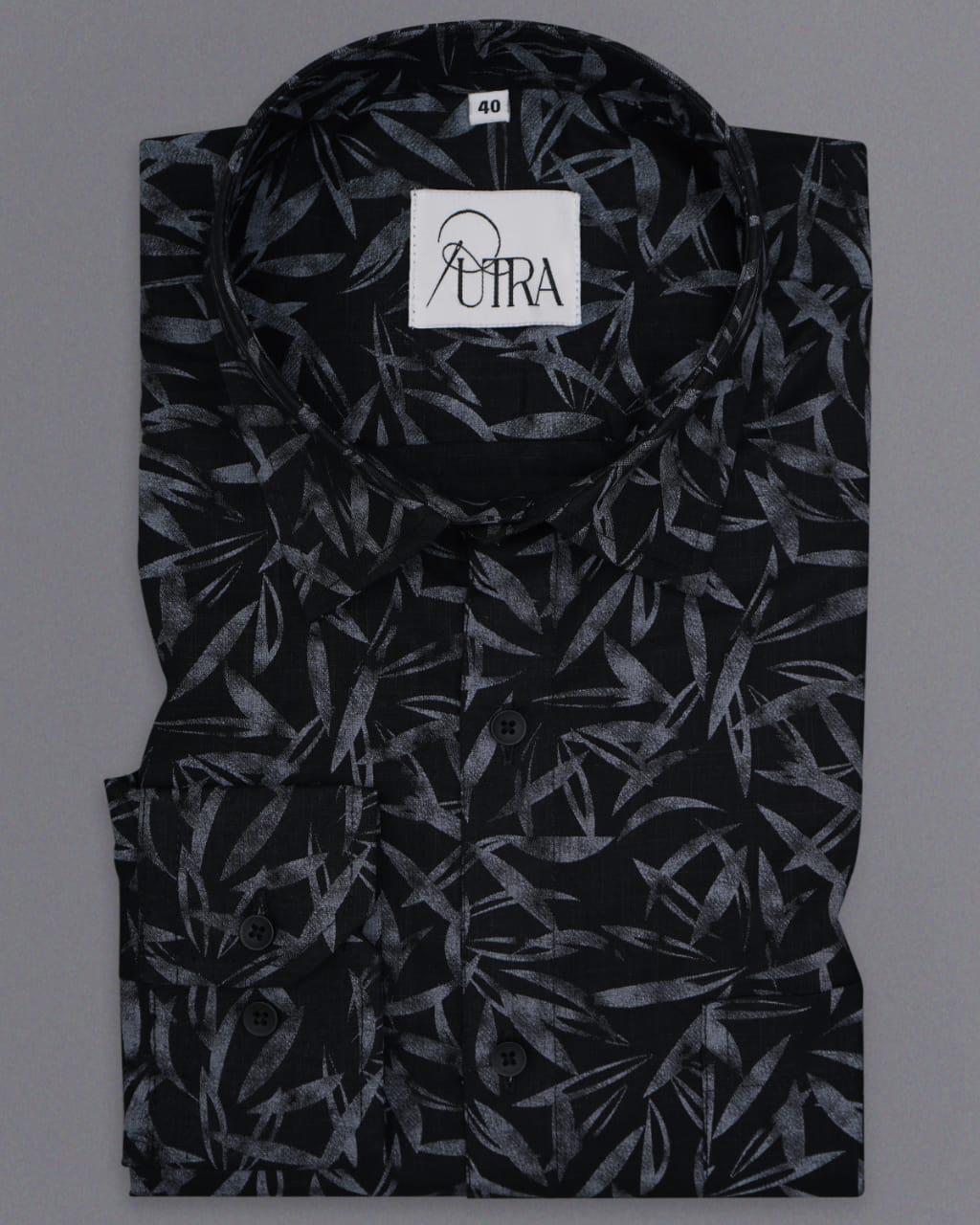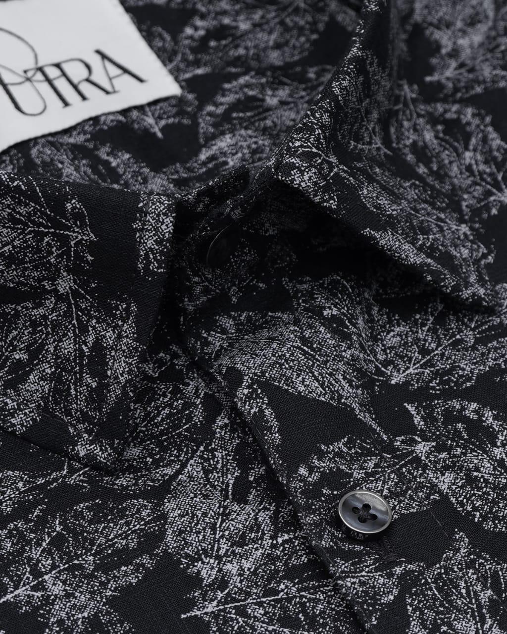 Black Printed 100% Cotton Shirt with Geometric Patterns