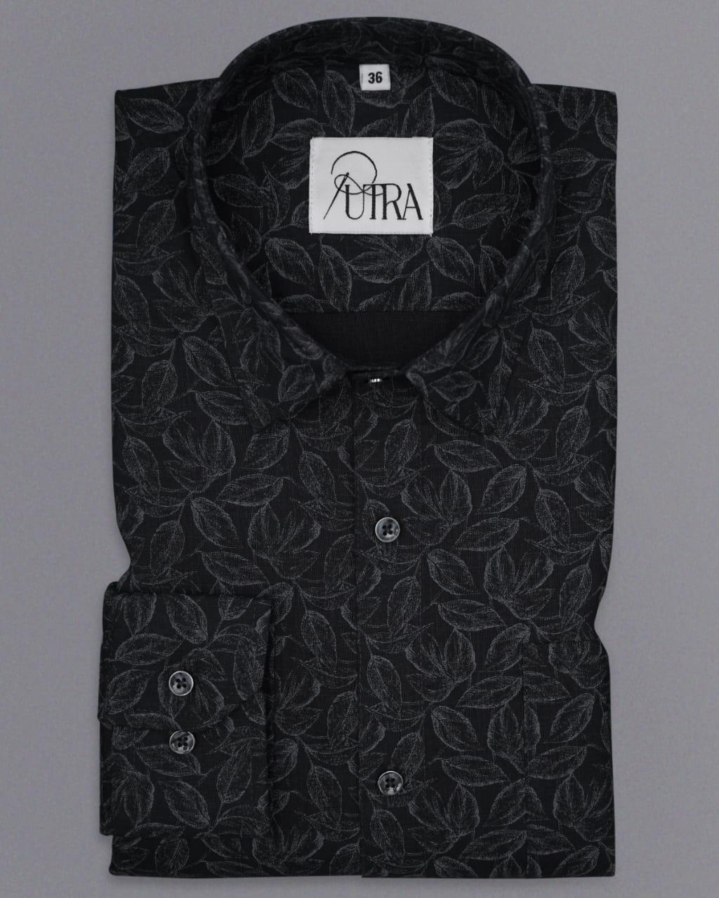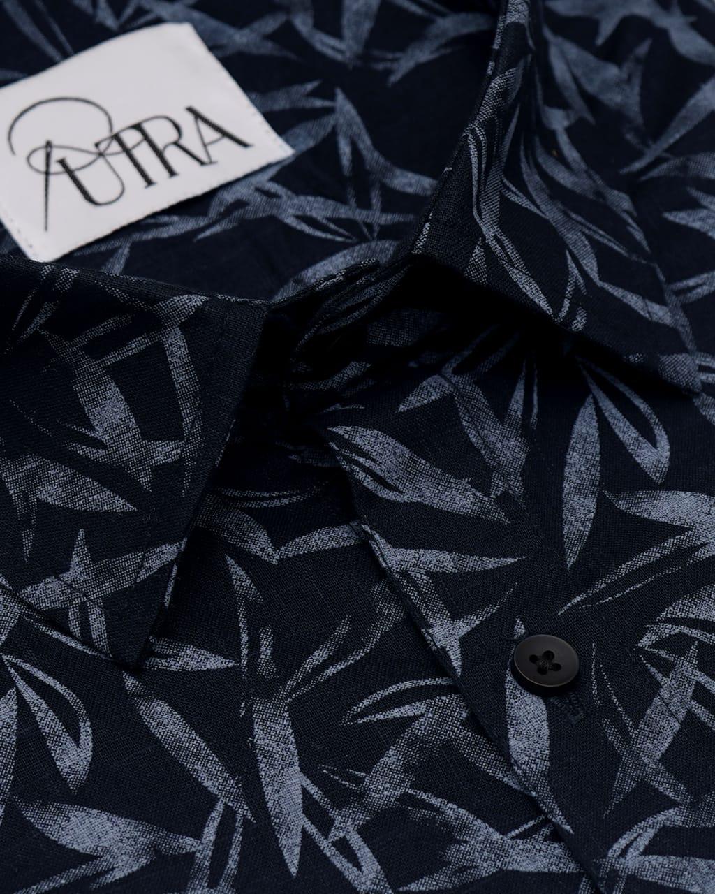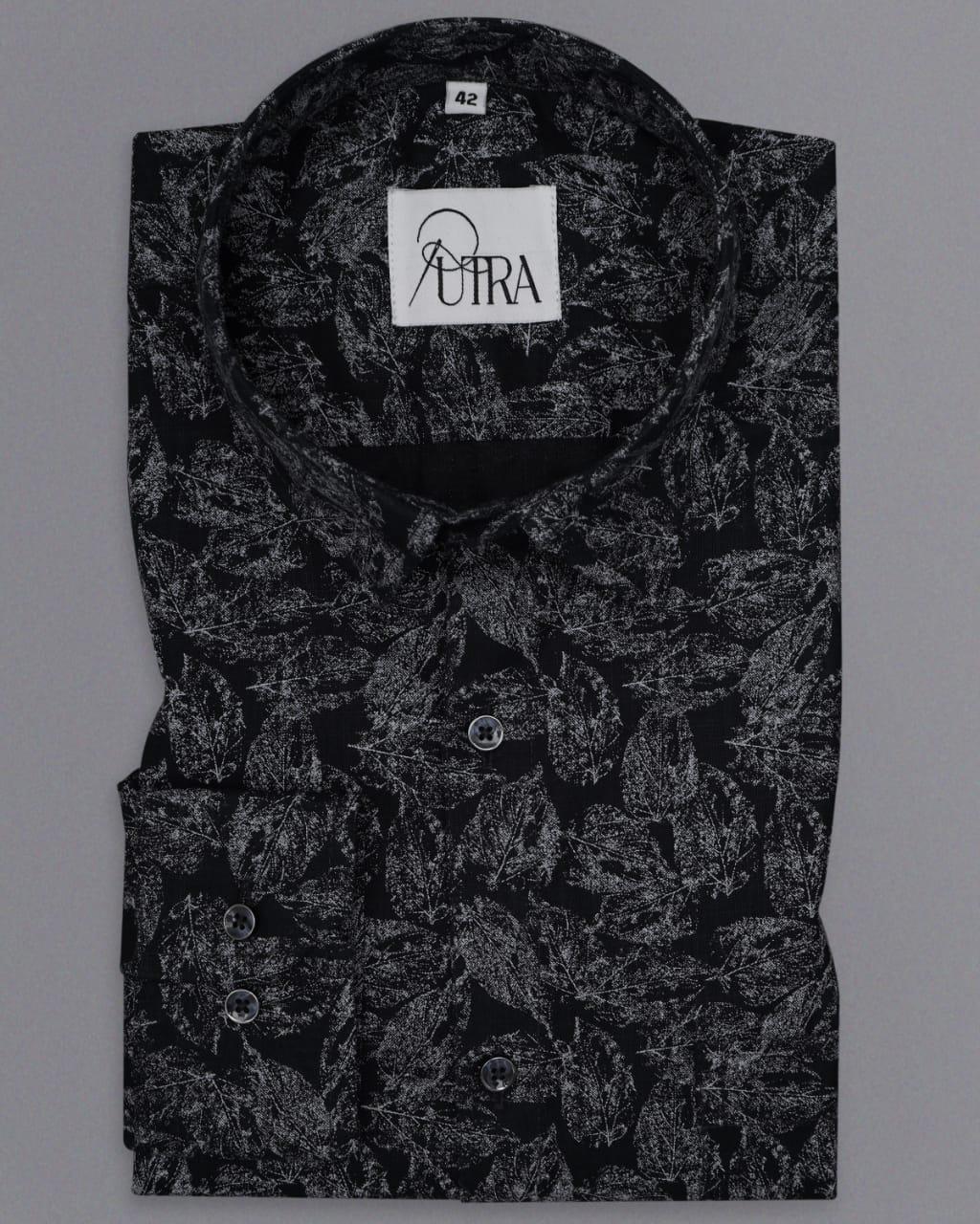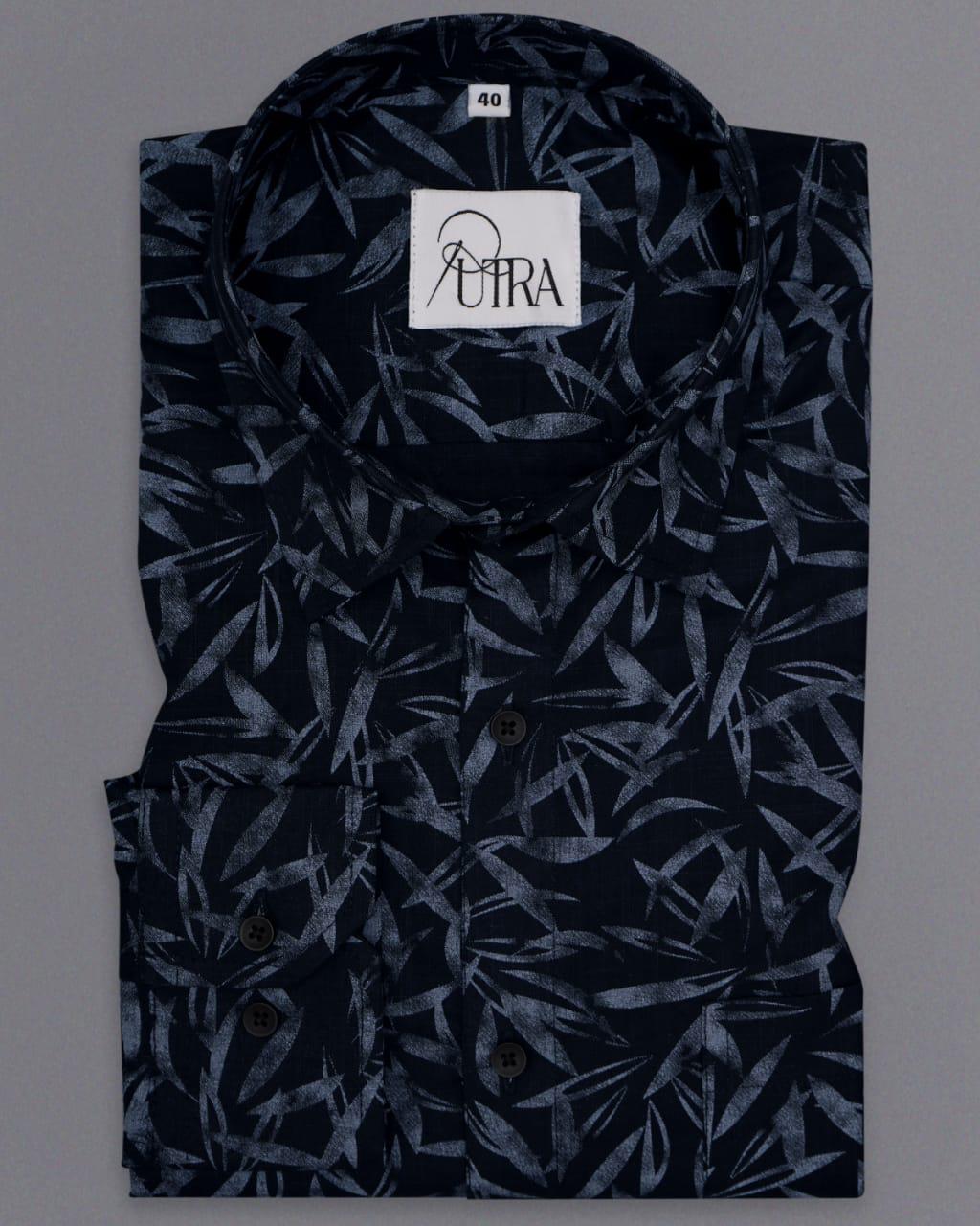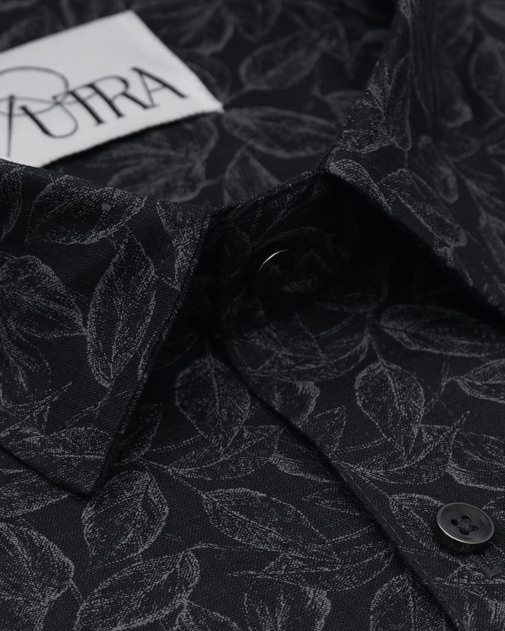 Black Printed 100% Cotton Shirt with Geometric Patterns