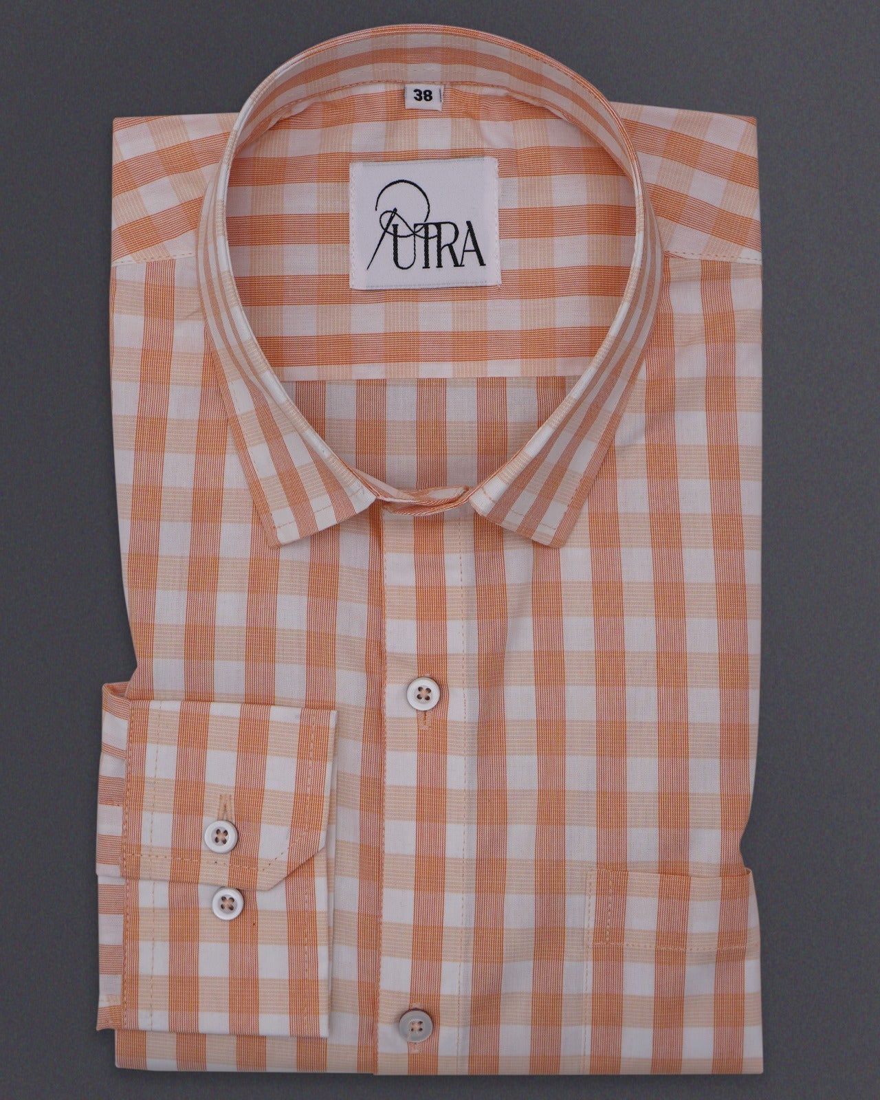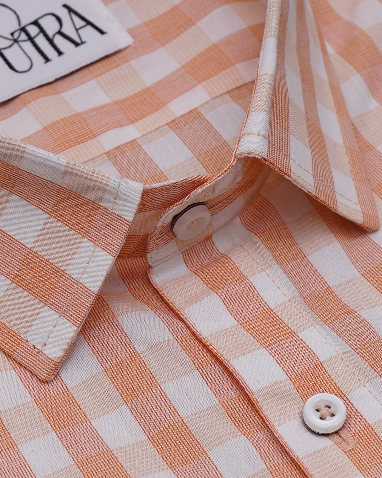 Classic Orange Checkered Yarn-Dyed Cotton Shirt
