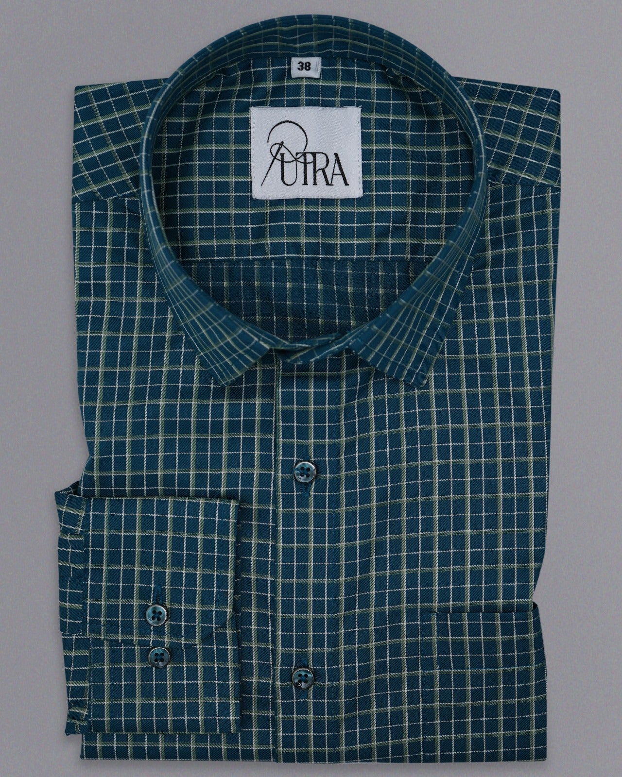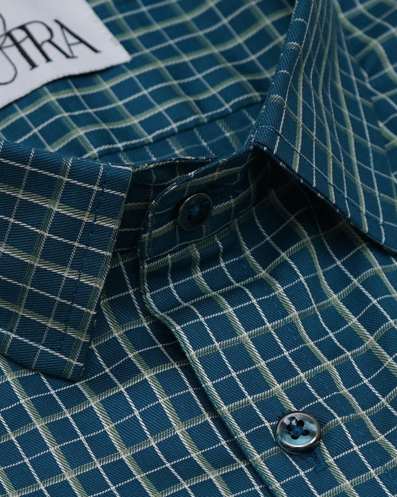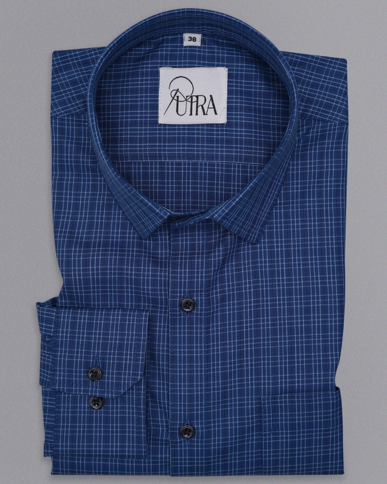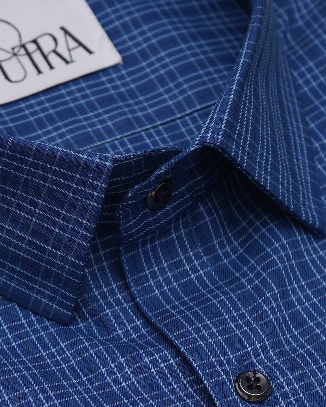 Classic 100% Cotton Yarn-Dyed Checkered Shirt – Modern Elegance in Blue