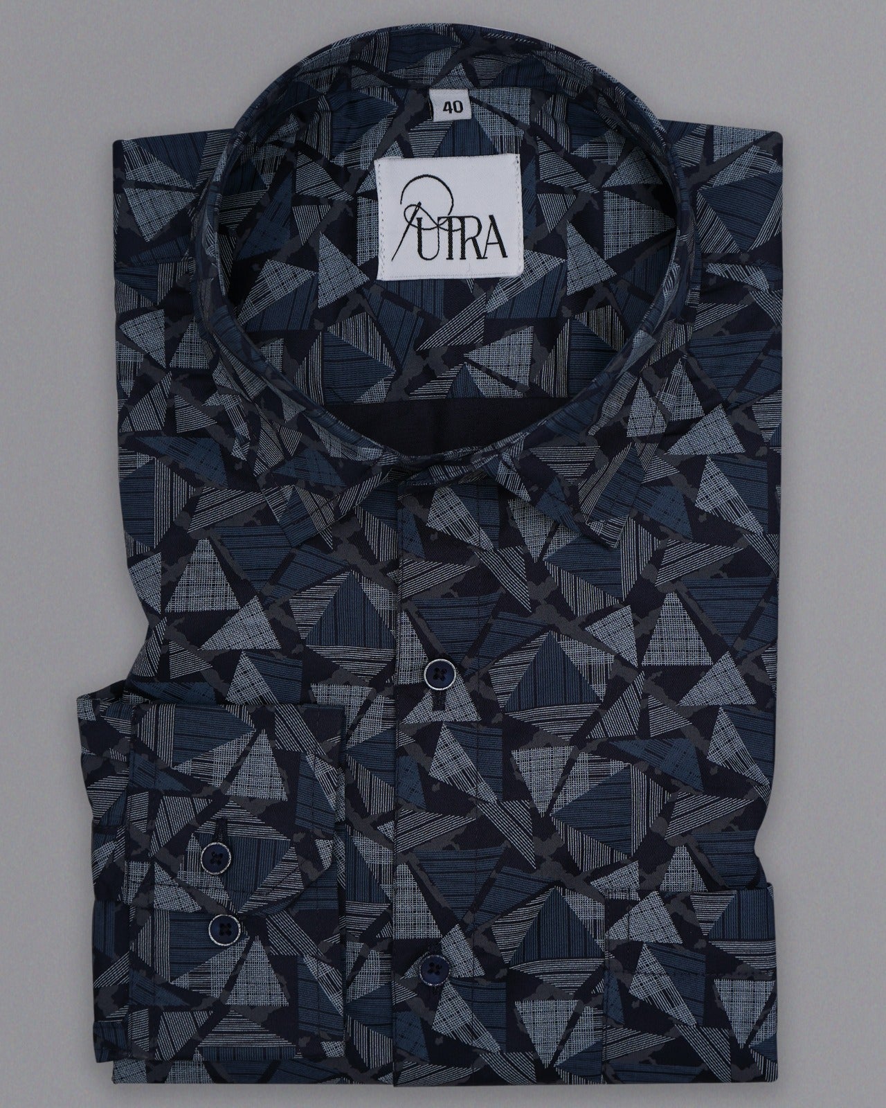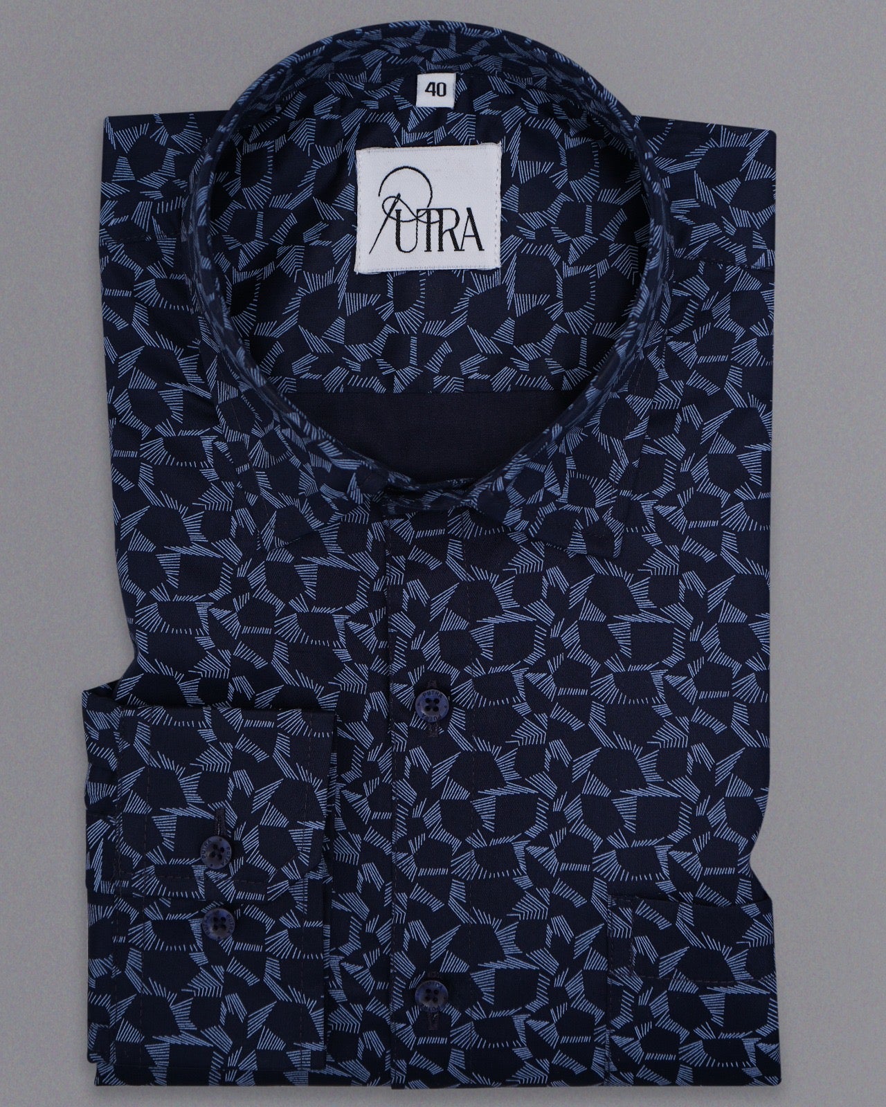Mens Navy Blue Geometric Pattern Premium Shirt