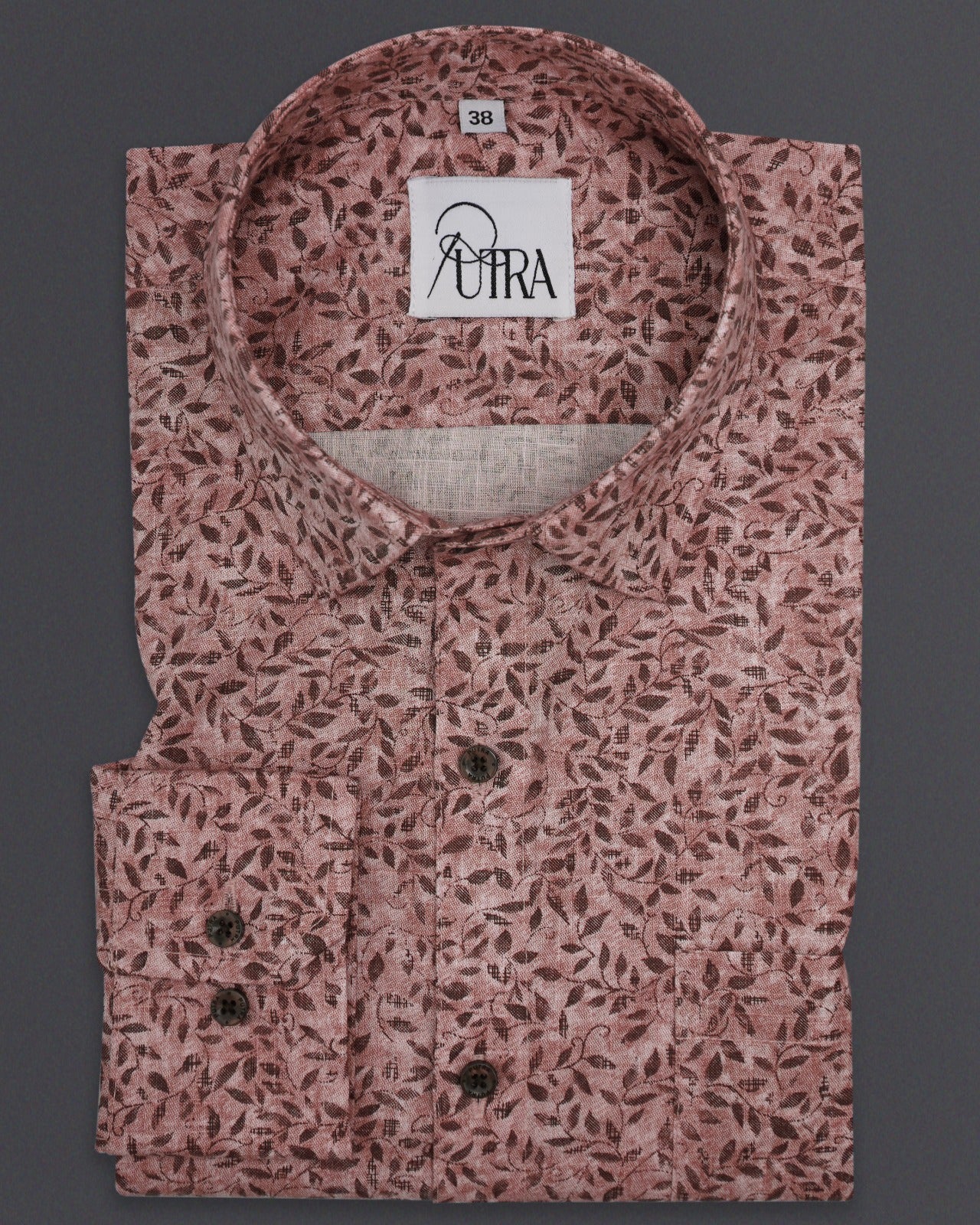 Men Sophisticated Brown Floral Cotton Slub Shirt
