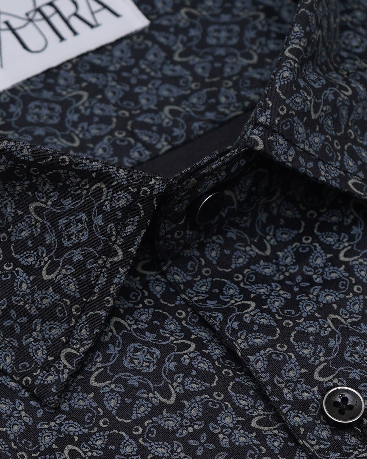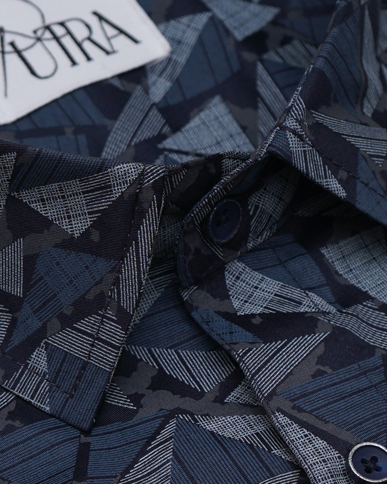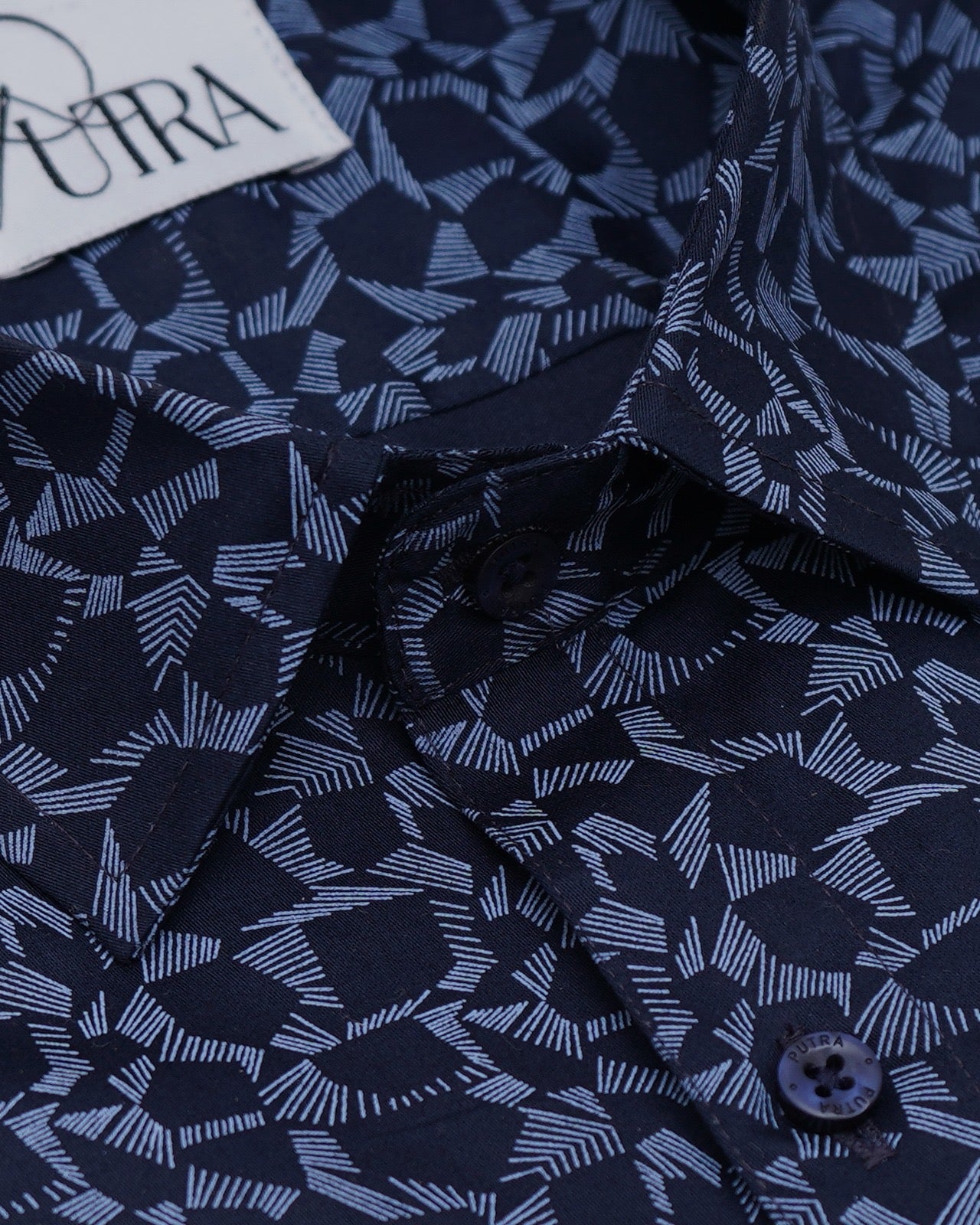 Premium Navy Blue Cotton Shirt with Abstract Pattern