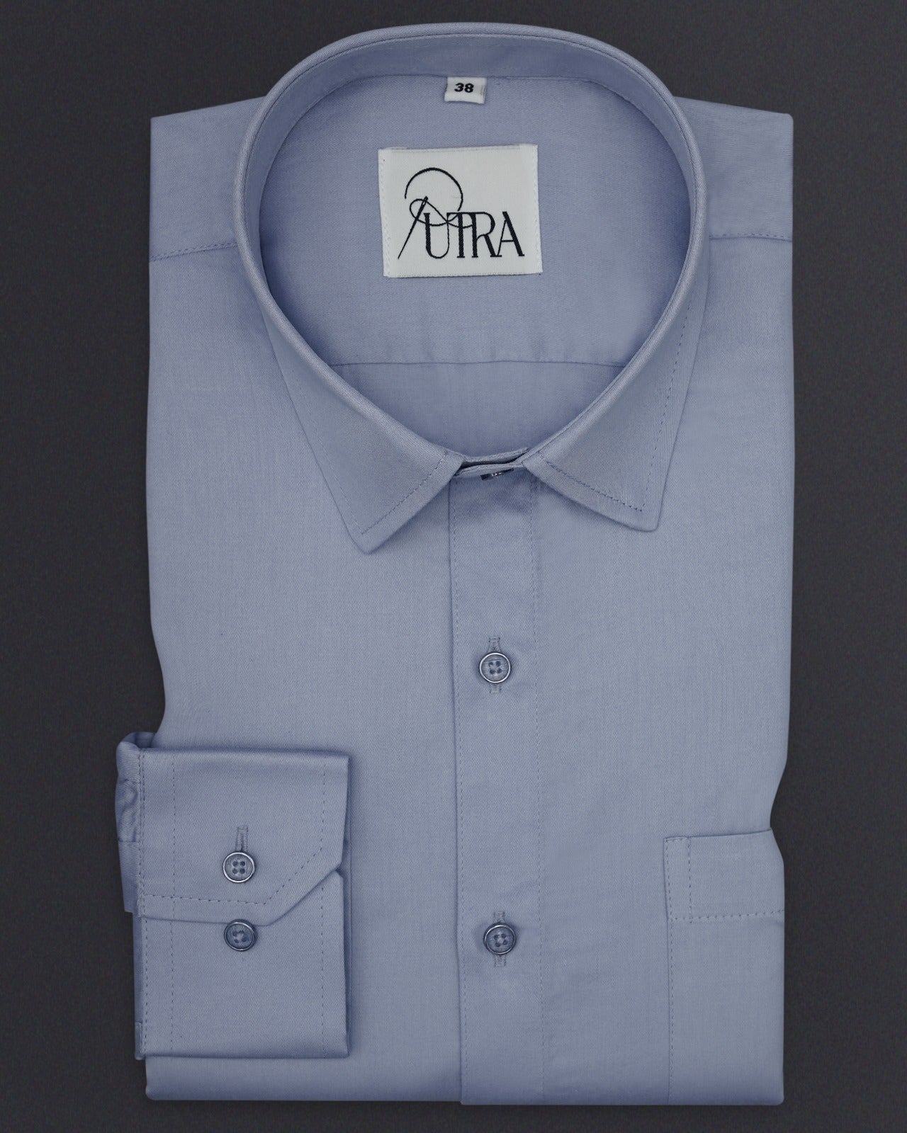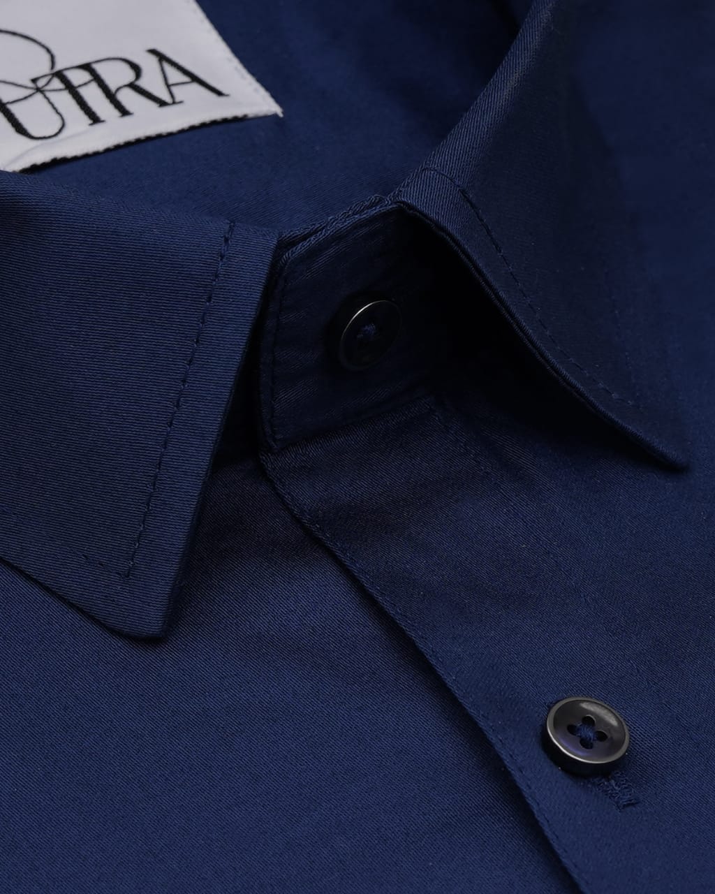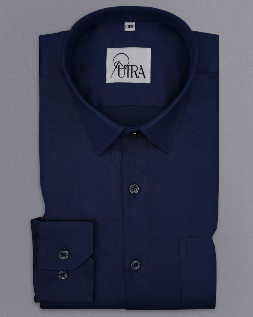 Men's Royal Blue Polyester Cotton Solid Shirt