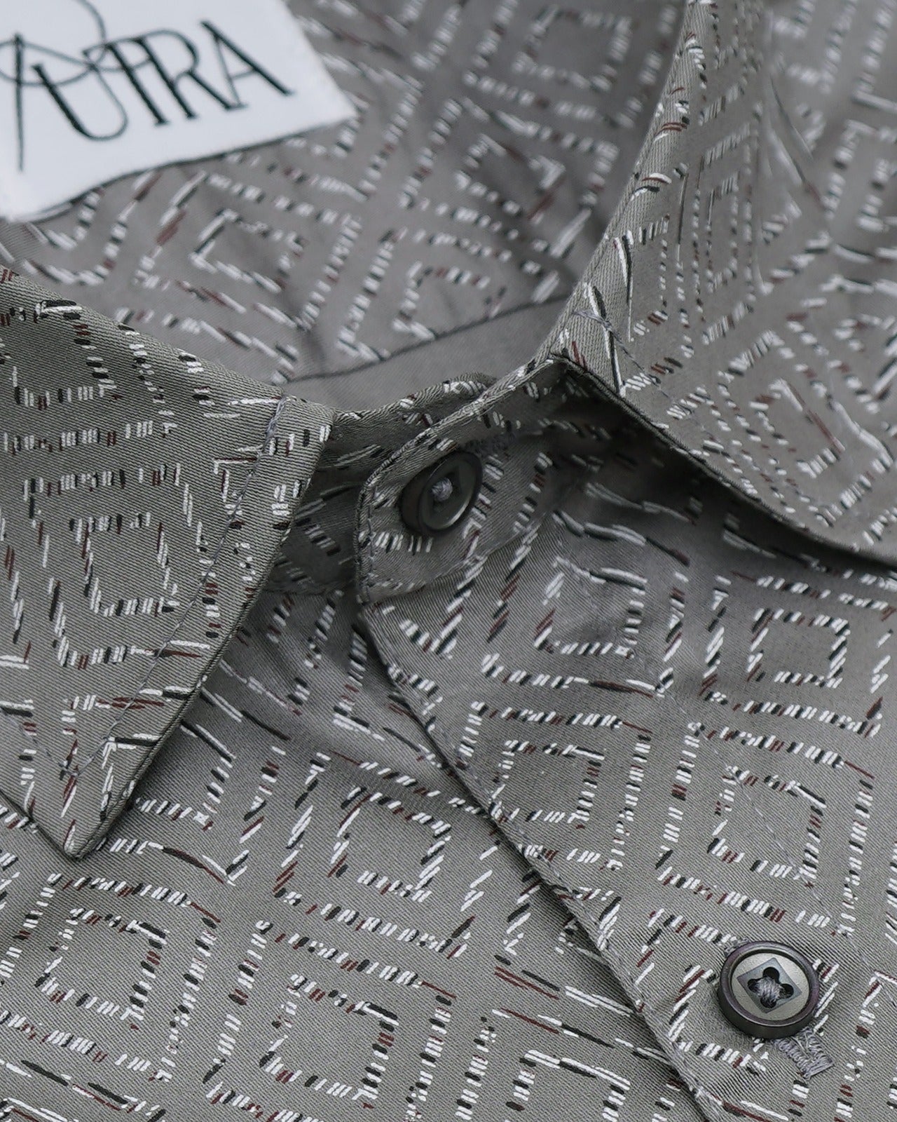 Elegant Grey Cotton Shirt with Geometric Pattern