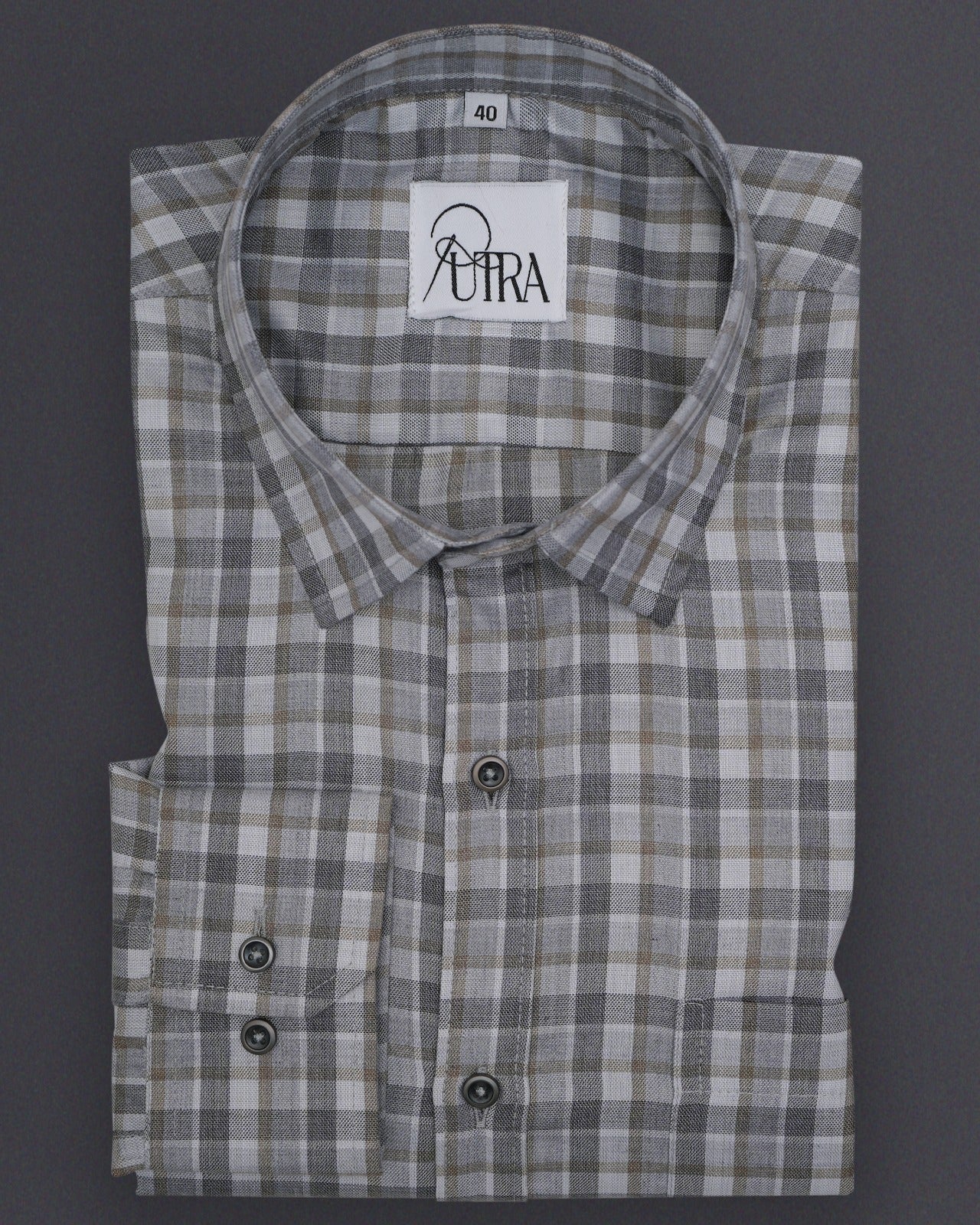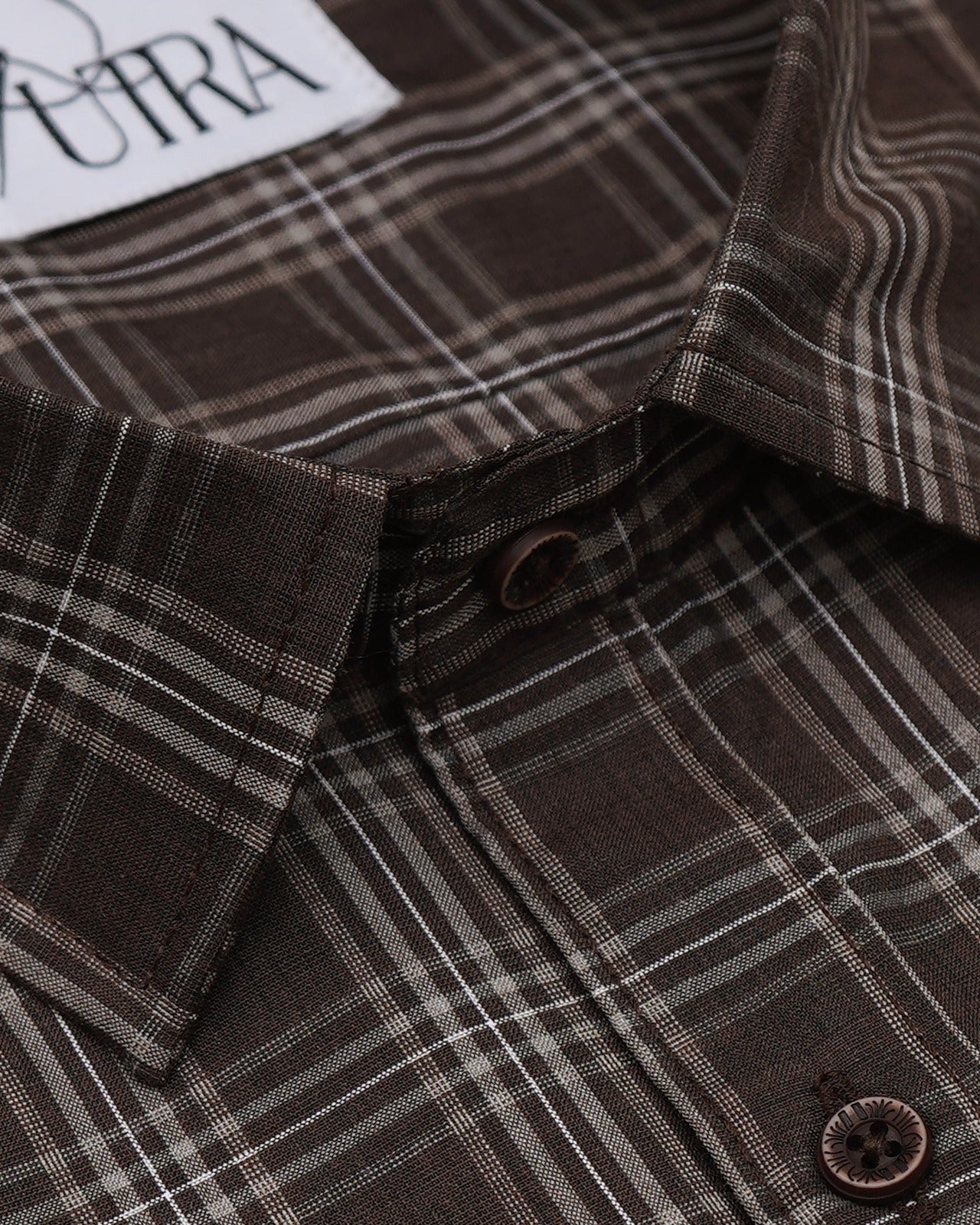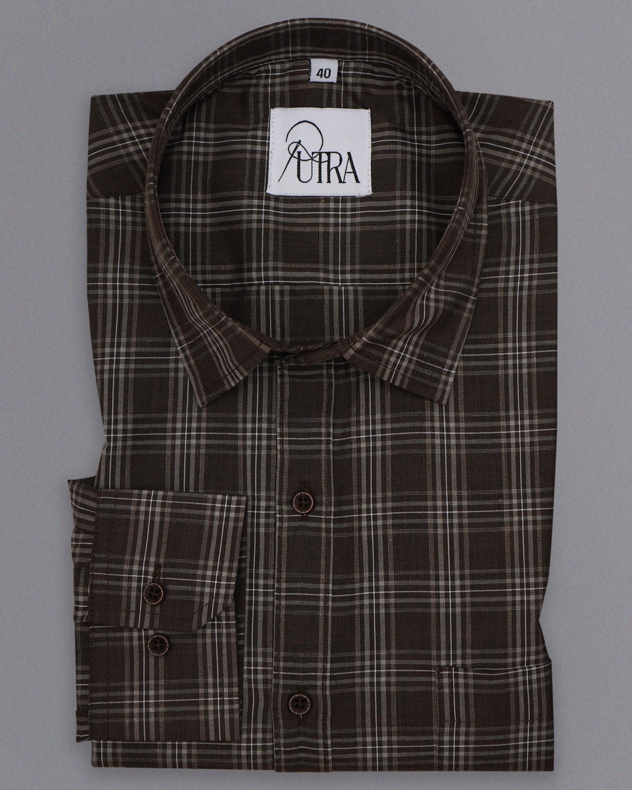 Dark Brown Cotton Shirt with Abstract Geometric Pattern