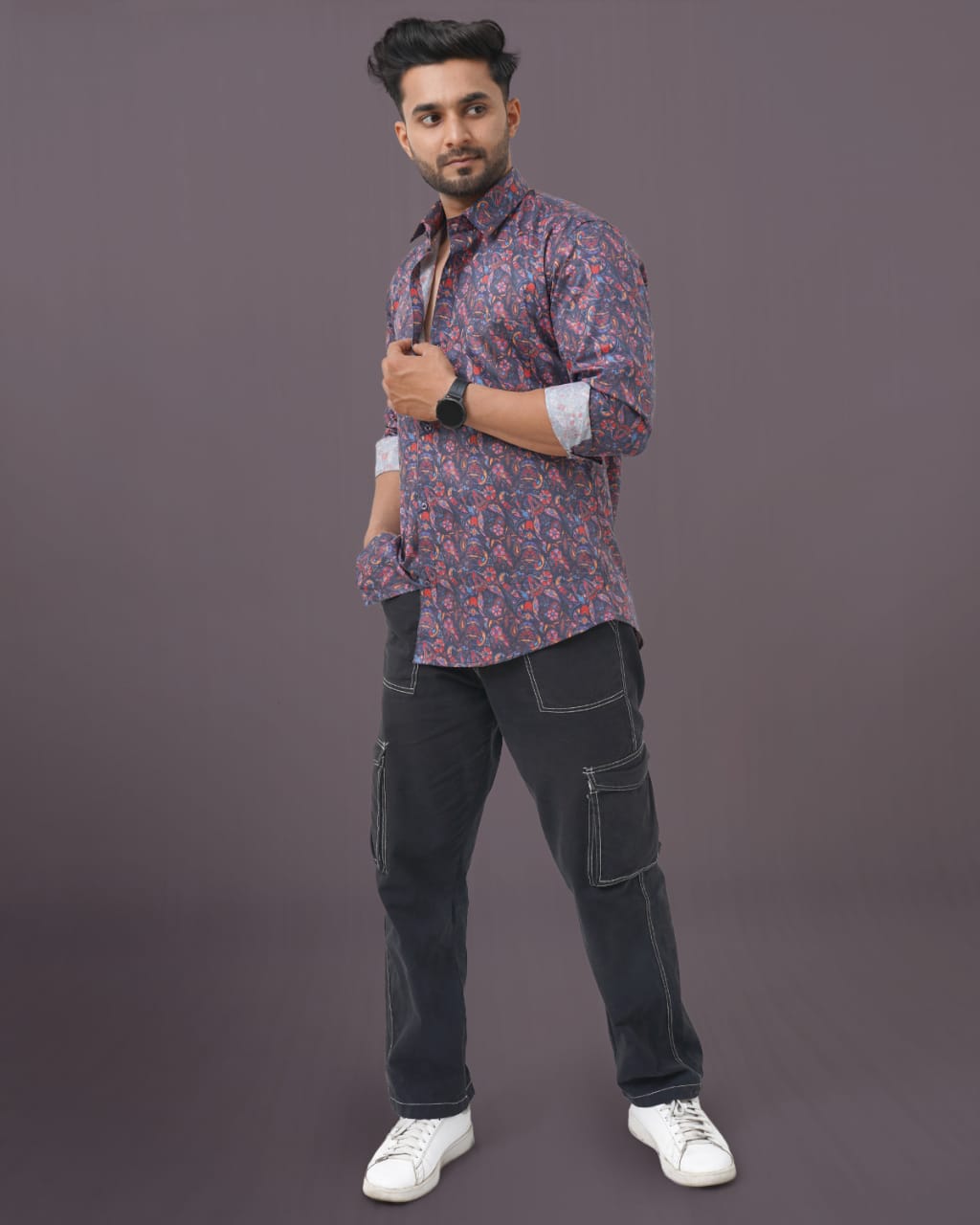 Men Multicoloured Slim Fit Digital Print Full Sleeves Casual Shirt