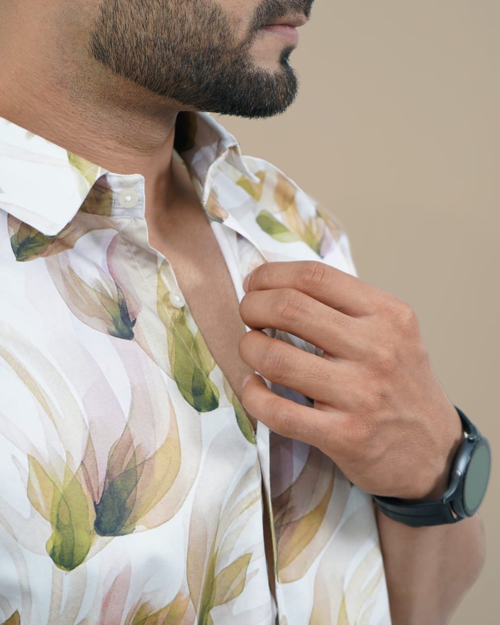 Men White And Green Slim Fit Leaf Digital Print 100% cotton shirt