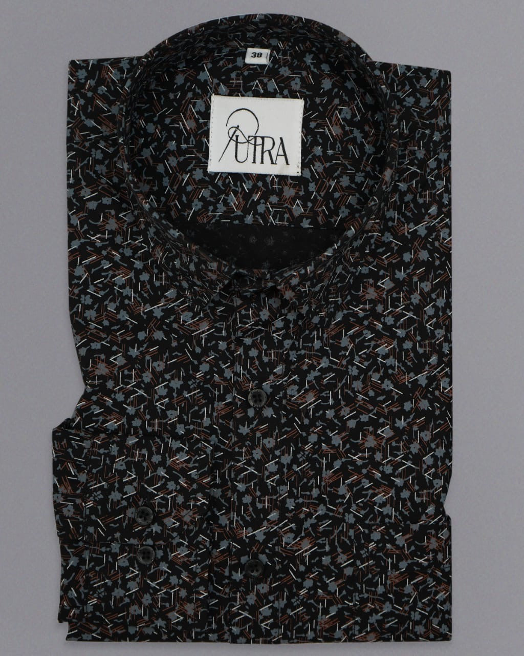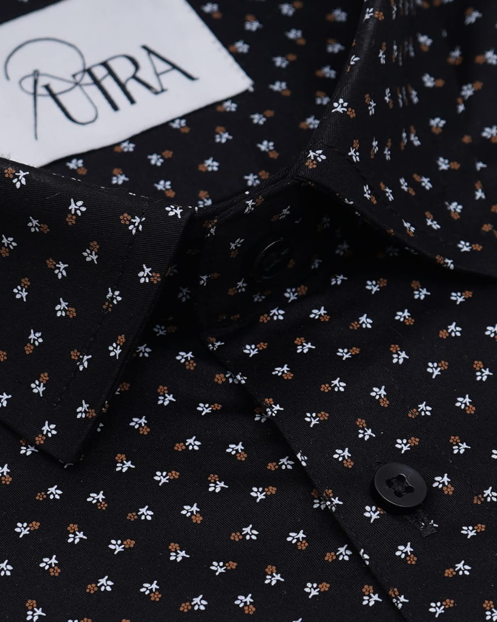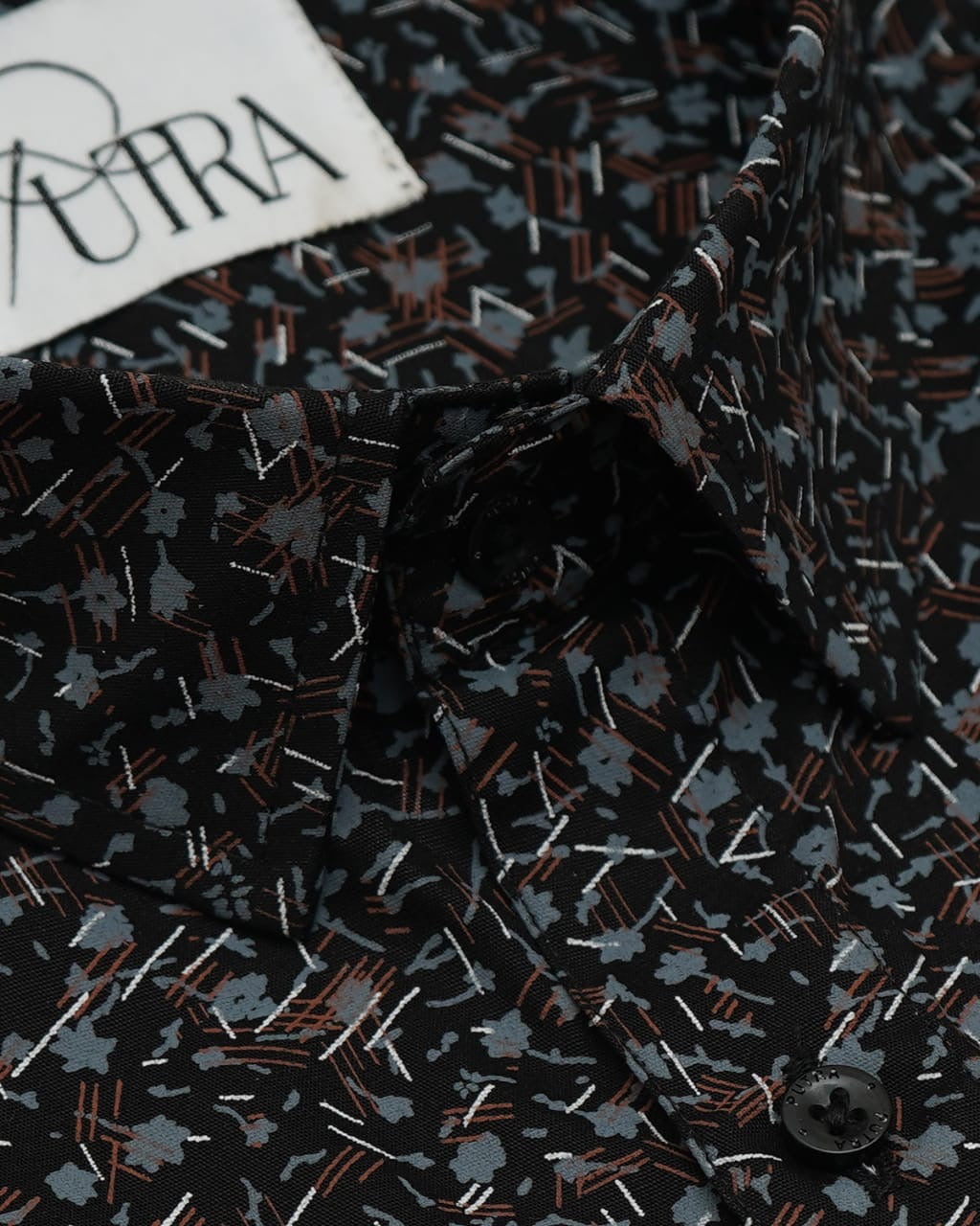 Men’s 100% Cotton Poplin Abstract Printed Shirt - Black & Brown