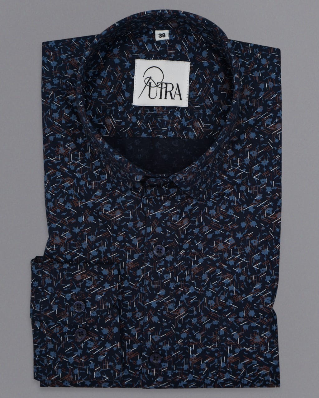 Elegant Navy Blue Printed Cotton Shirt