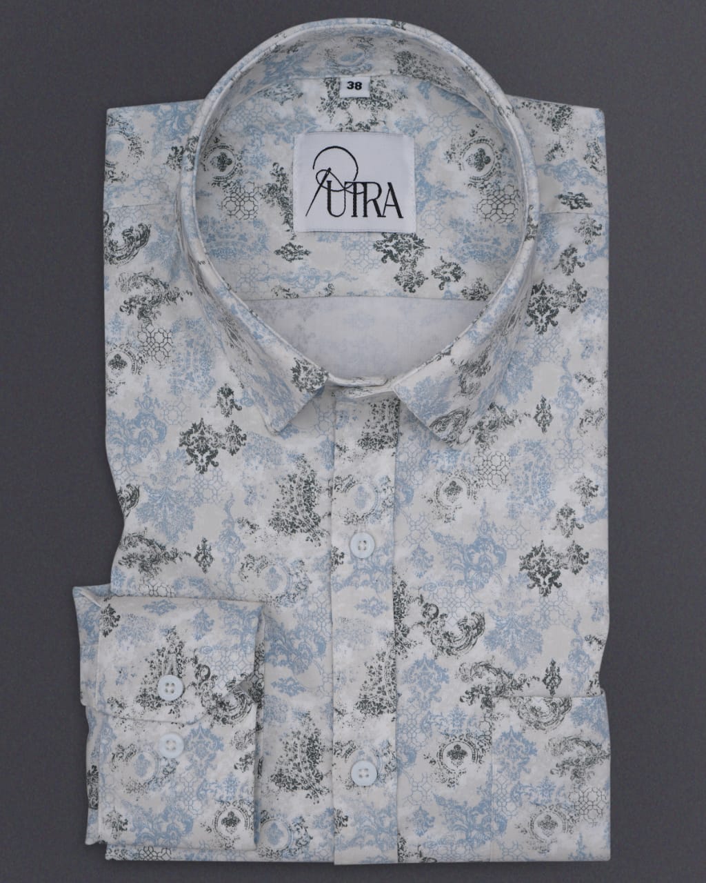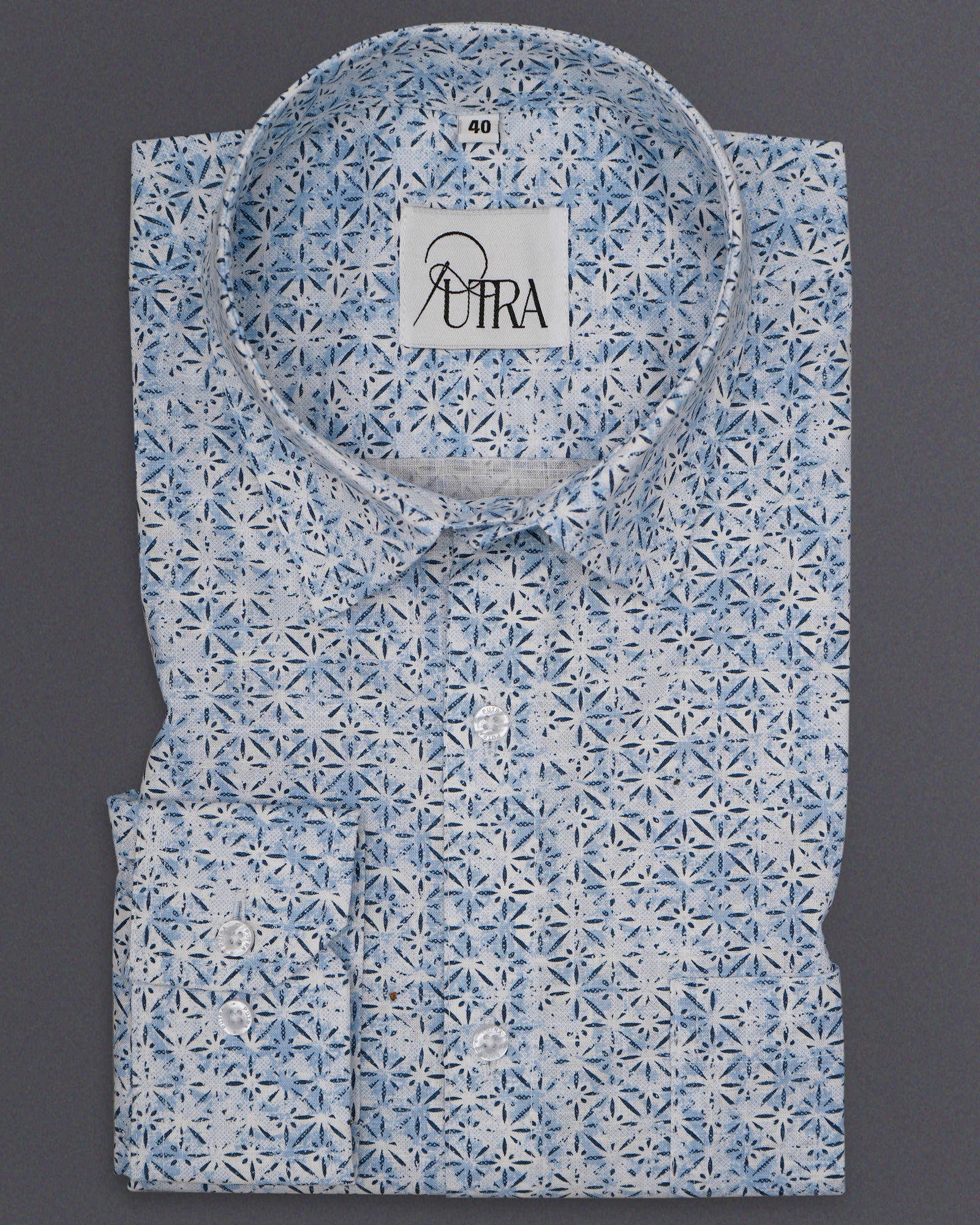 Men's Blue Lycra Shirt with Subtle Micro Print