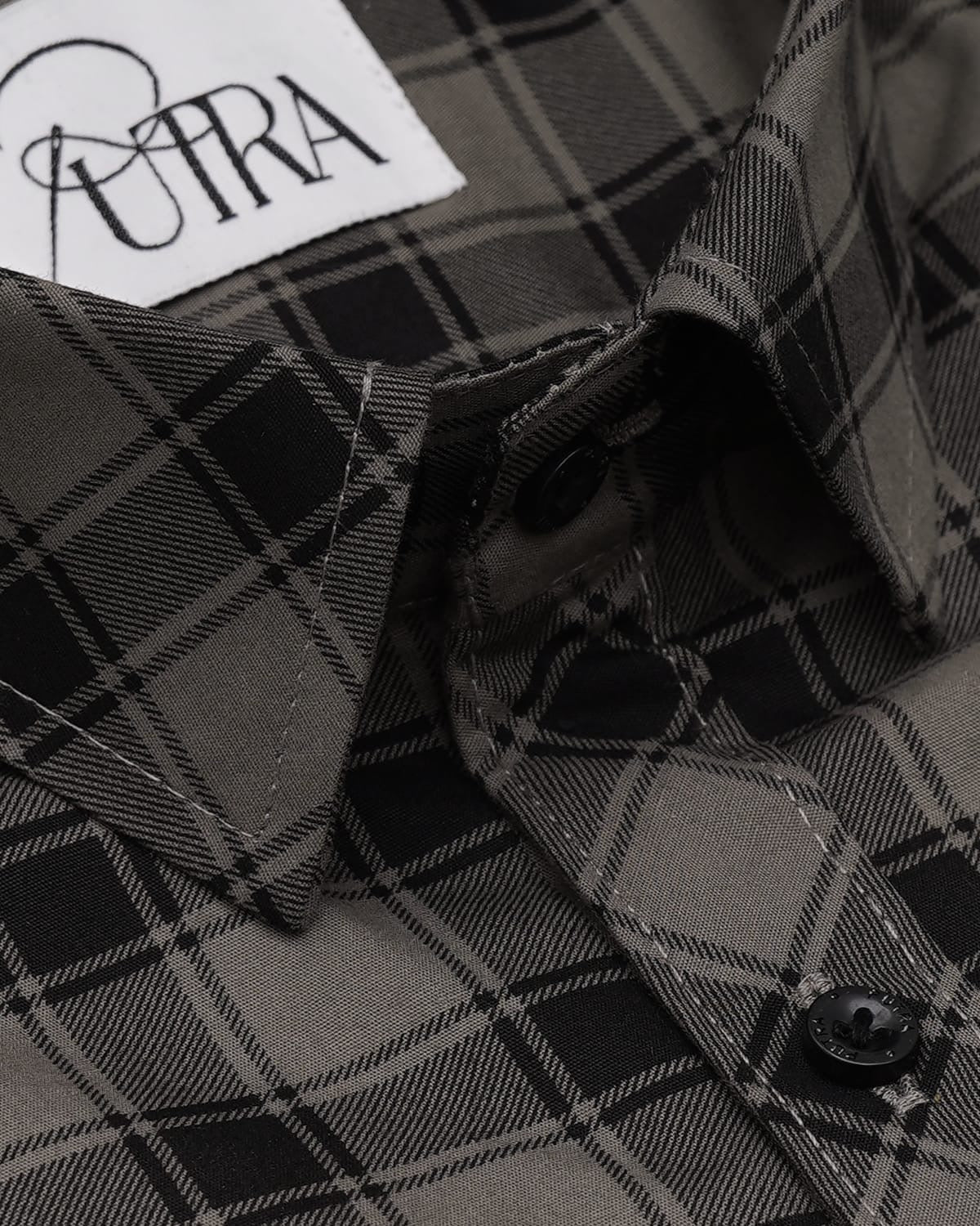 Classic Grey & Black Plaid Cotton Shirt