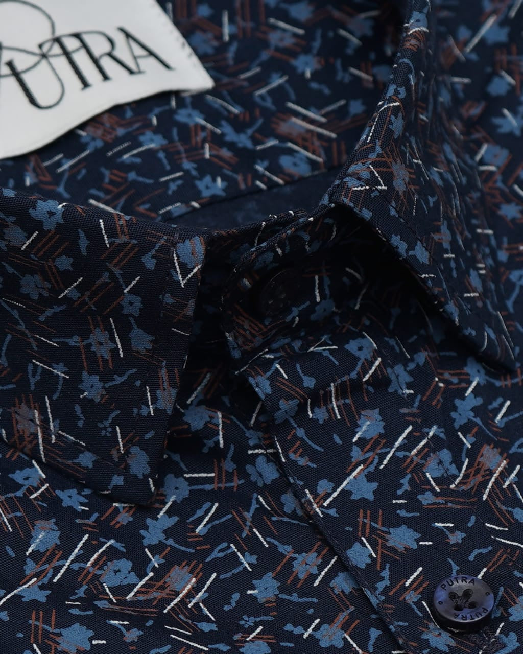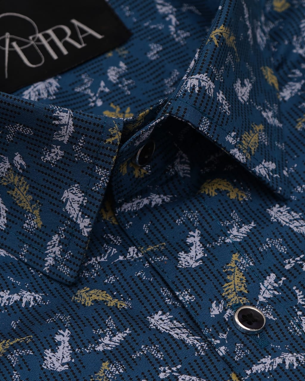 Navy Blue Shirt with Small Leaf Print