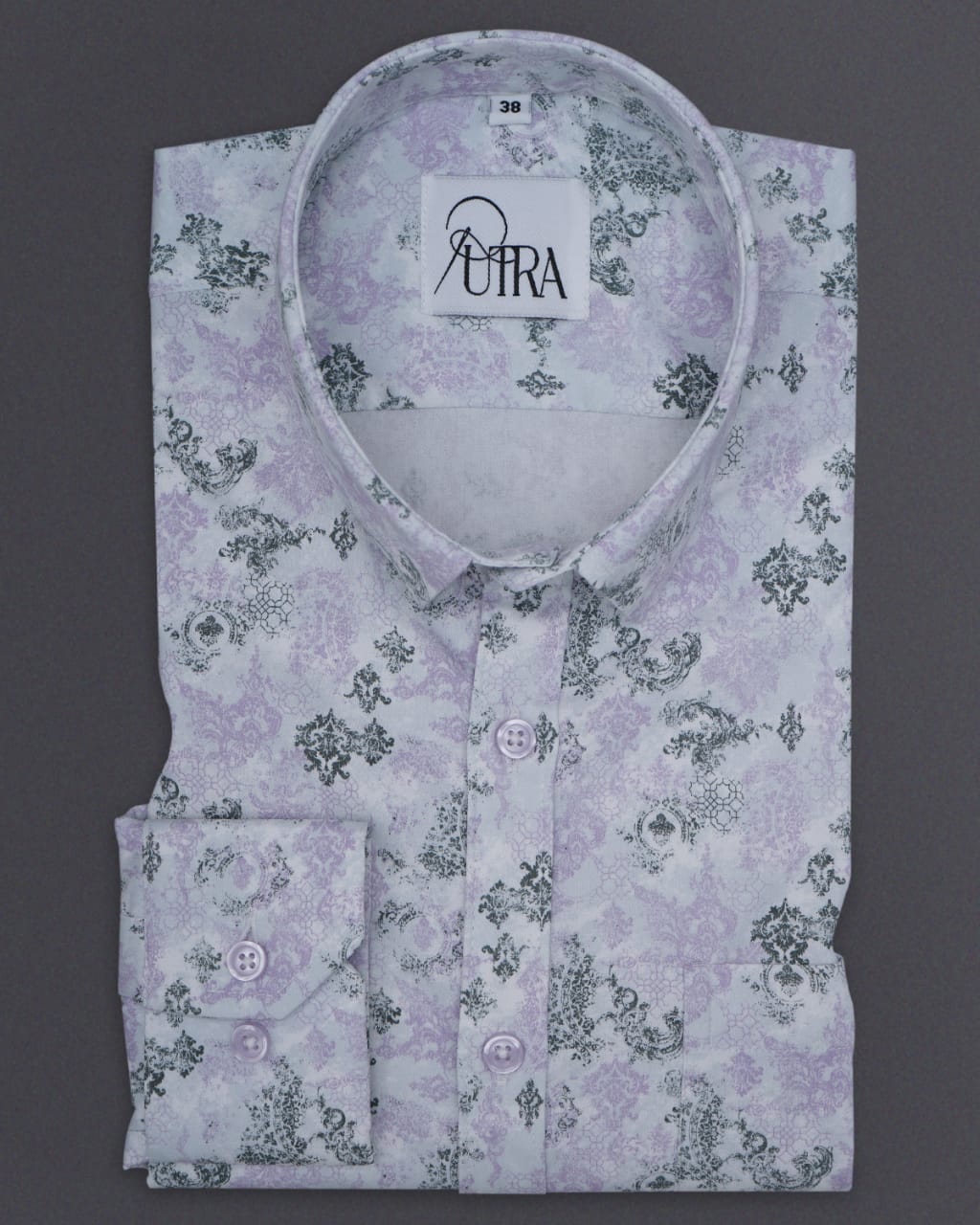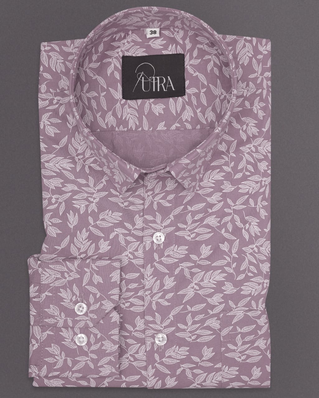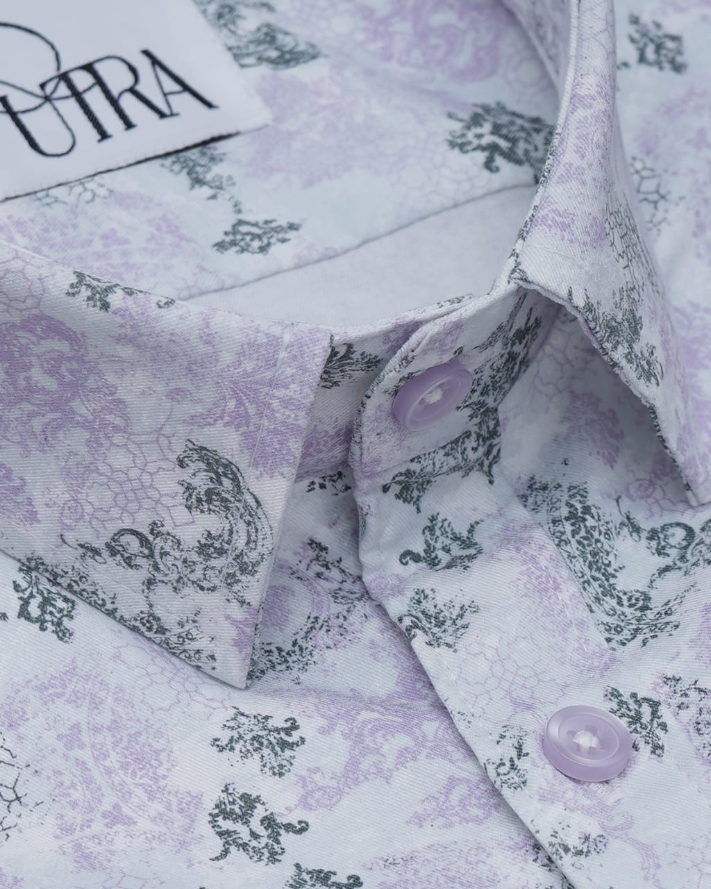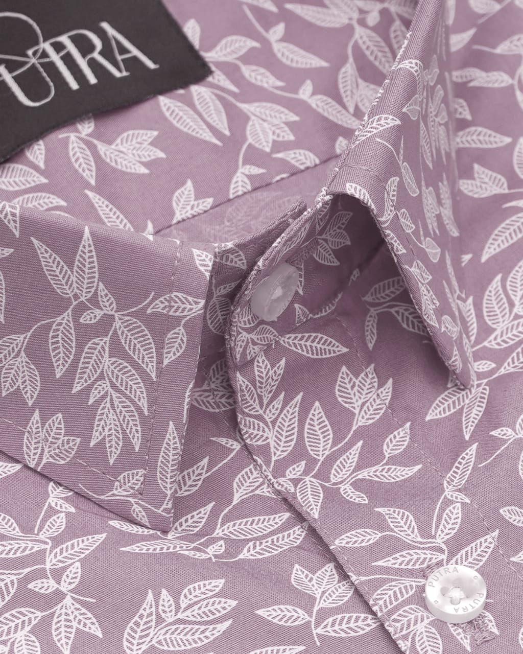 Lavender Leaf-Print Cotton Shirt with White Highlights