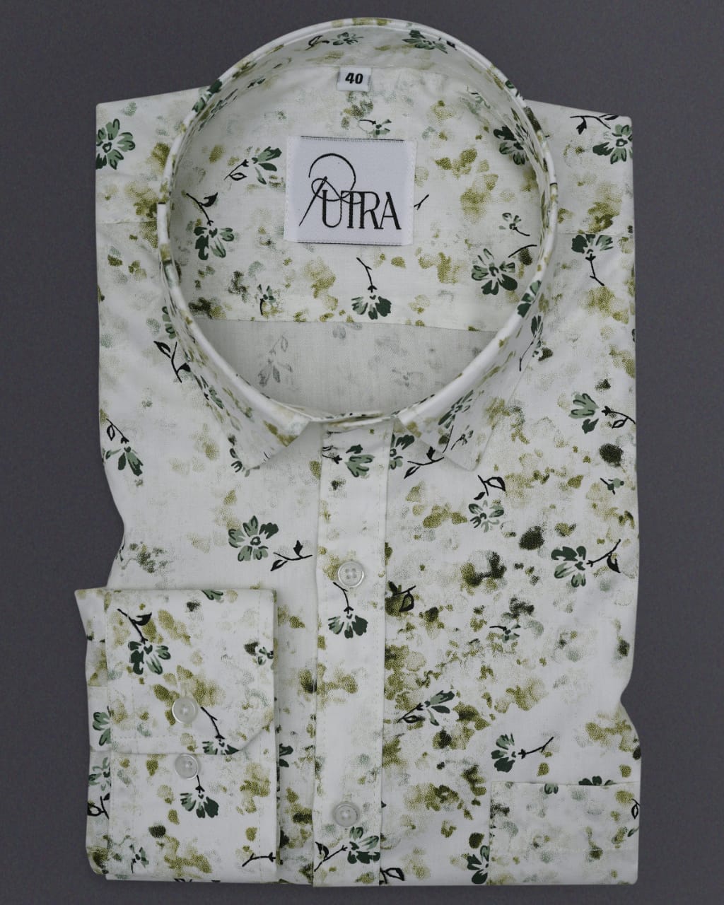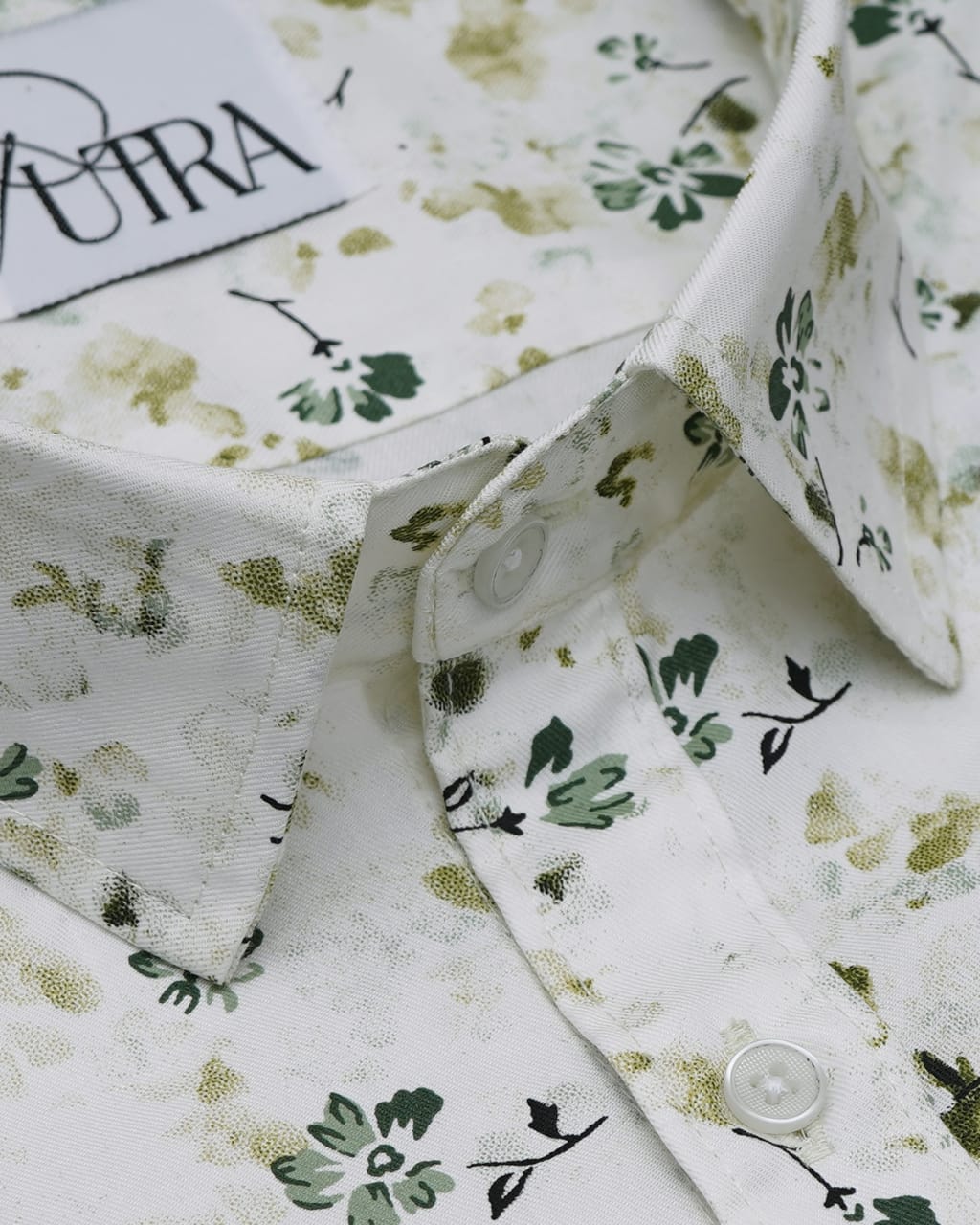 Floral Ivory Cotton Shirt with Green and Gold Accents