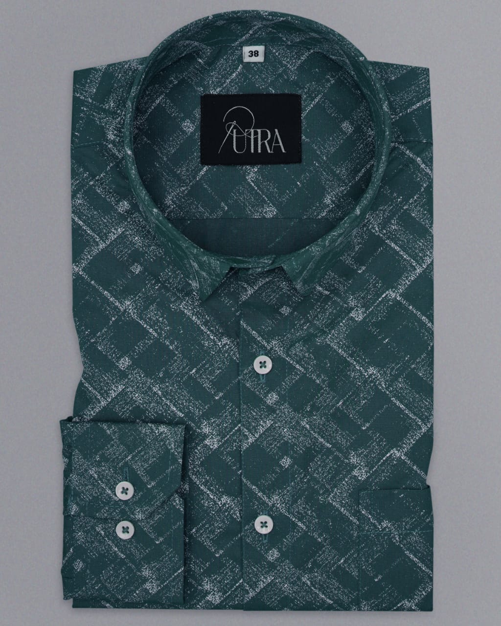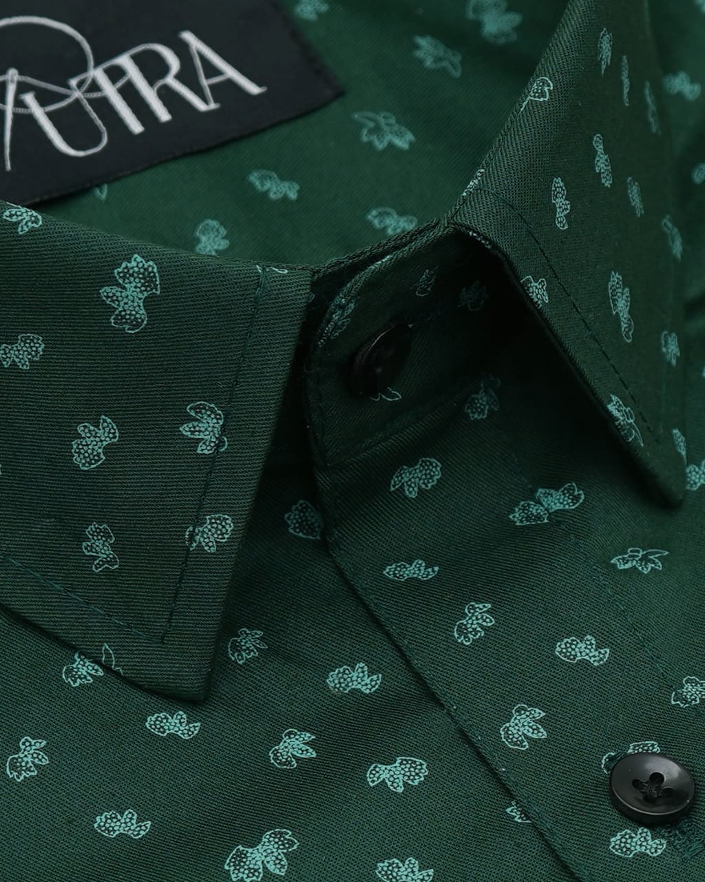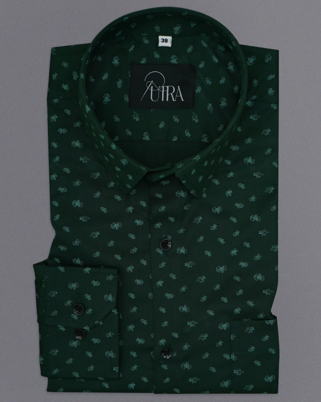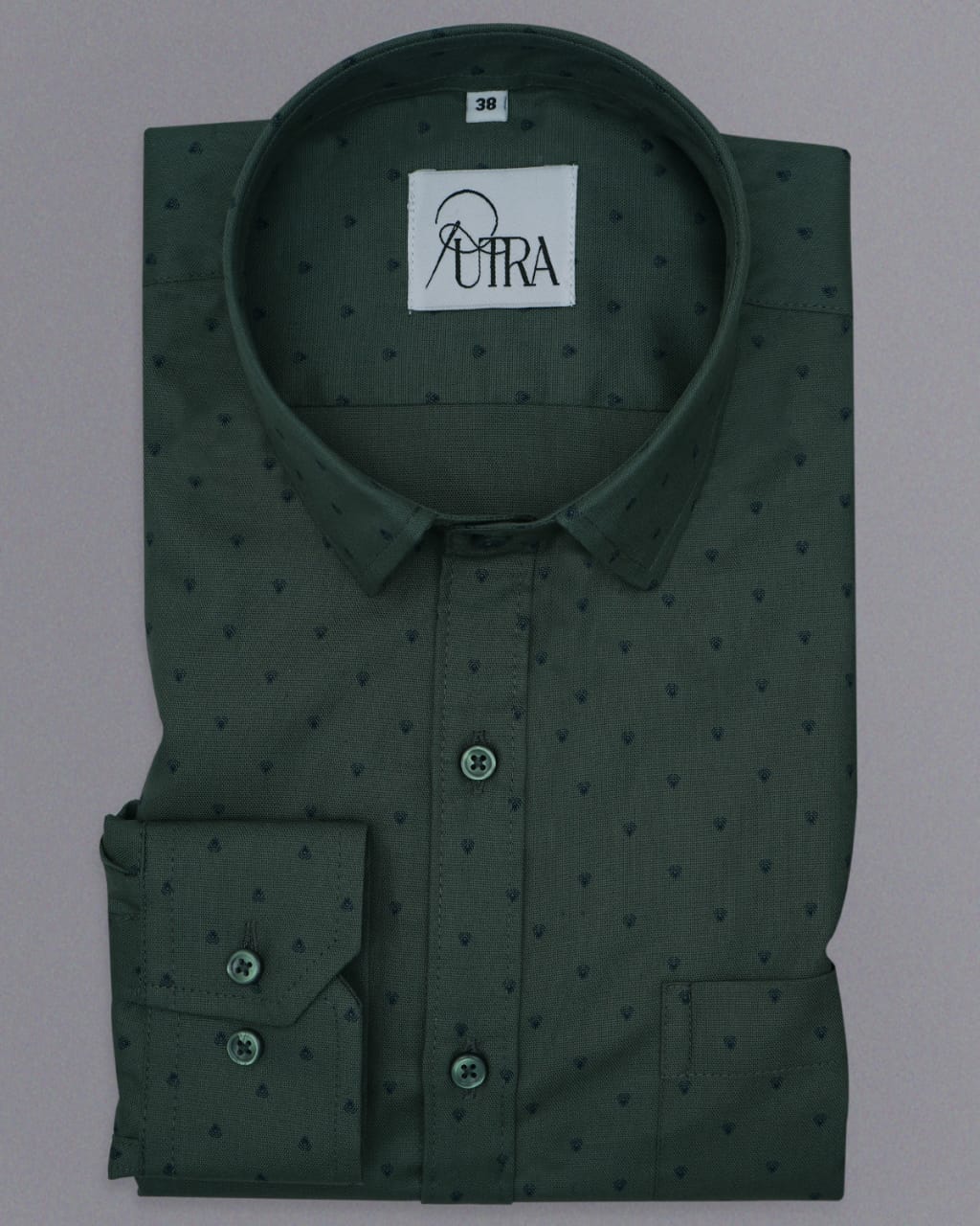 Premium Forest Green Cotton Shirt with Micro Dot Pattern