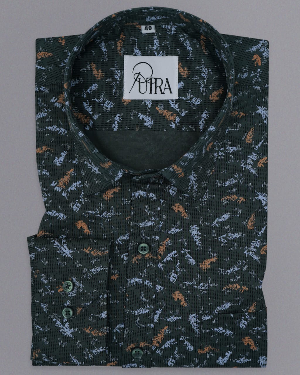 Forest Green Printed Cotton Shirt