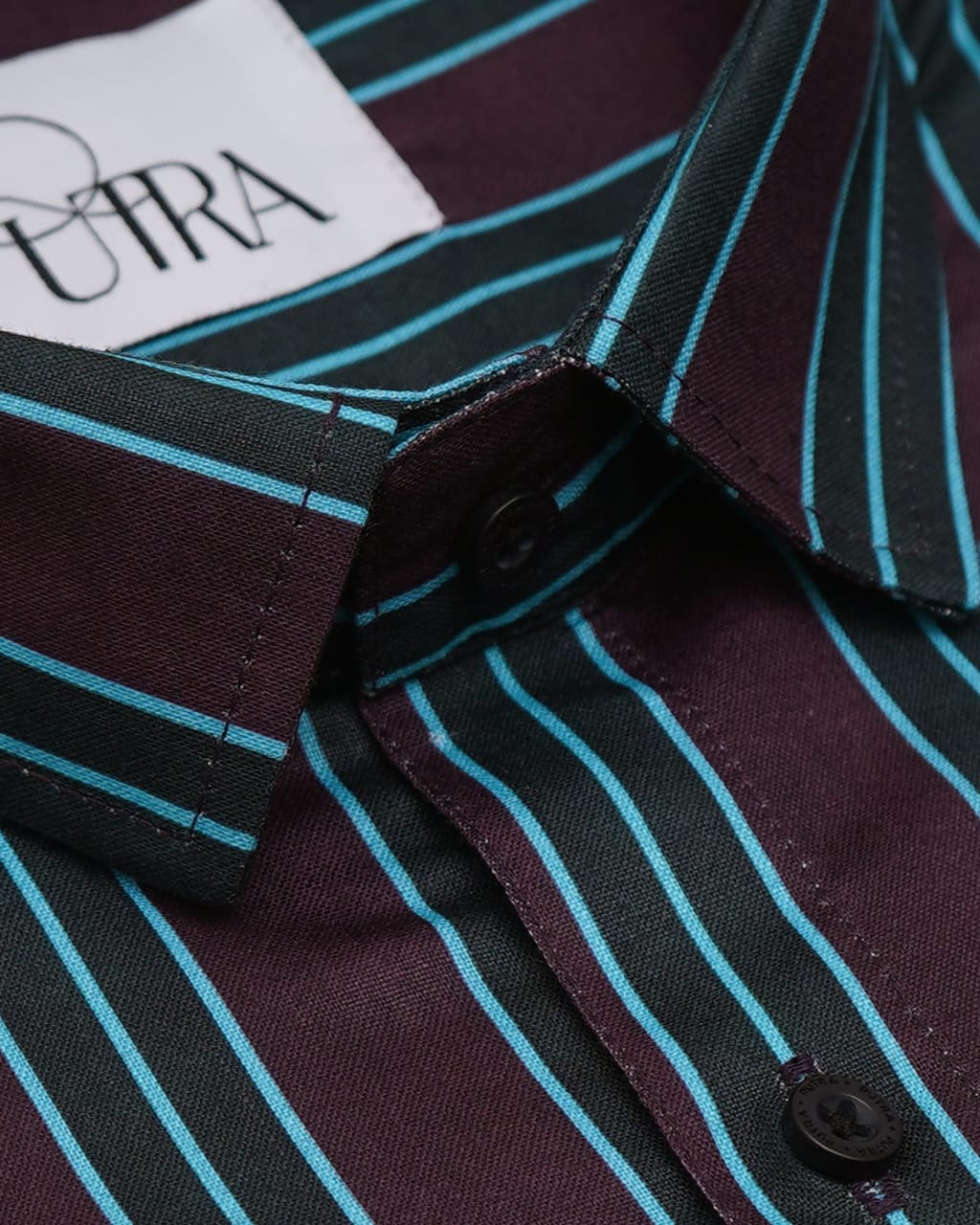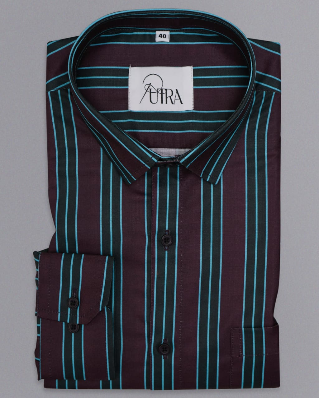 Men Maroon and Teal Striped Cotton Shirt