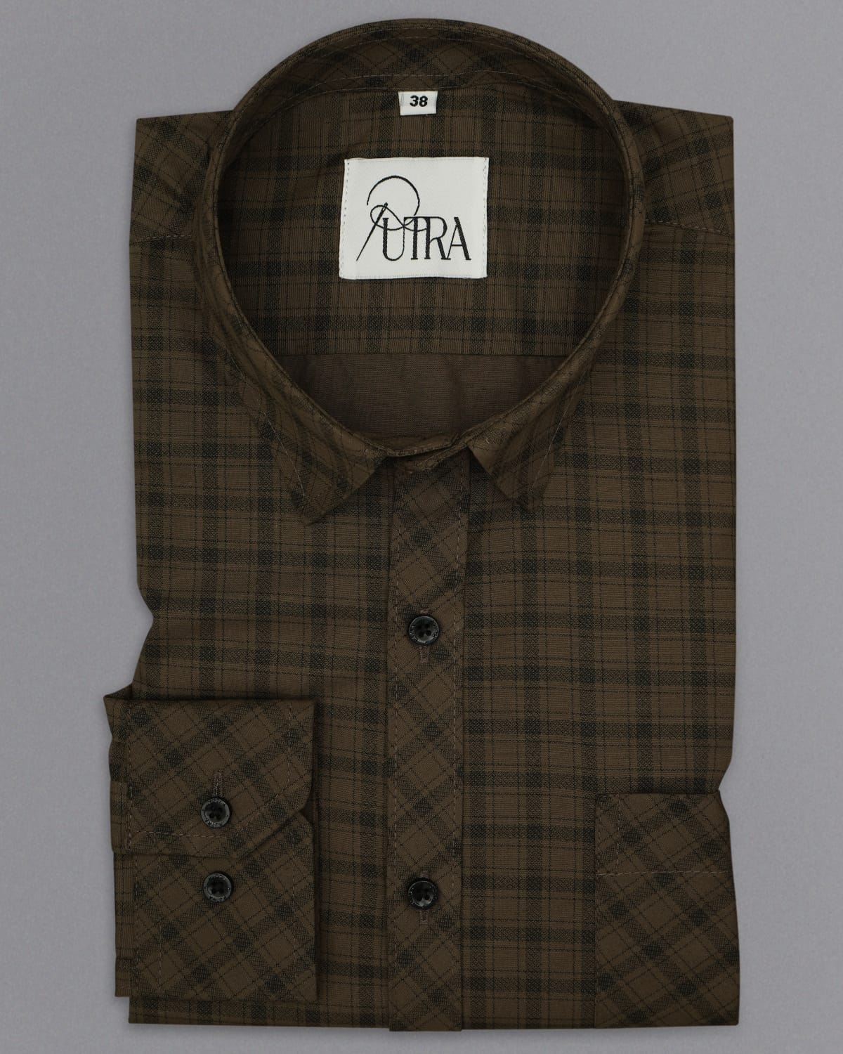 Men Olive Brown Checked Cotton Shirt