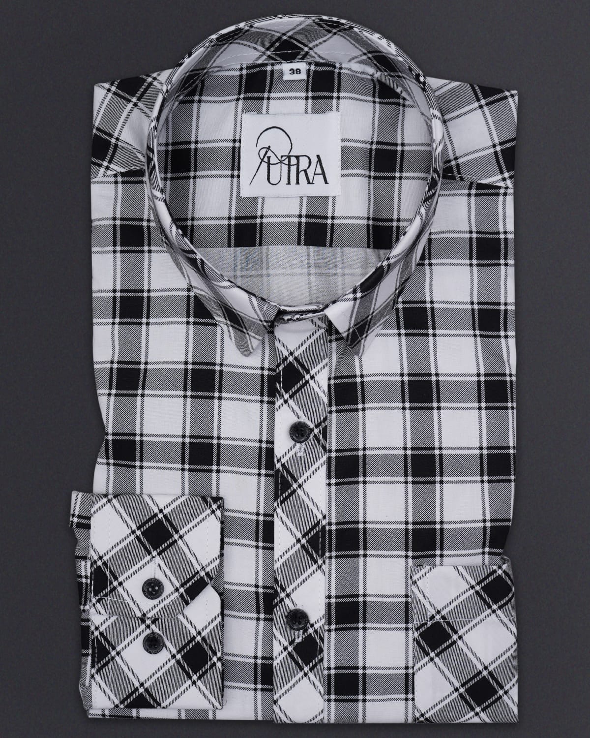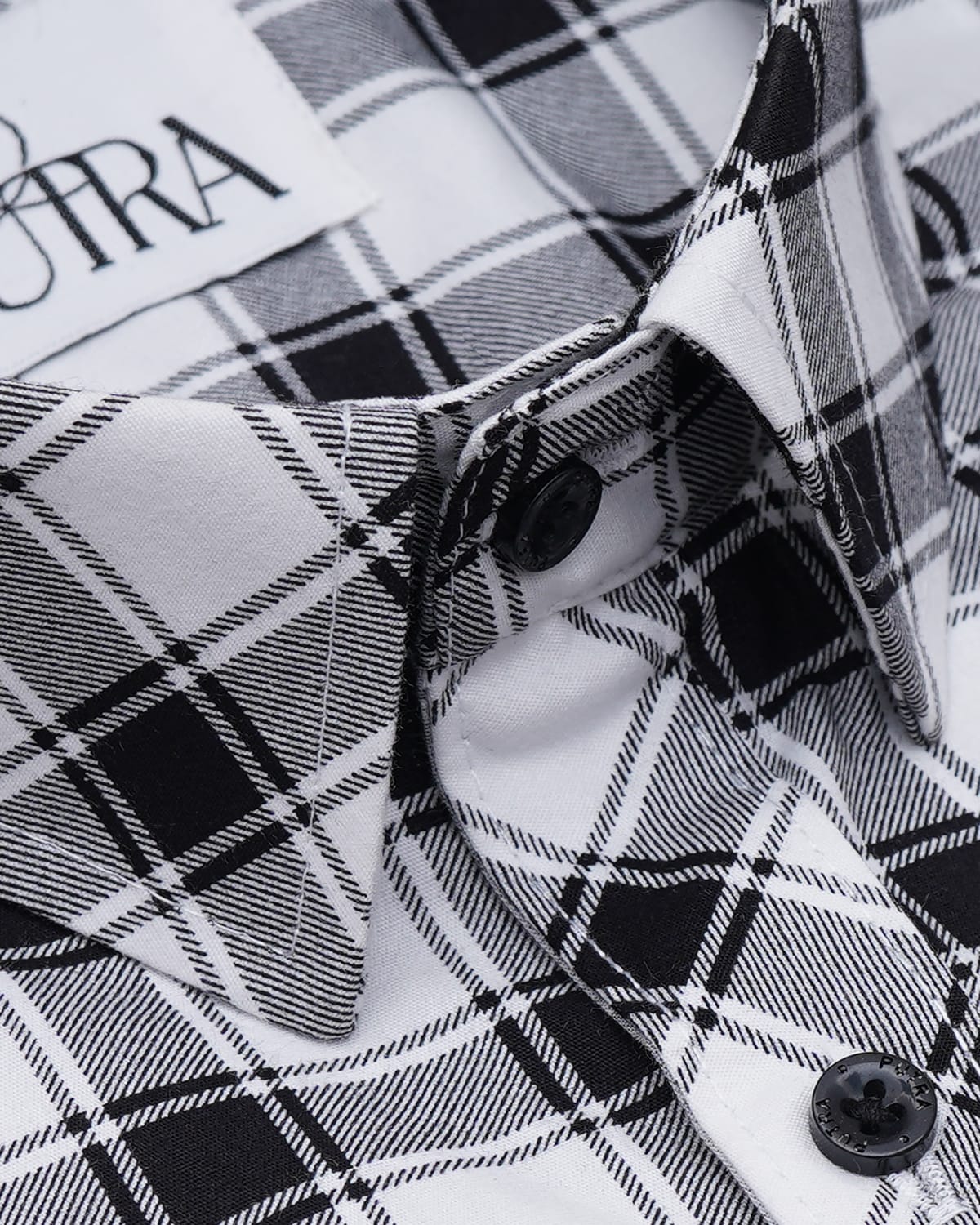 Men white and black box check cotton shirt
