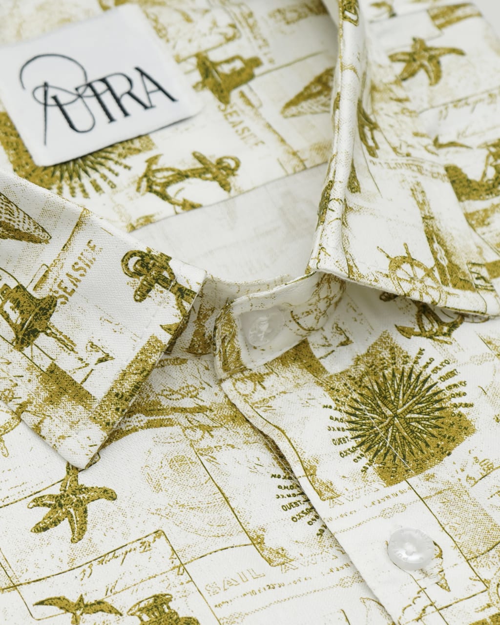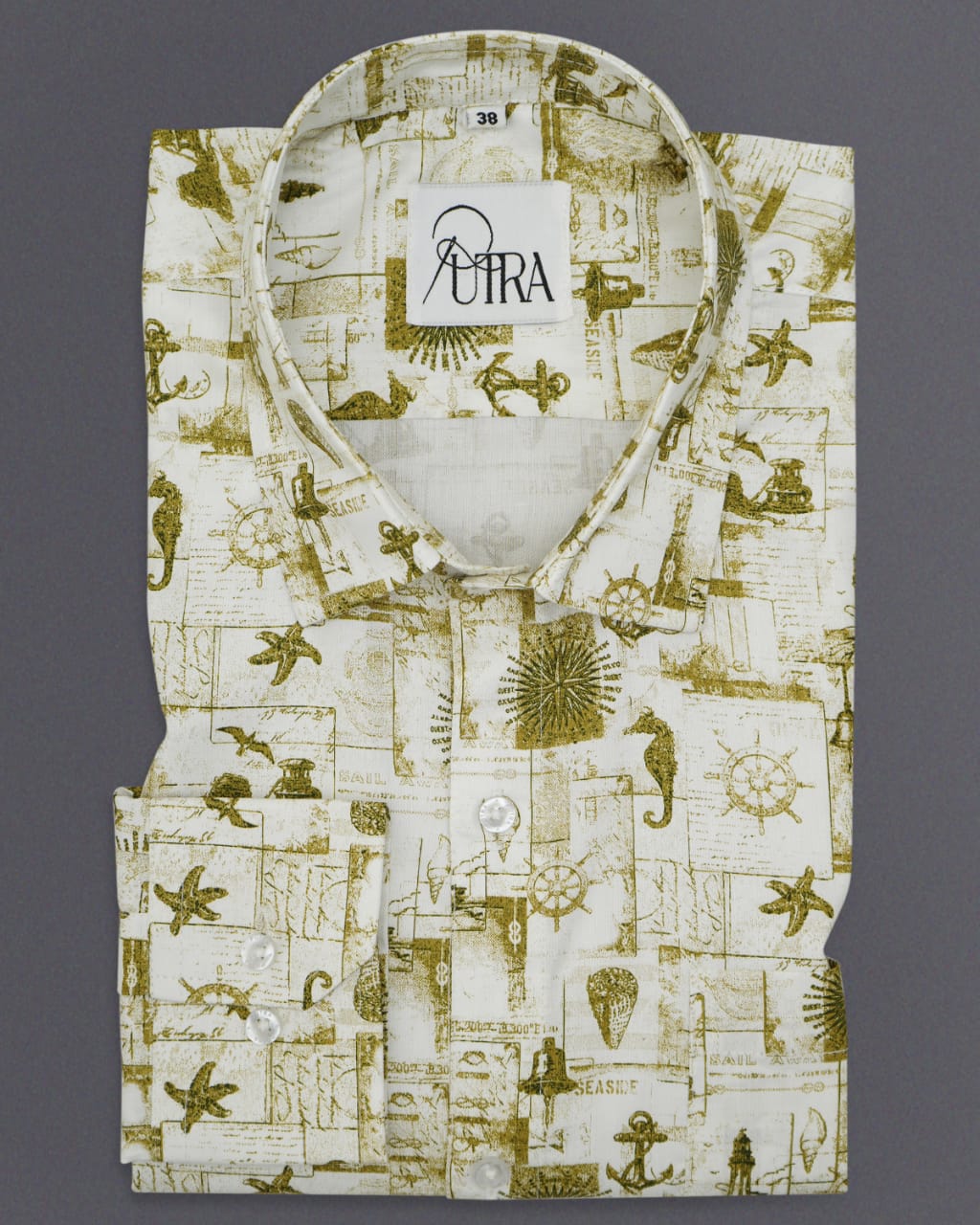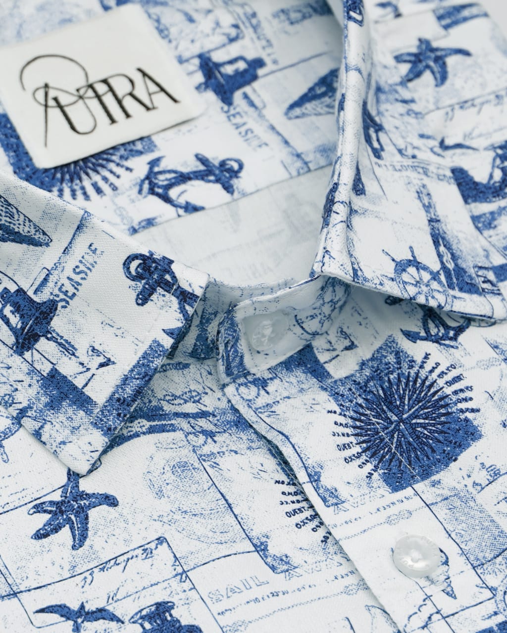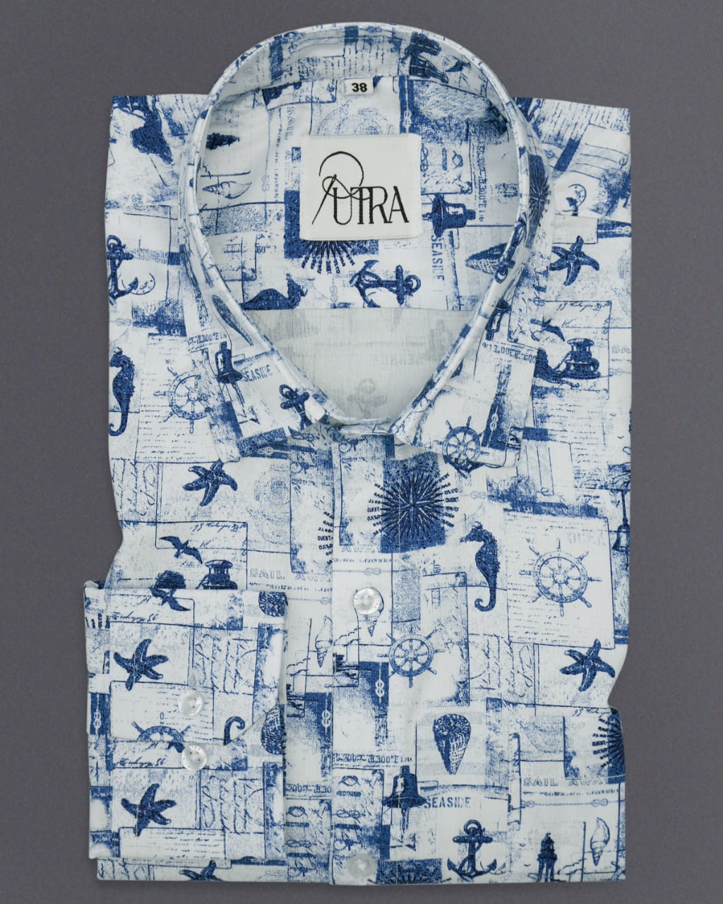 Mens Elegant Nautical-Themed Printed Cotton Shirt