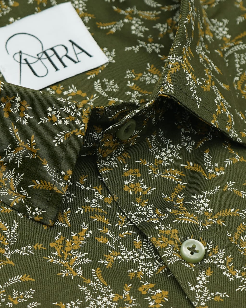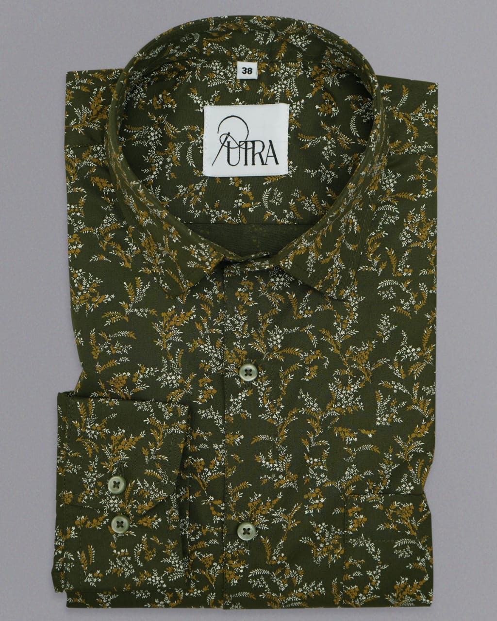 Olive Green Shirt with Micro Prints