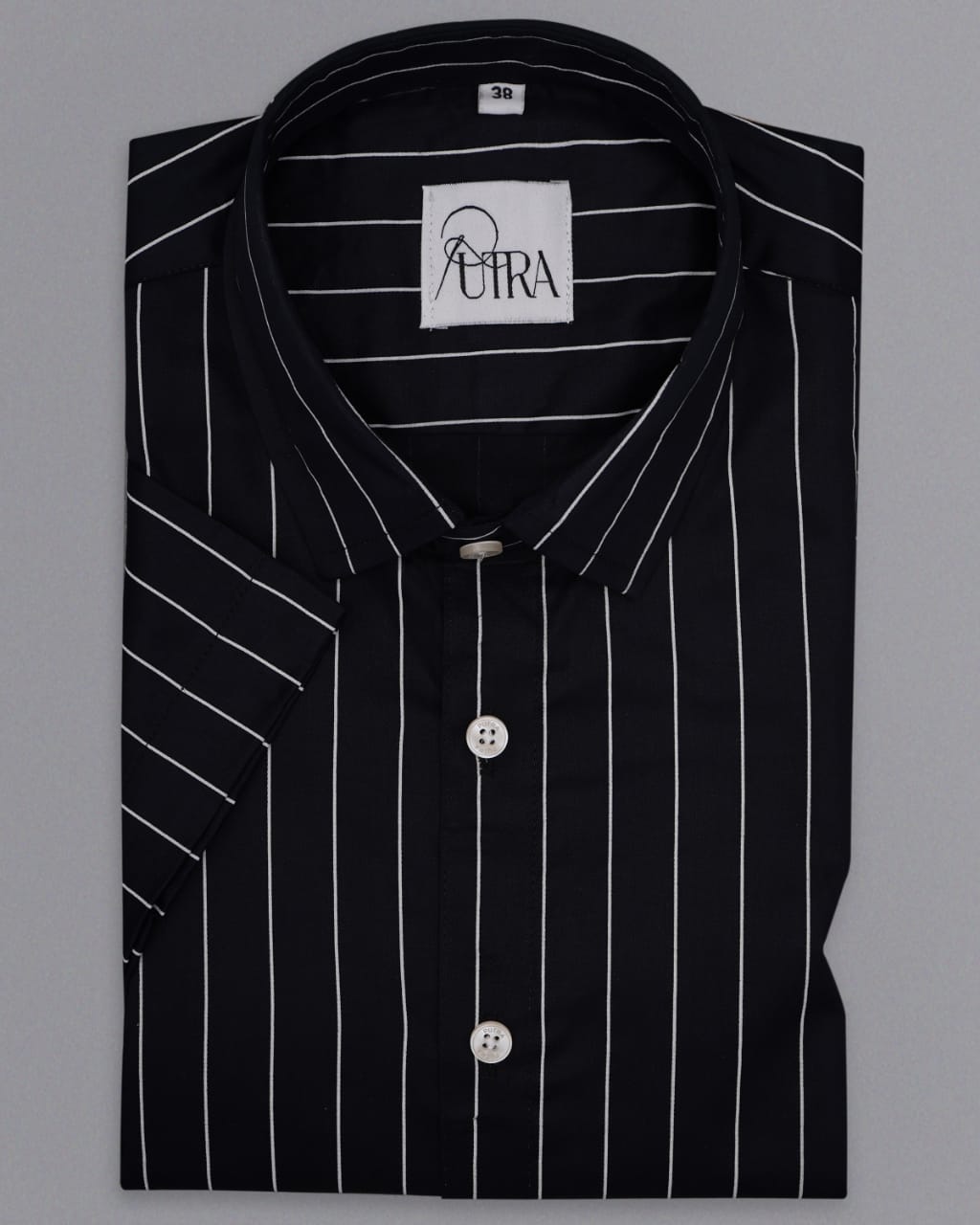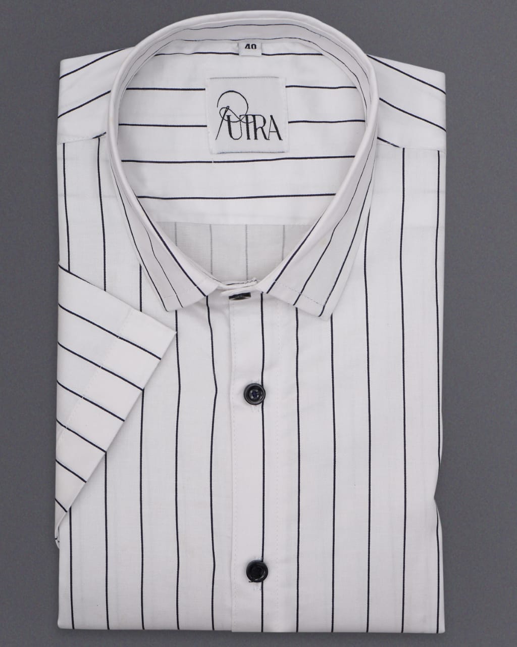 White Shirt Half-Sleeve with Black Stripes Shirt