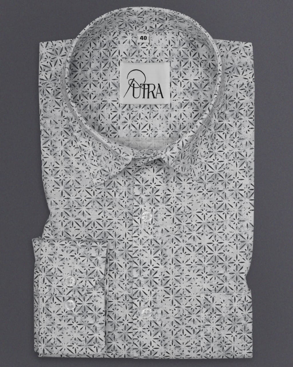 Men's White and Grey Geometric Print Slub Shirt