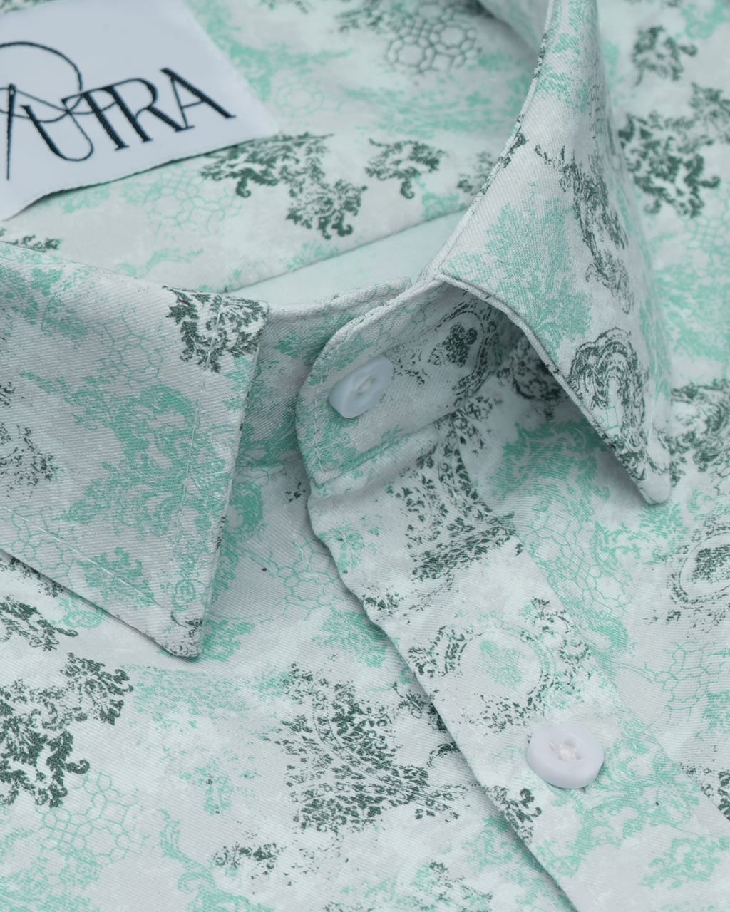 Men's Mint Green Lycra Shirt with Subtle Micro Print