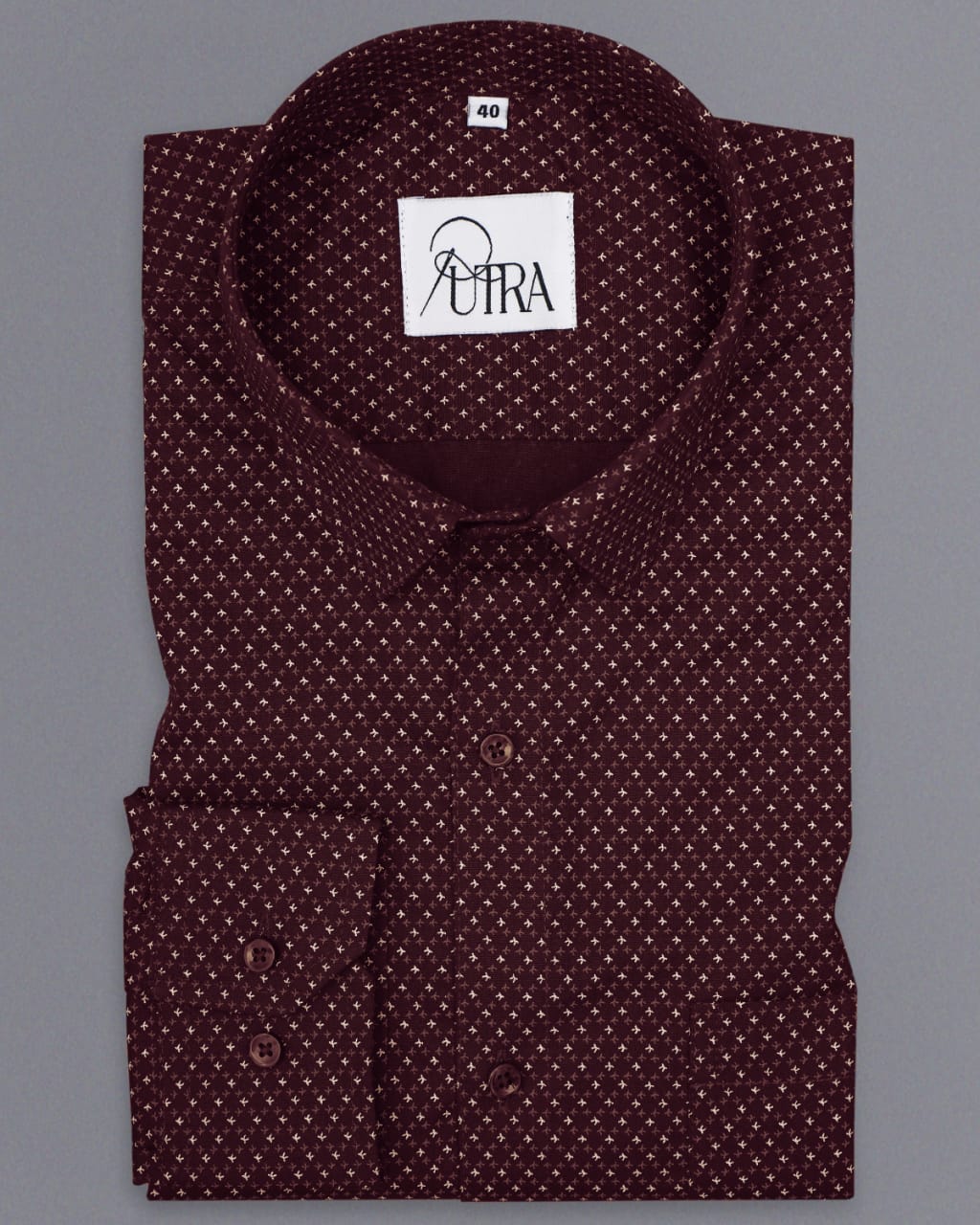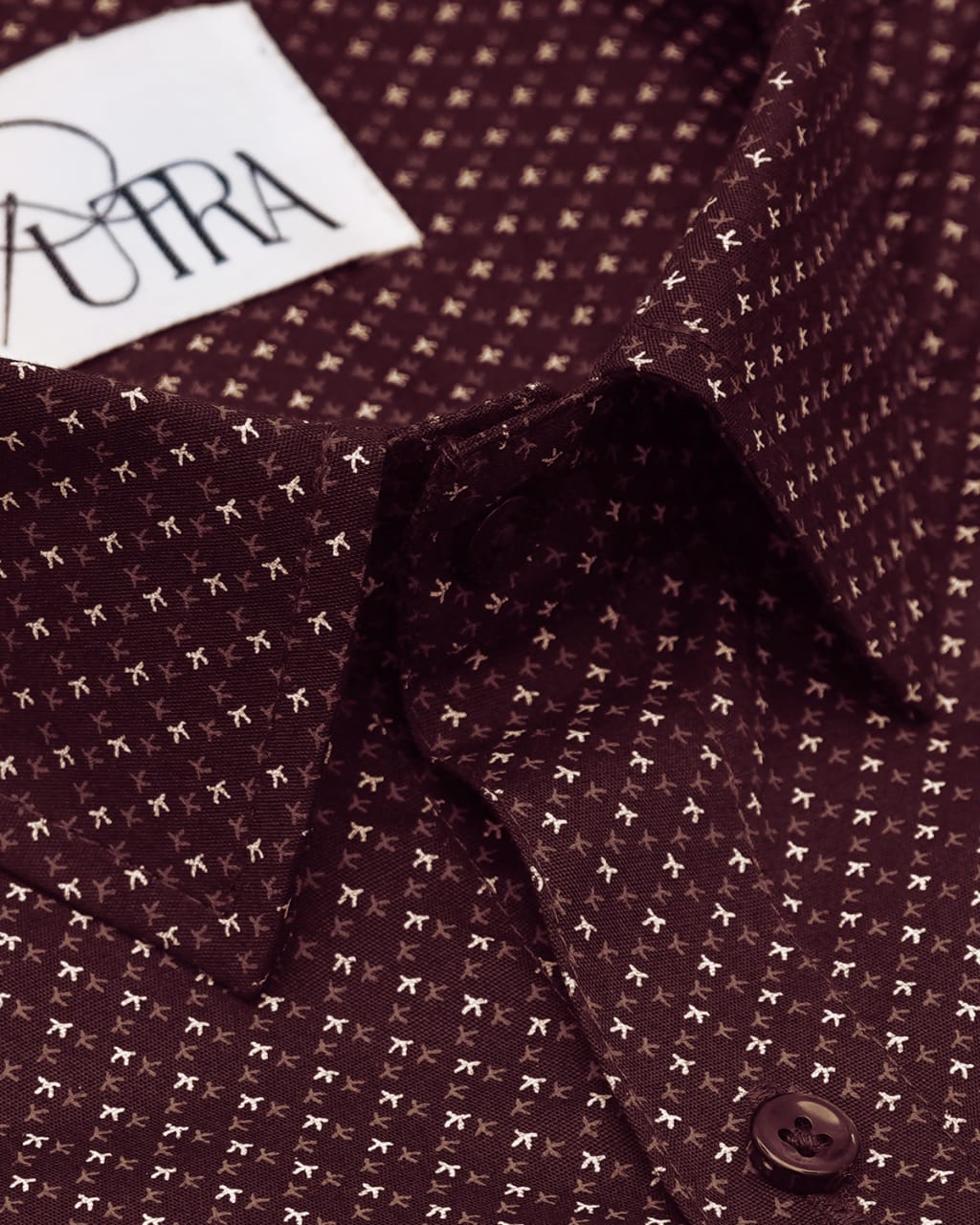 Men's Maroon Cotton Shirt with Subtle Micro Print