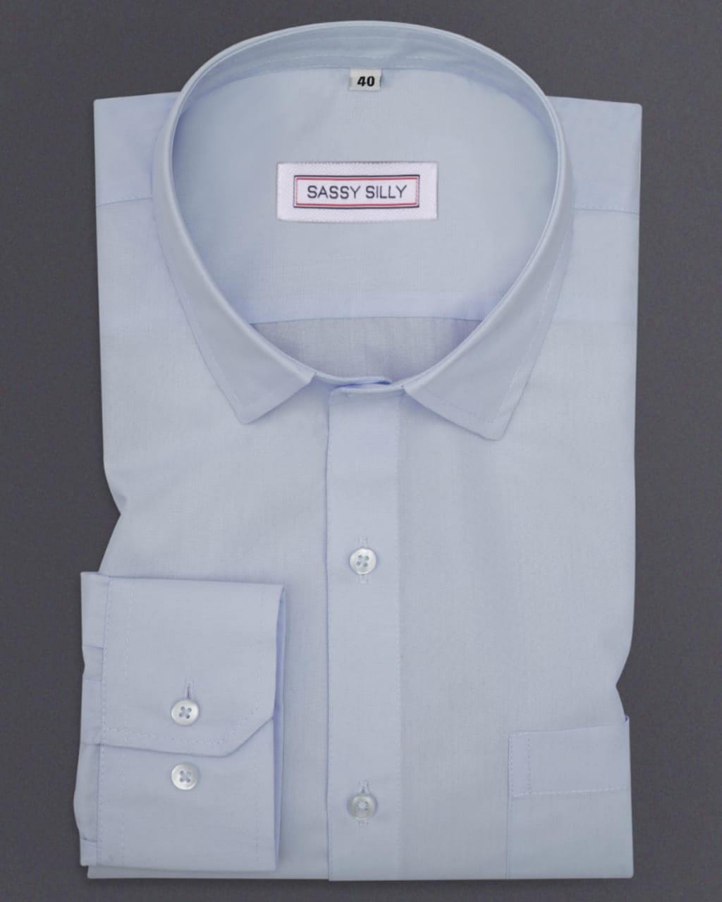 Men Sky Blue Polyester cotton Solid Shirt