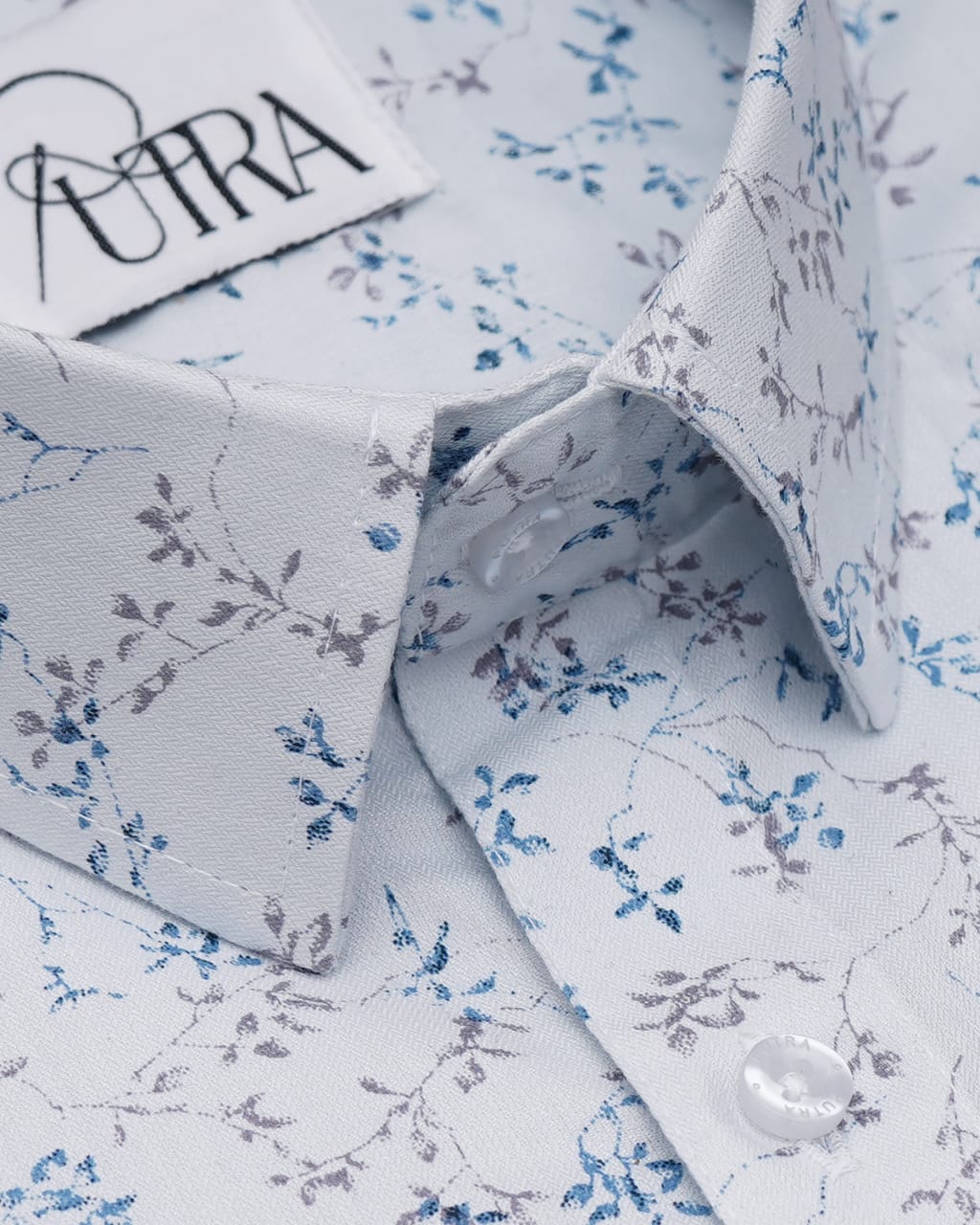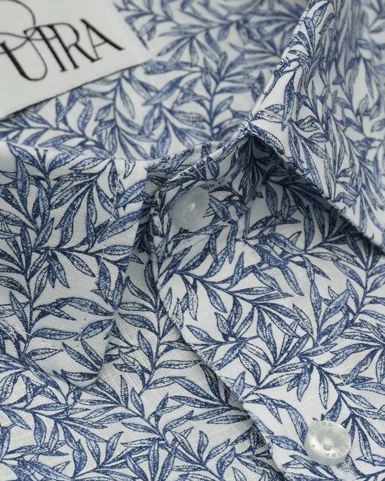 Lavender Leaf-Print Cotton Shirt with White Highlights