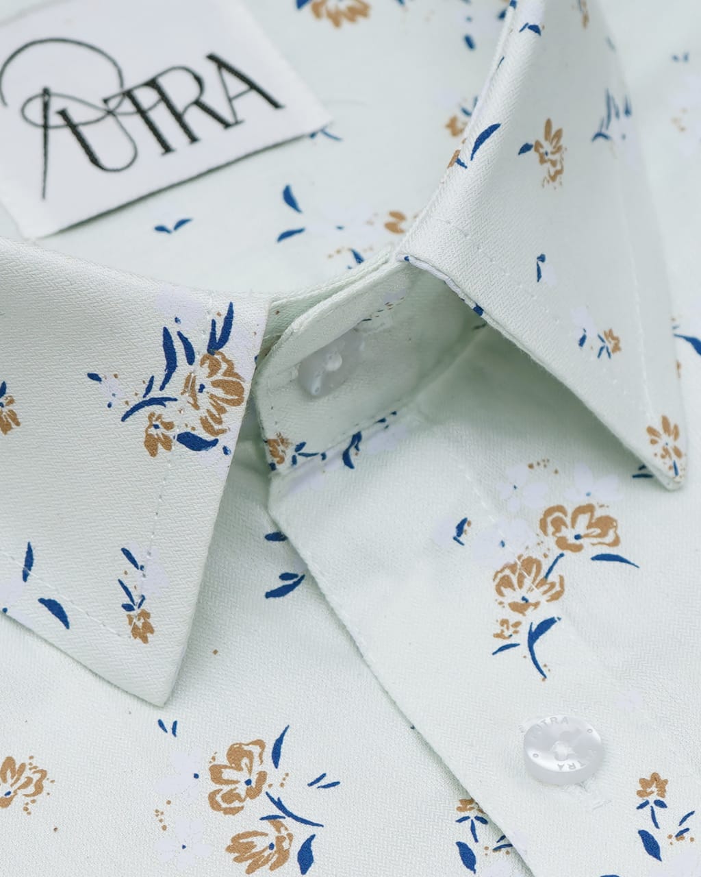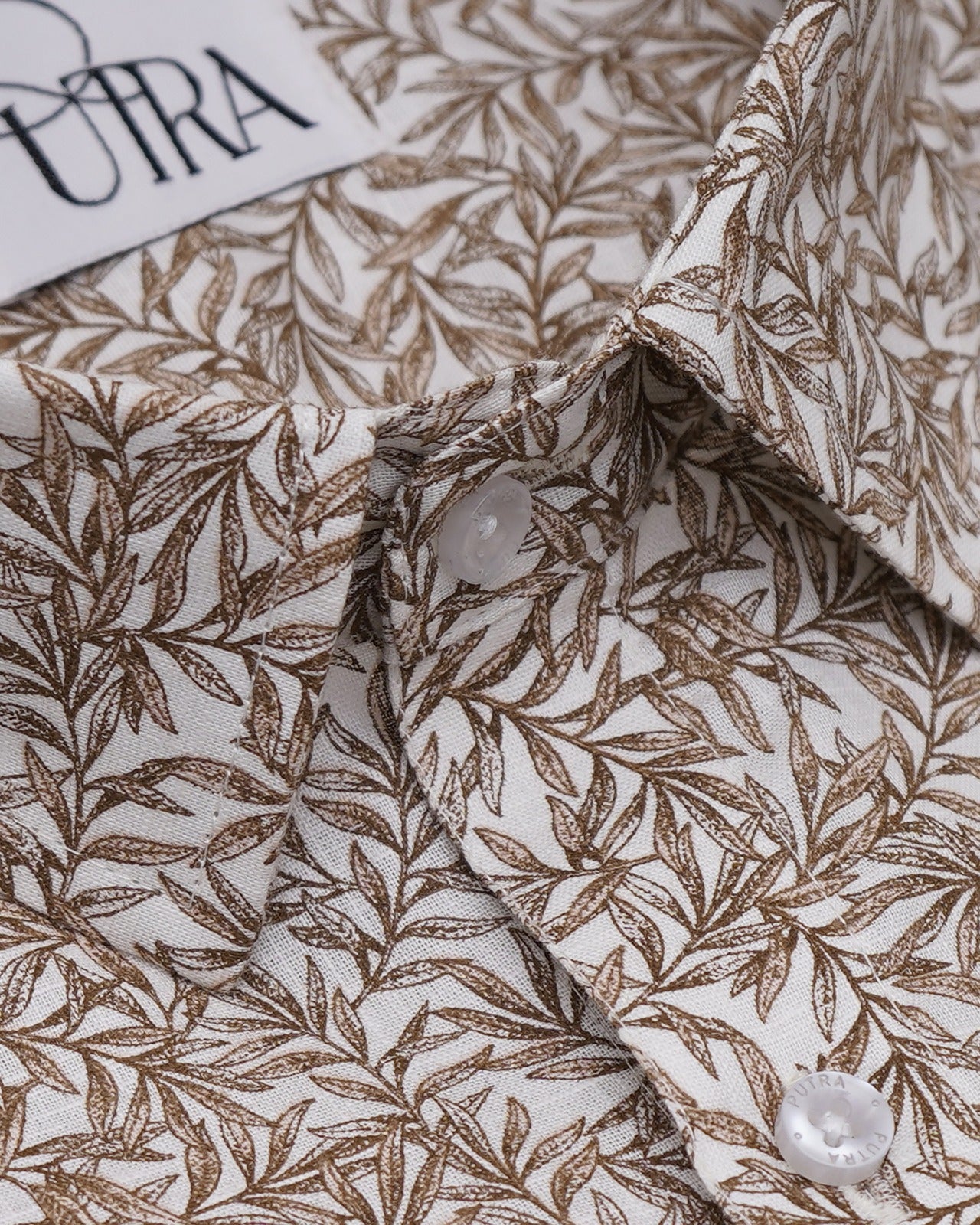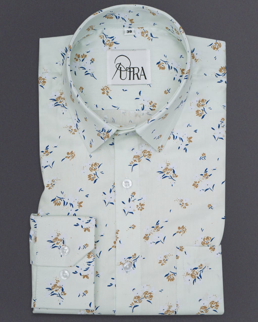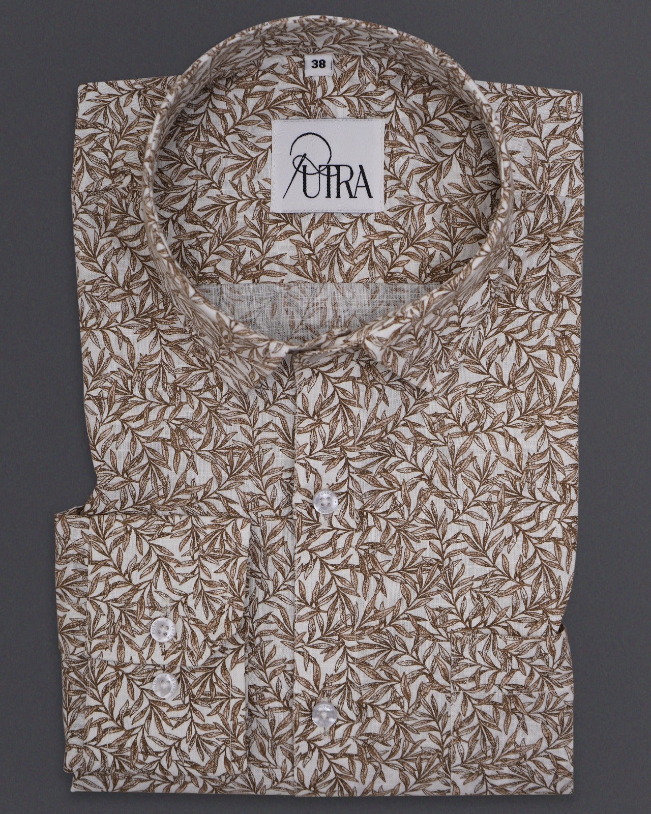 Floral Ivory Cotton Shirt with Green and Gold Accents