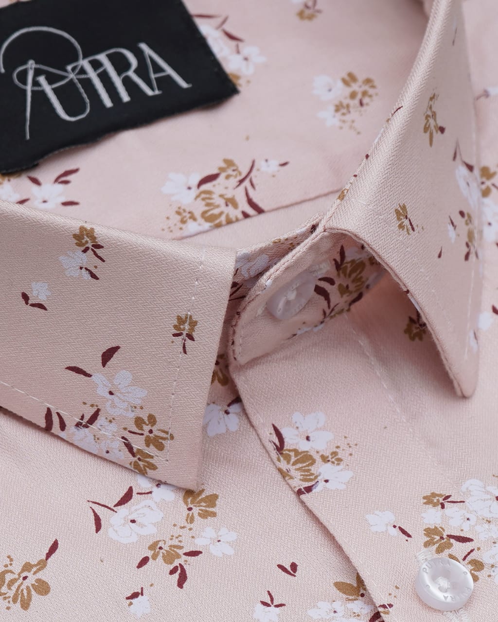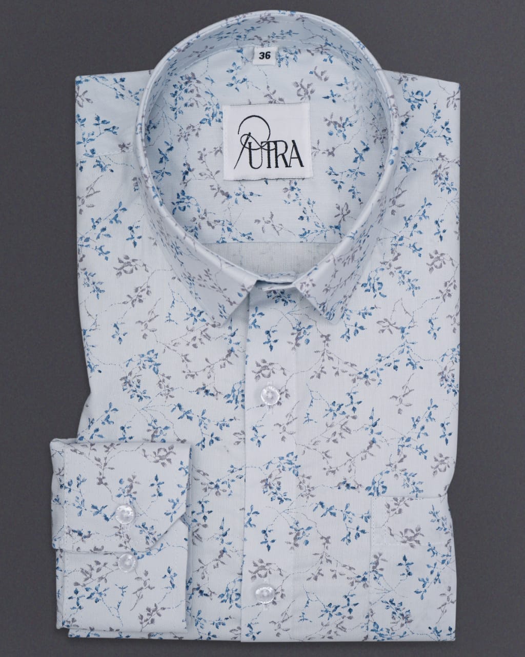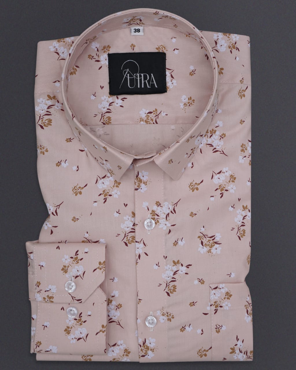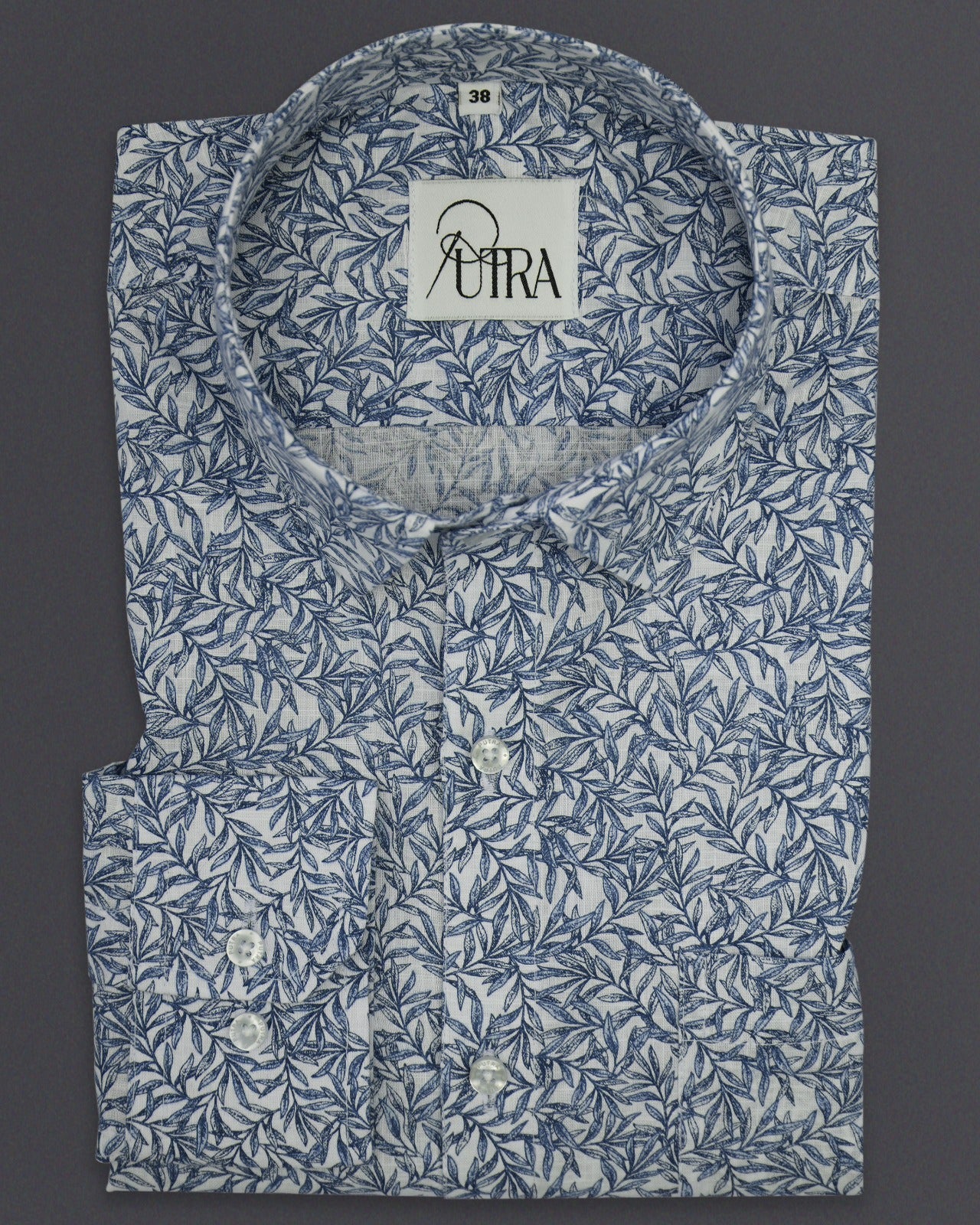 Floral Ivory Cotton Shirt with Green and Gold Accents