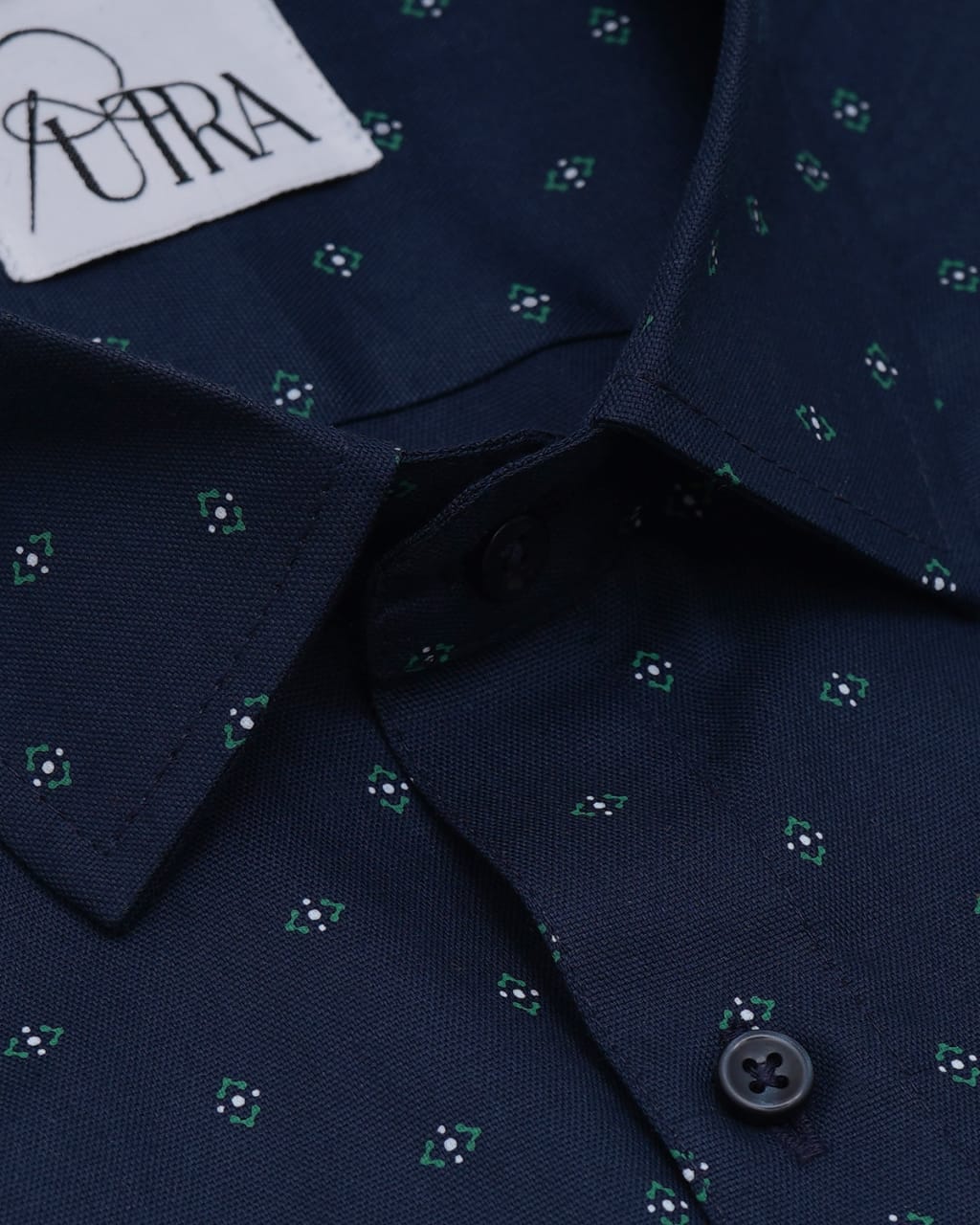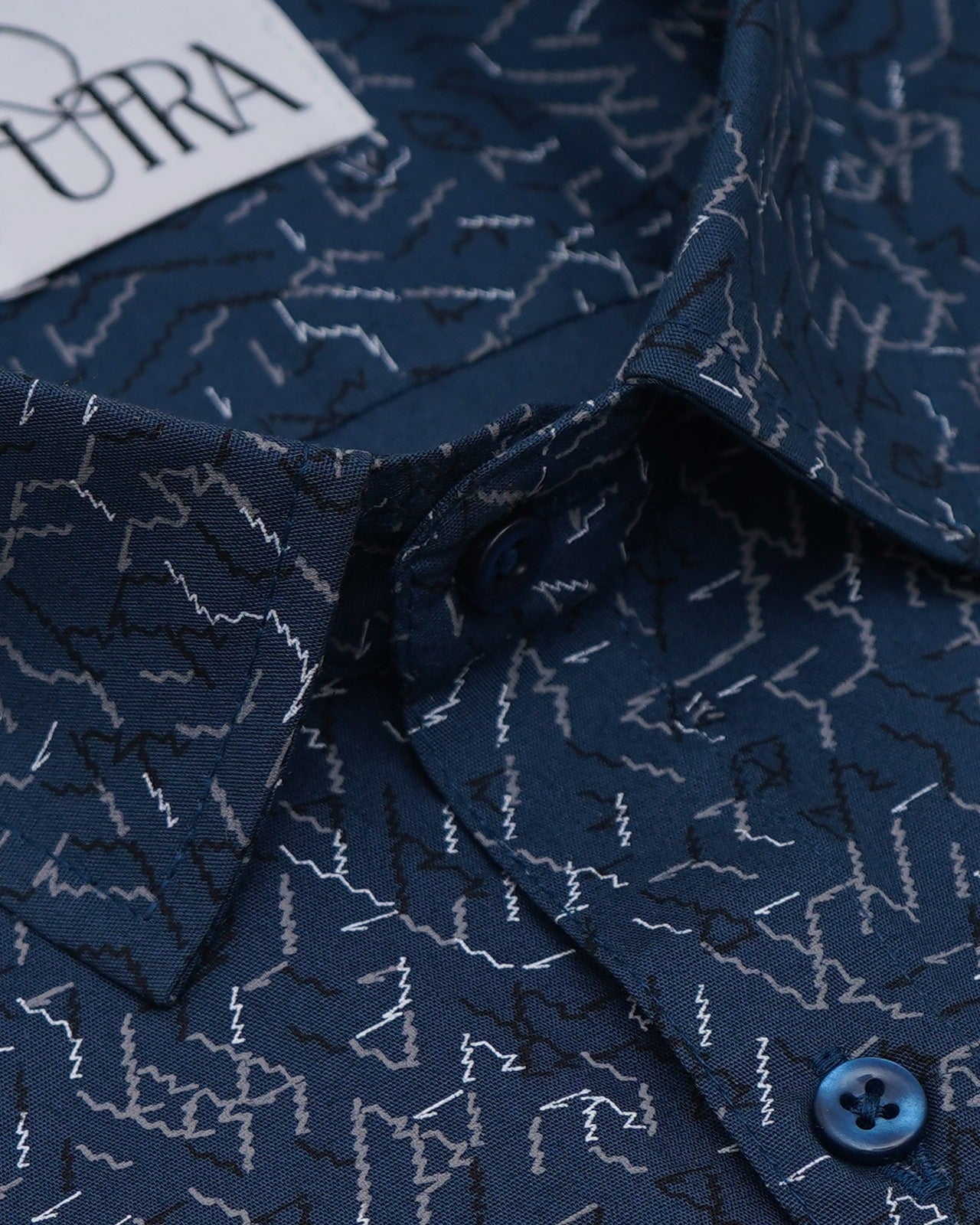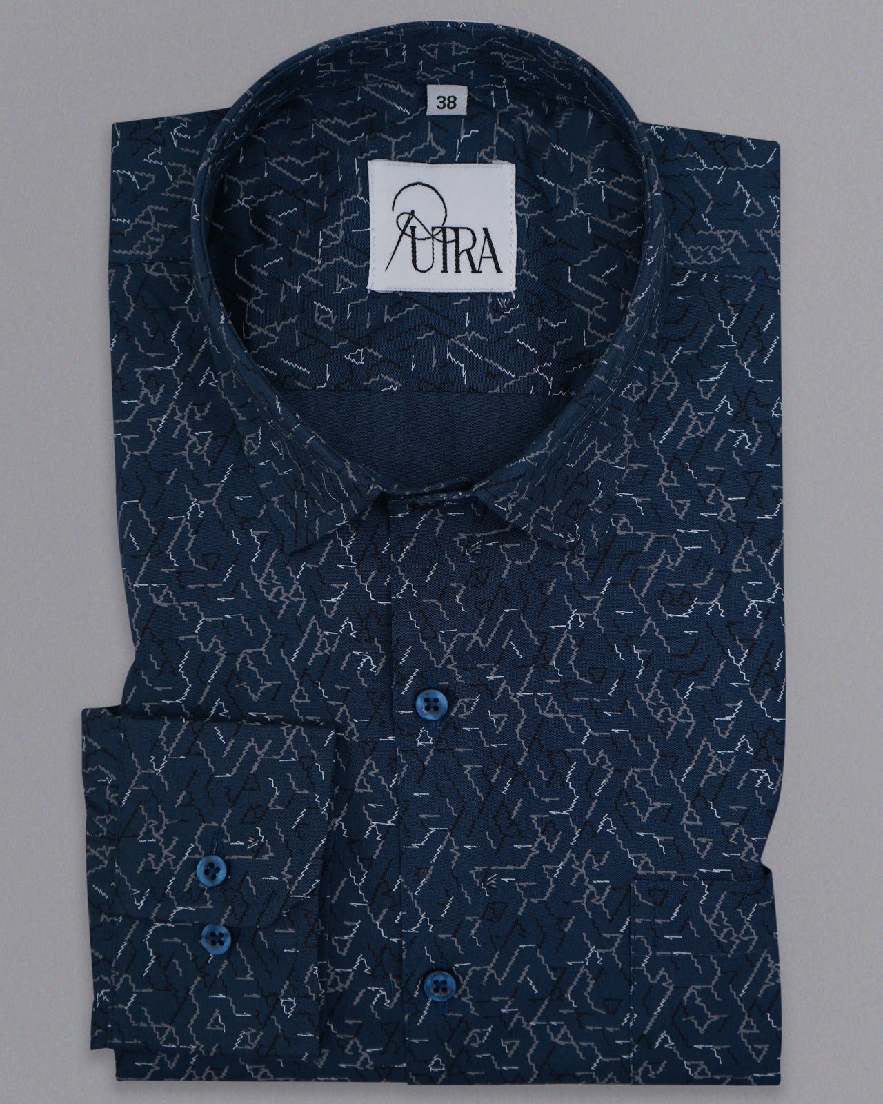 Premium Navy Blue Cotton Shirt with Abstract Pattern