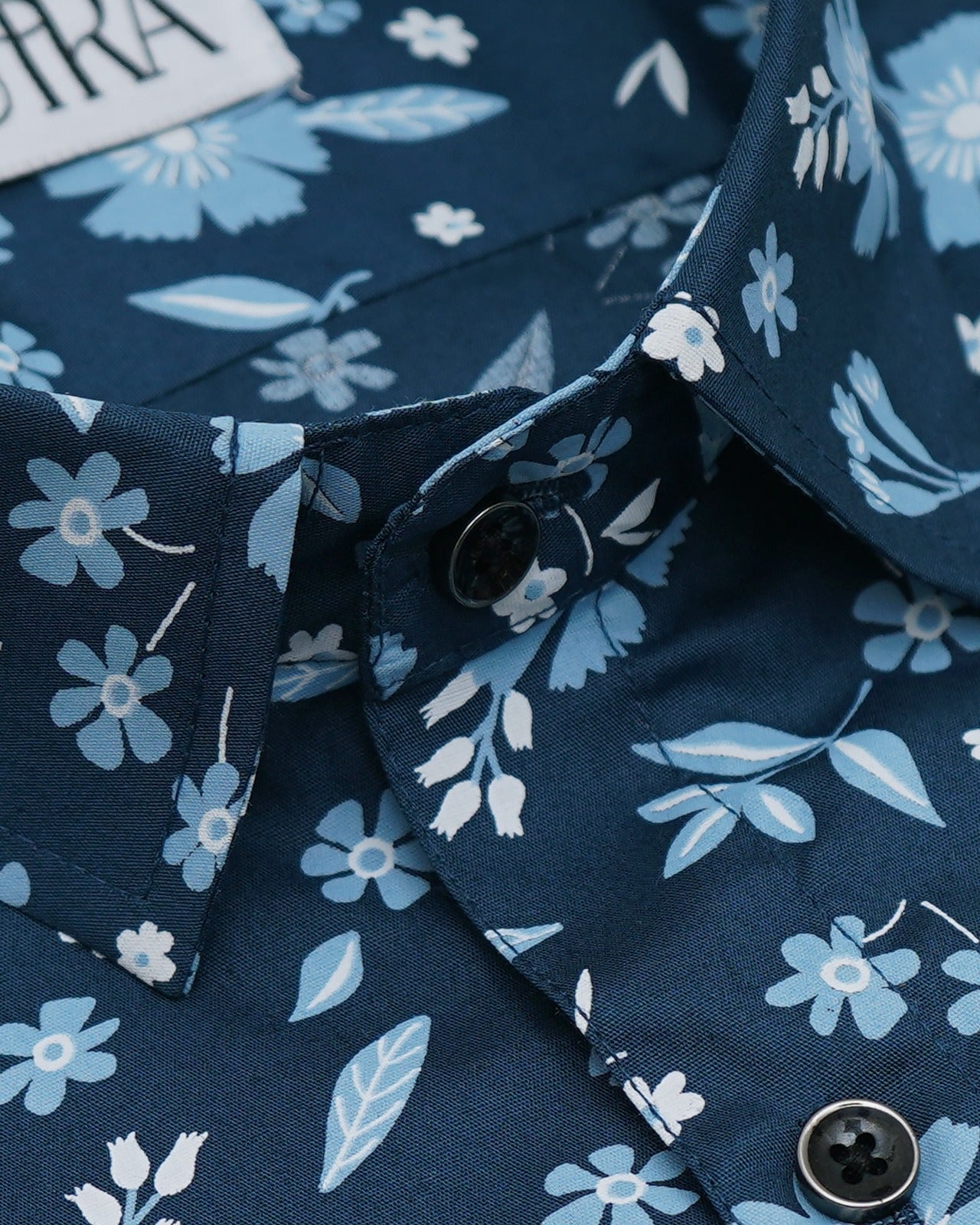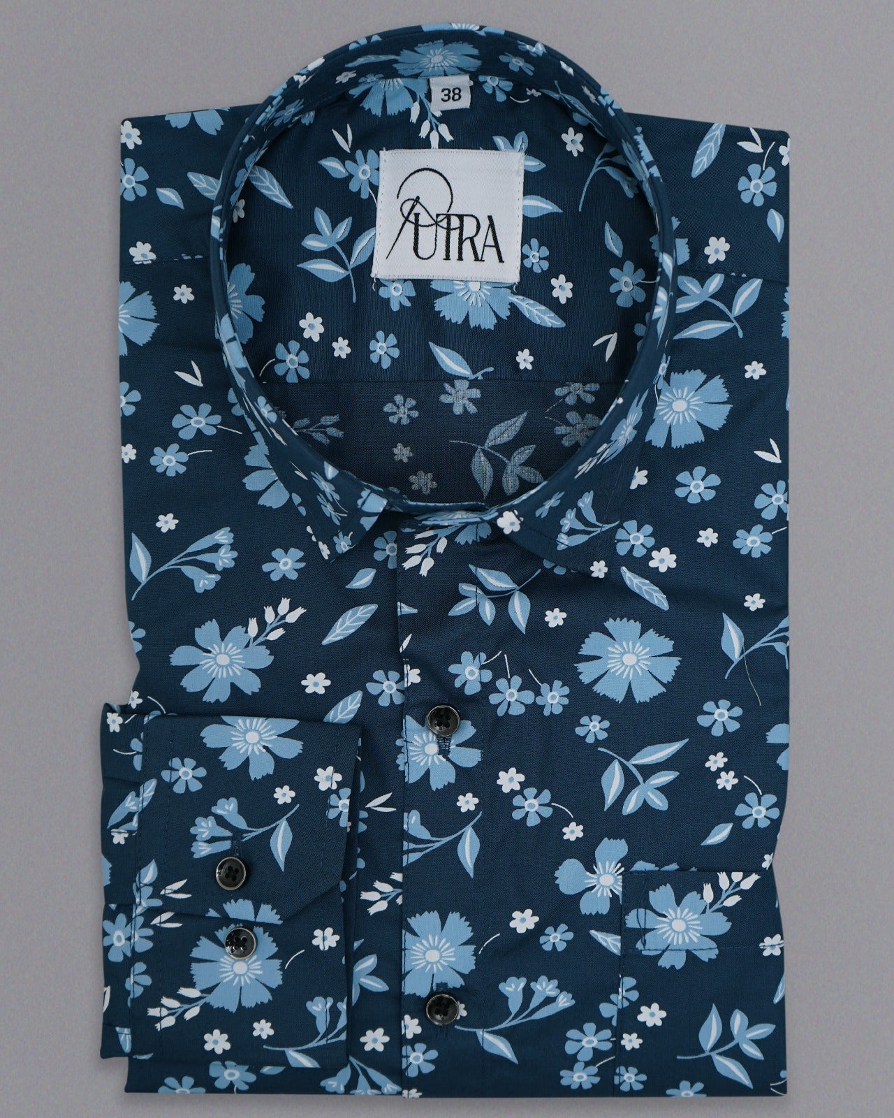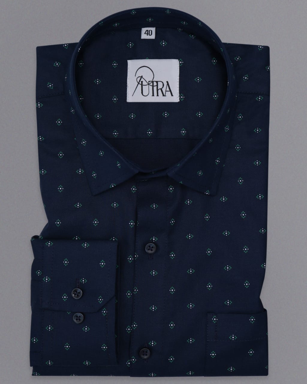 Premium Navy Blue Cotton Shirt with Abstract Pattern