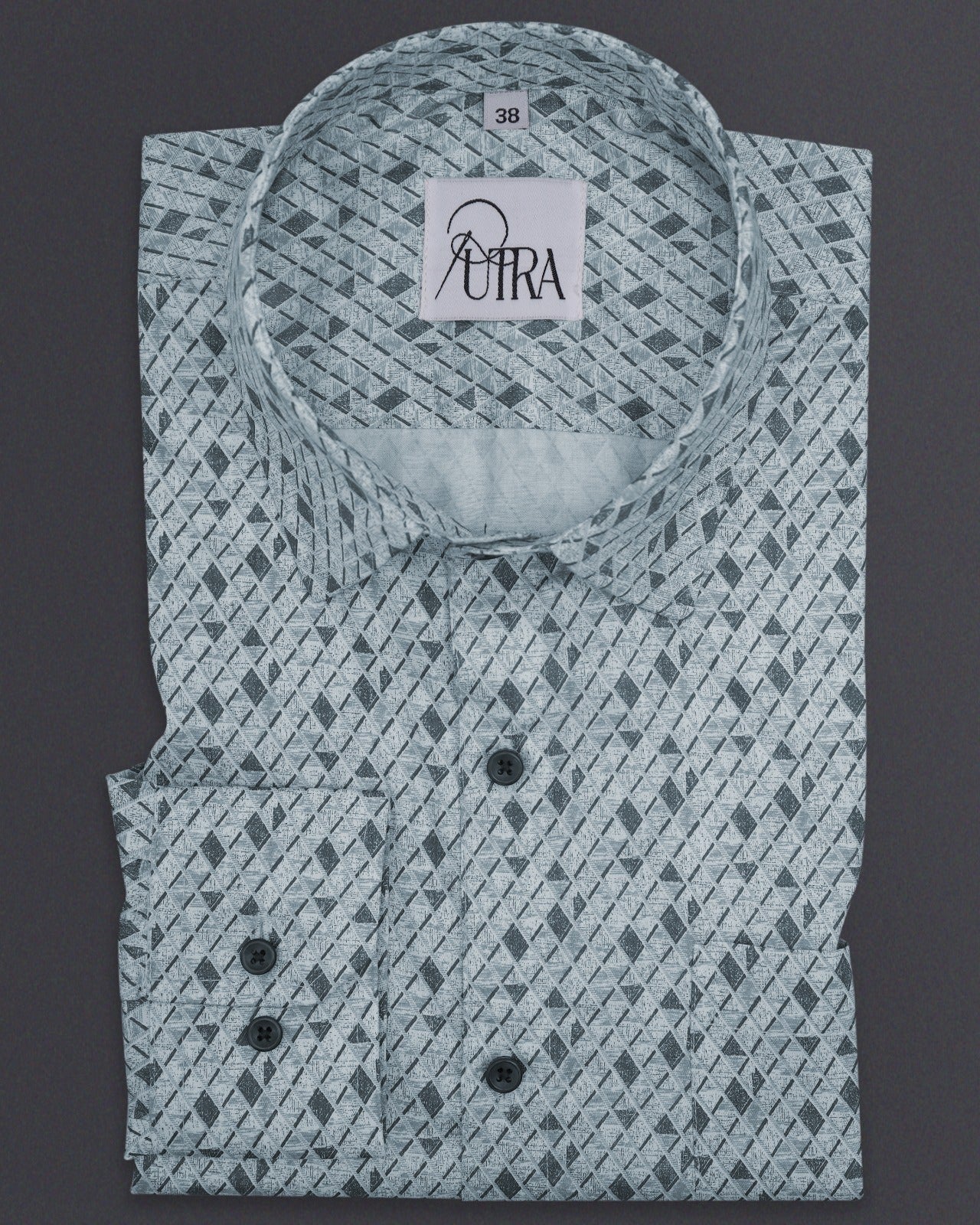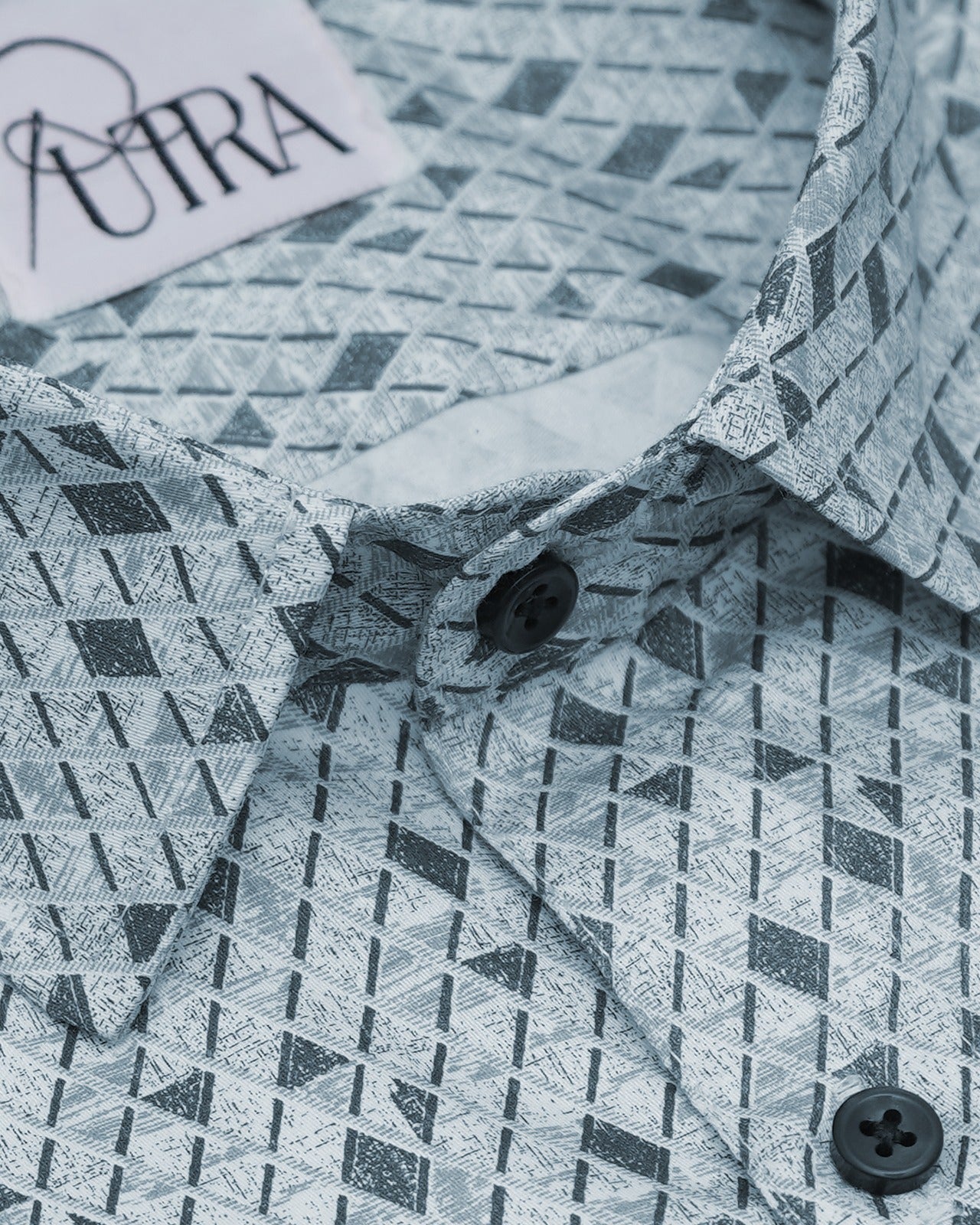 Sophisticated Grey Geometric Cotton Shirt with Black Accents