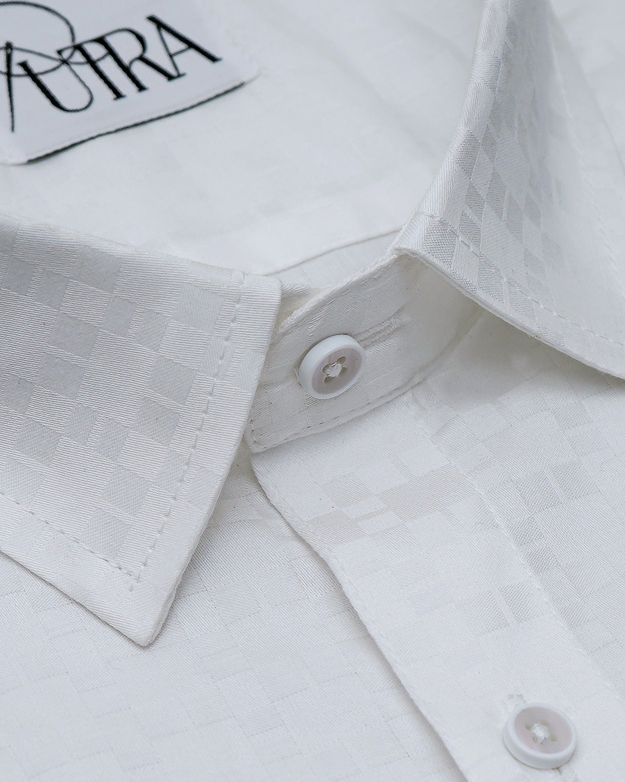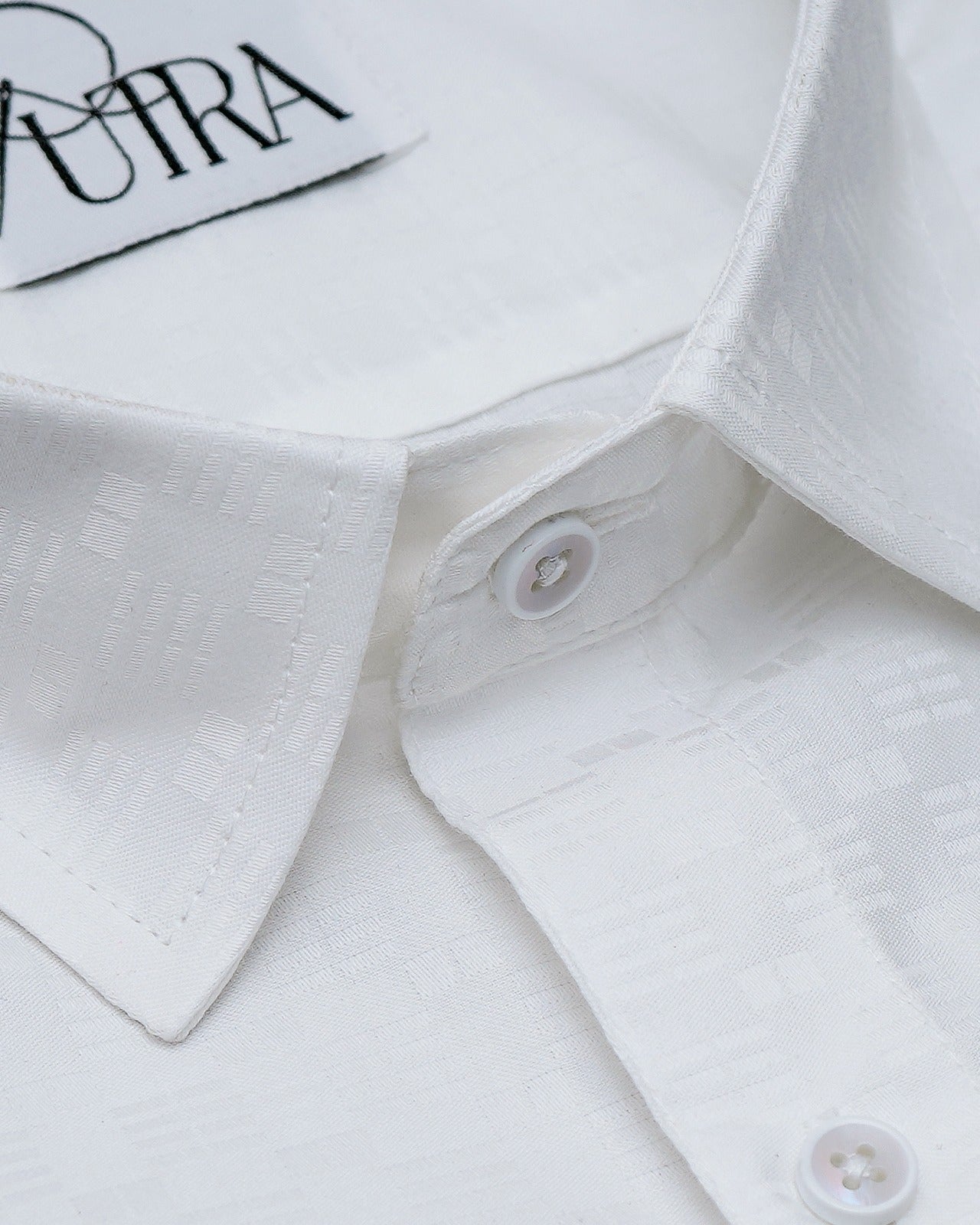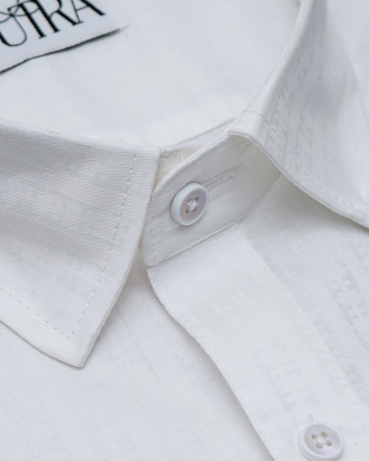 White Cotton Shirt with Subtle Dotted Textured Weave