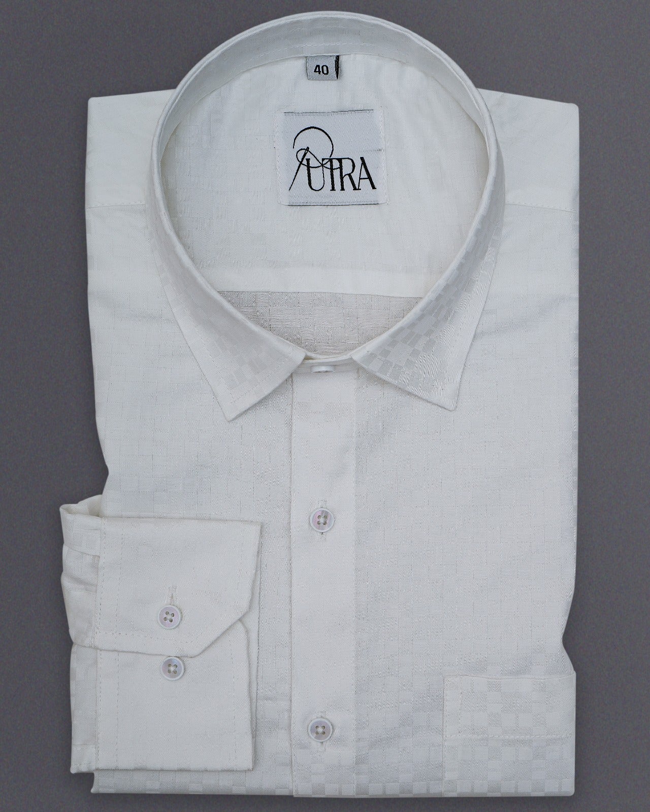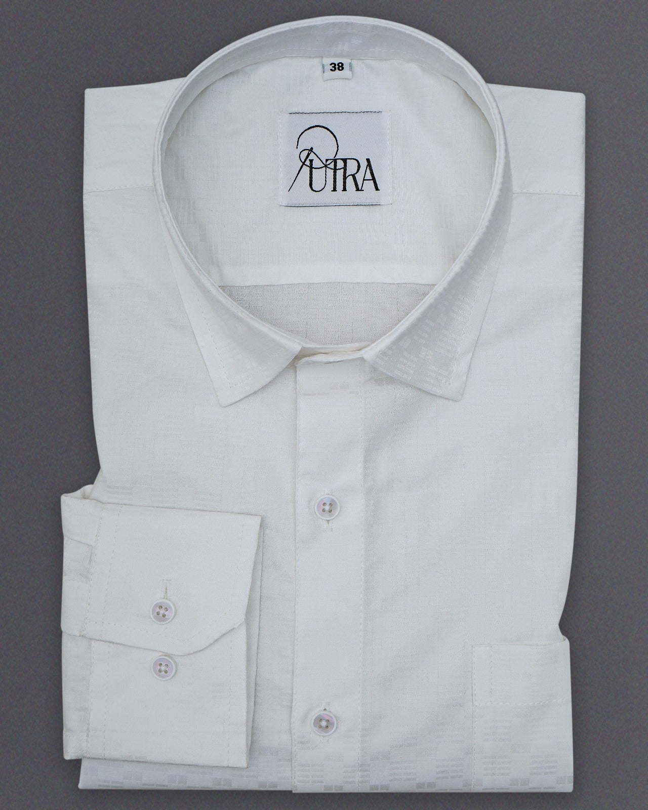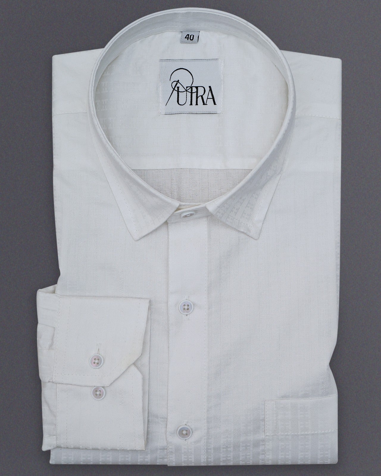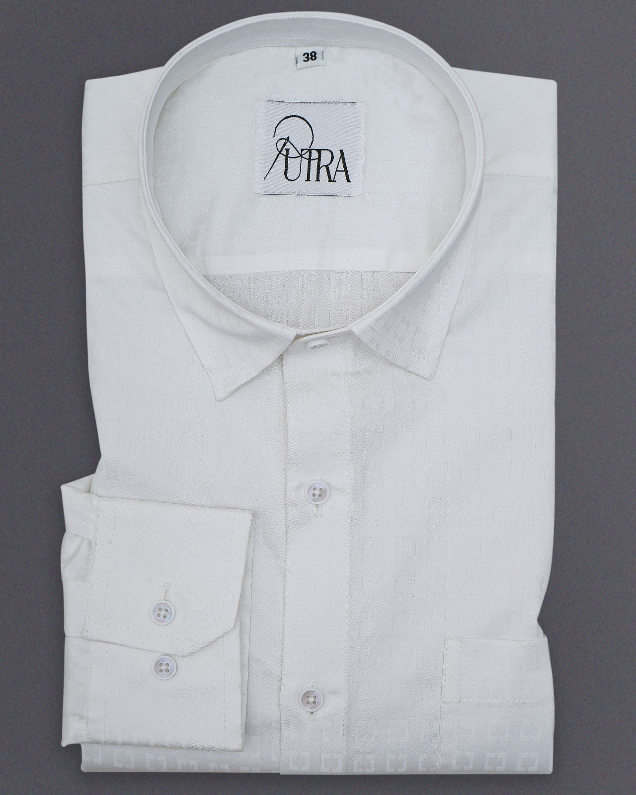 White Cotton Shirt with Subtle Dotted Textured Weave